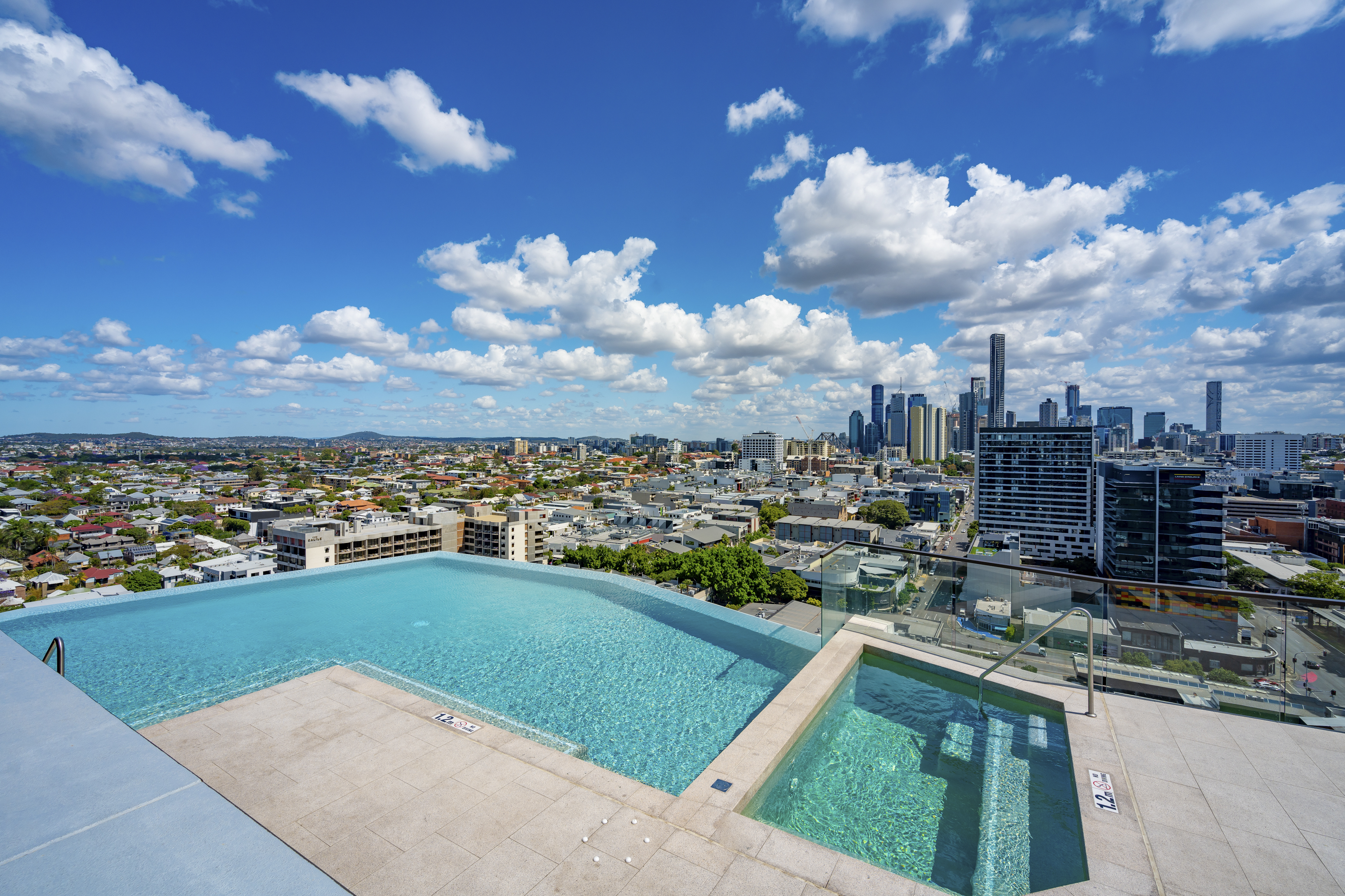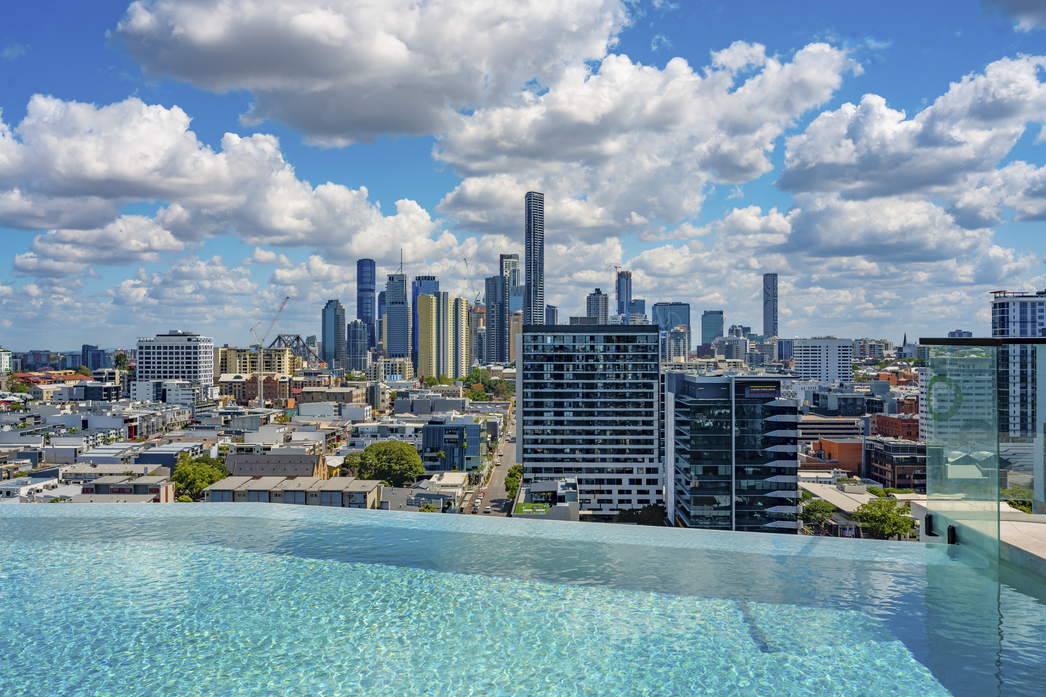 * Rooftop infinity pool capturing sweeping panoramas across the city and Story Bridge