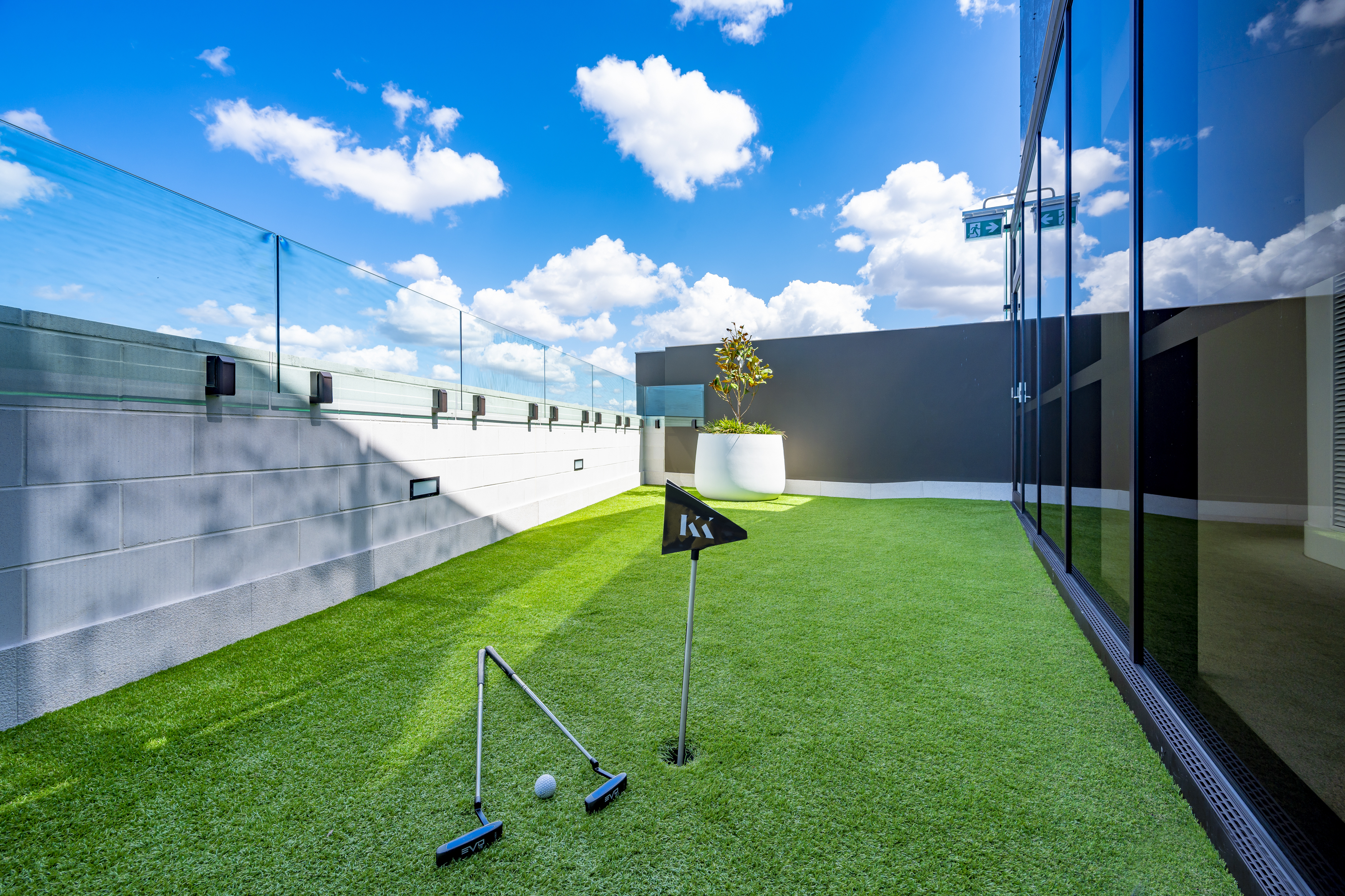 * Rooftop putting green with views spanning over Teneriffe, Gateway Bridge and beyond