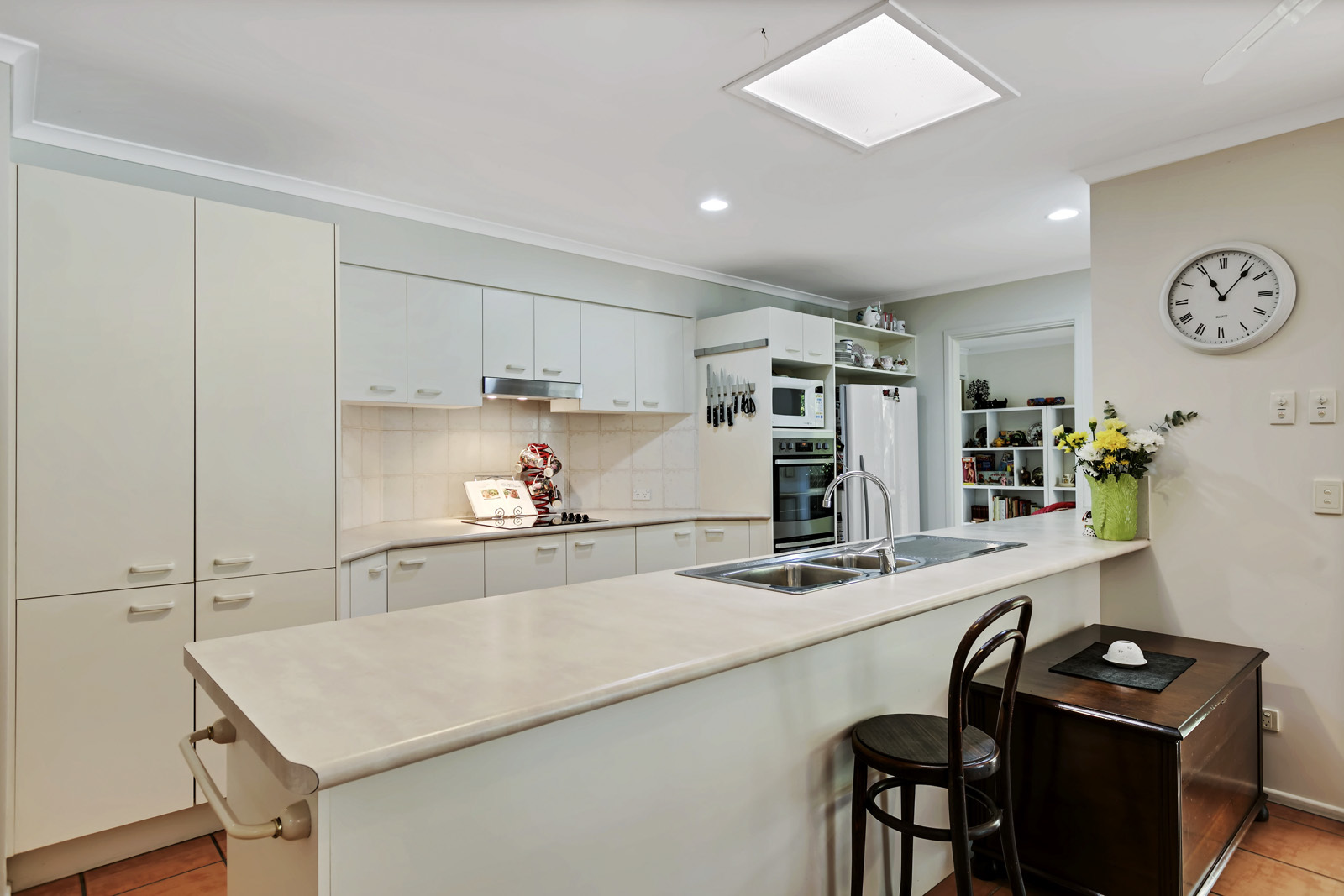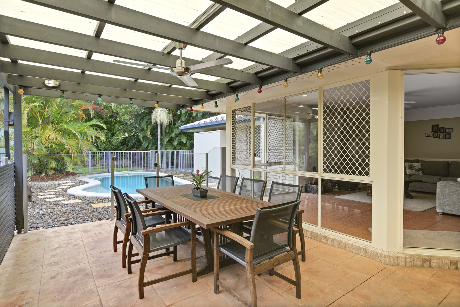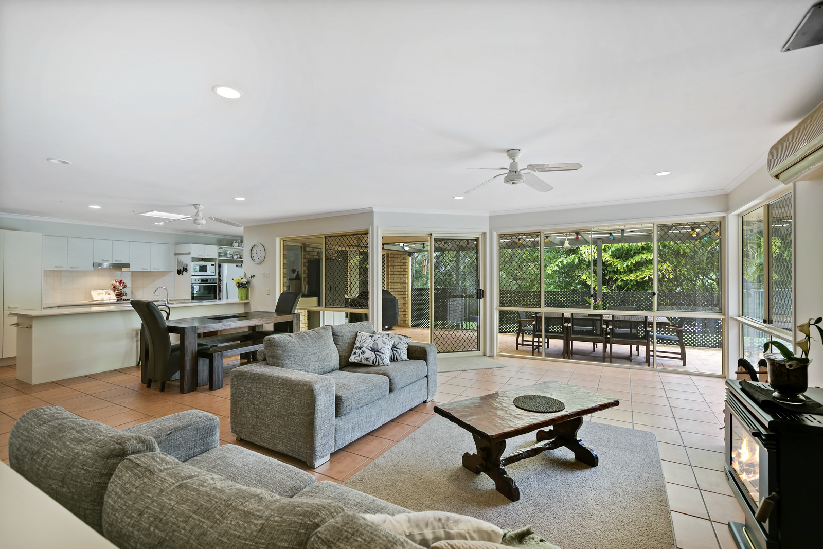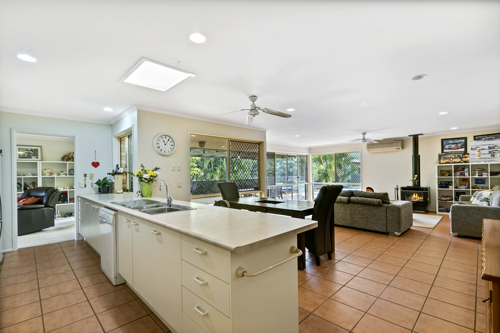 Internally, the family sized walk through kitchen takes pride of place at the hub of the home overlooking the yard and pool in the distance. Separating the two internal living zones it's perfect for keeping an eye on the kids wherever they may be!