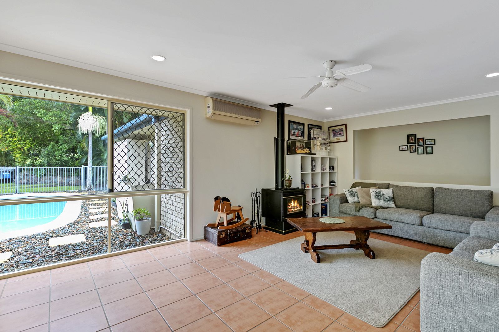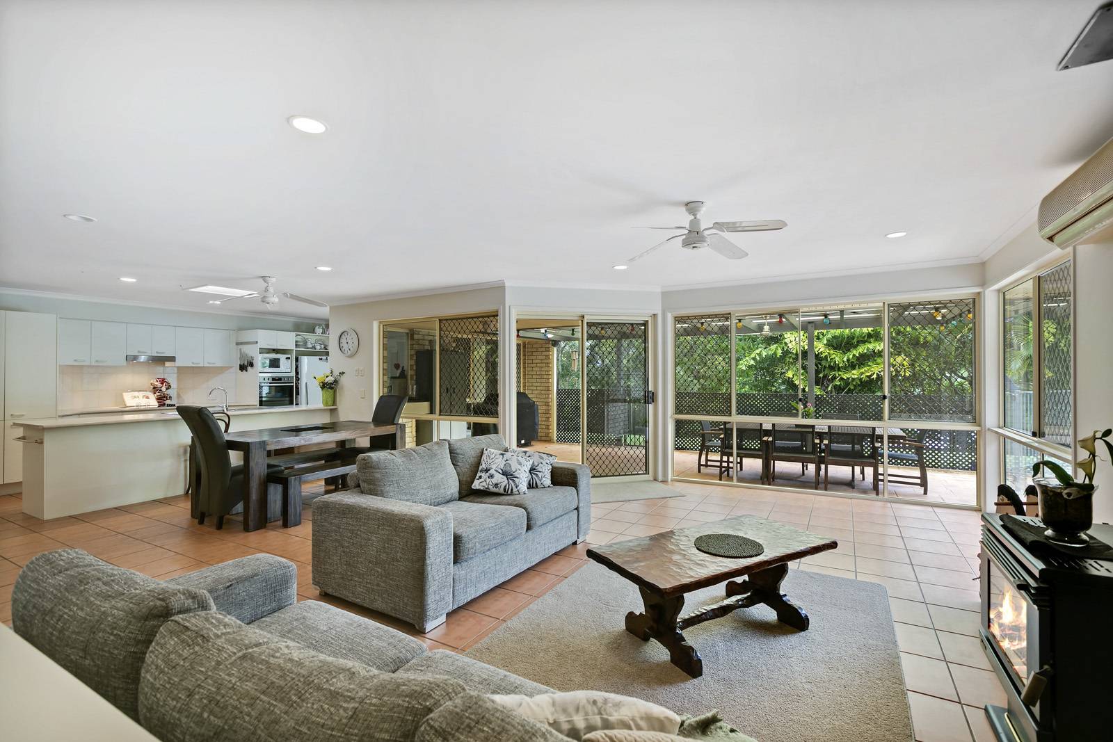 The four double bedrooms all offer fans and built in robes, plus 3 reverse cycle air conditioners in total and a fireplace ready for the cooler months.