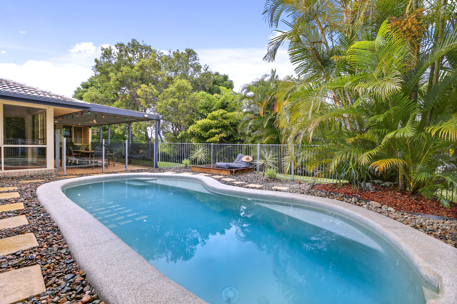 Boasting a roomy floor plan that allows very easy living, seamlessly transitioning from the main living zone to the big outdoor entertaining area, sun drenched saltwater pool and roomy yard out back. Many mornings, afternoons and evenings will be spent out here entertaining guests or simply relaxing in or by the pool living your best life.