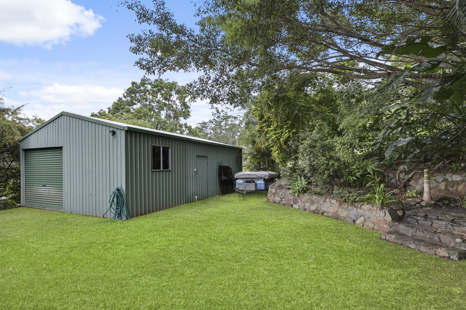 Then there’s the 6 x 9 metre powered shed that could be utilised as anything from a workshop for any type of trade, potential Airbnb or equivalent accommodation, caravan storage or simply the perfect spot to put up the Penthouse pet or Fireman calendar posters and sing along to the Bee Gees at the top of your lungs. The shed has vehicle access to it via the left hand side of the home.