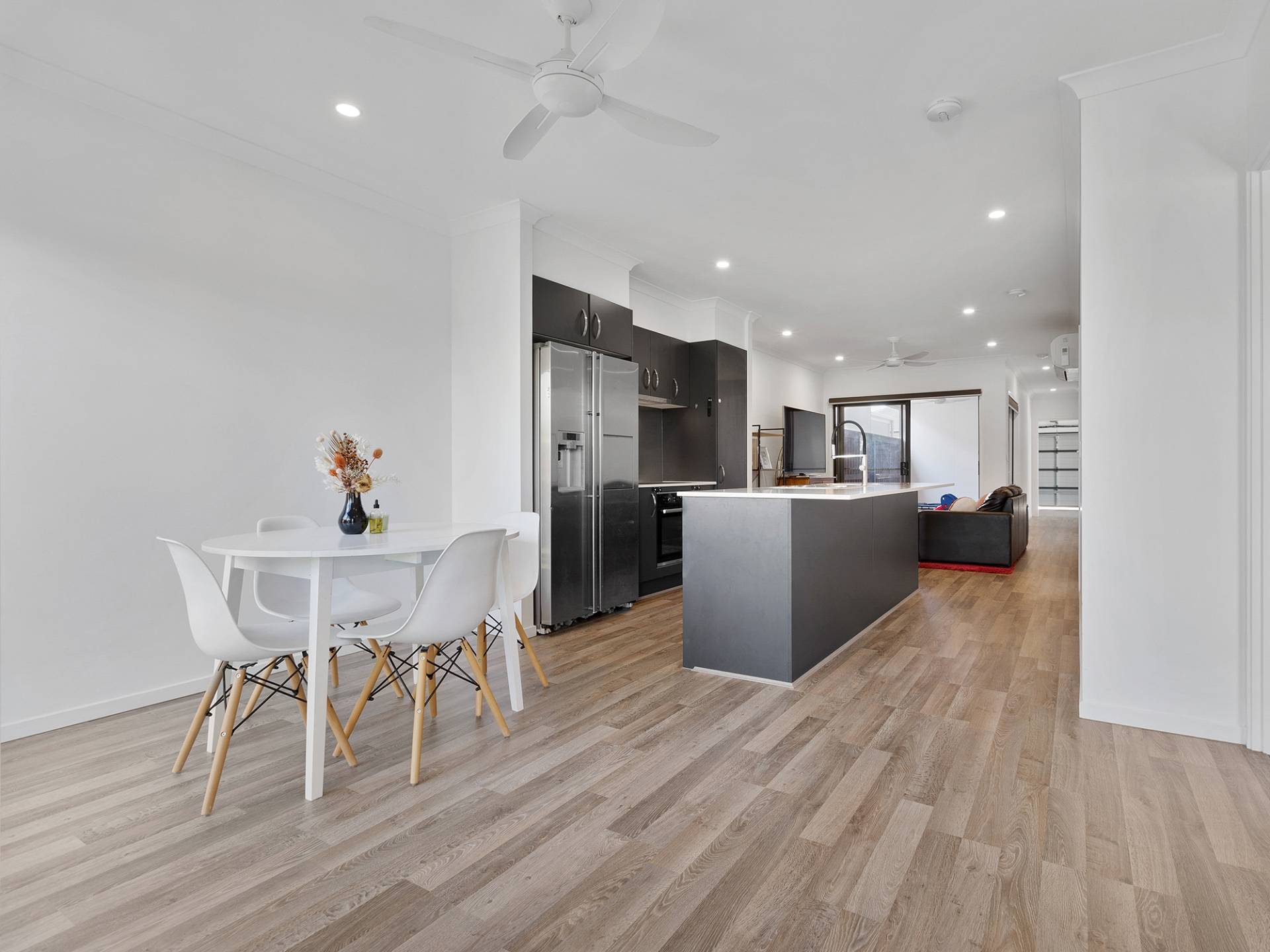Beautifully finished throughout , the home offers airconditioning, fans, led lighting and stunning neutral tones throughout. The oversized double garage has rear lane access and quality epoxy floor finish.