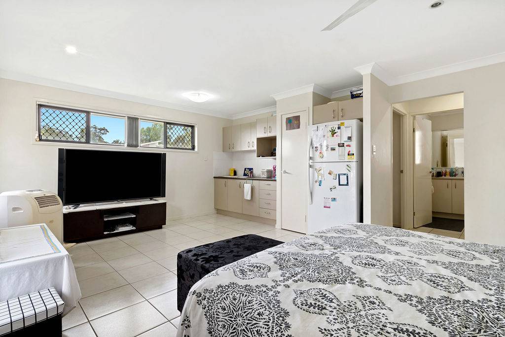 The main house features an additional three bedrooms, open plan kitchen and dining space plus a spacious living area. Flowing out from the living area is an under roof, concreted alfresco area perfect for year round entertaining. The backyard is flat and has plenty of room for children to play or a game of backyard cricket.