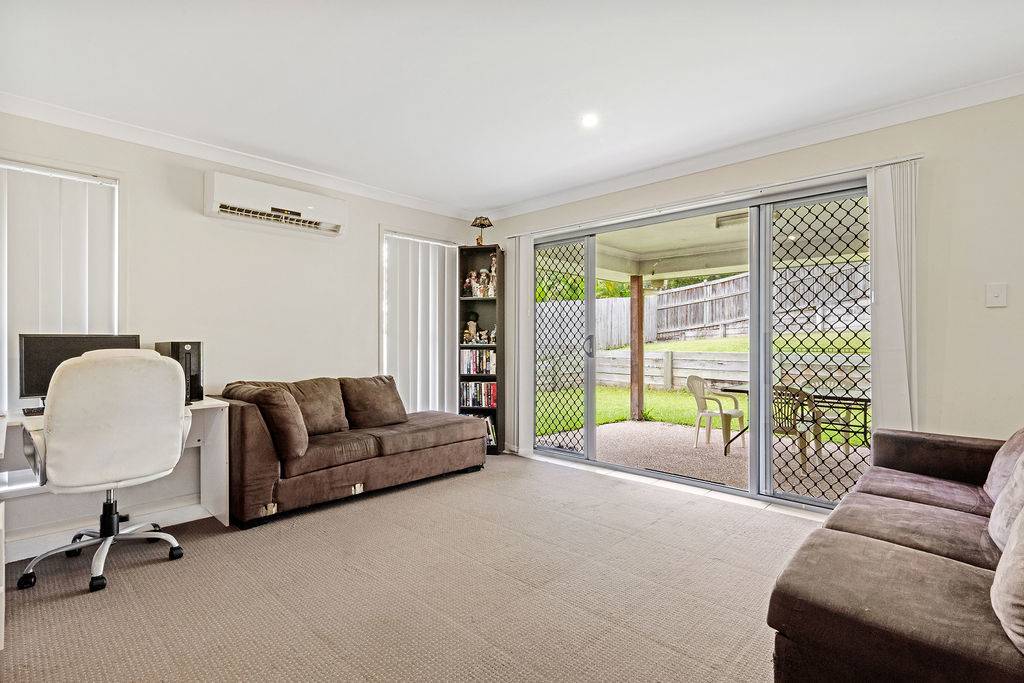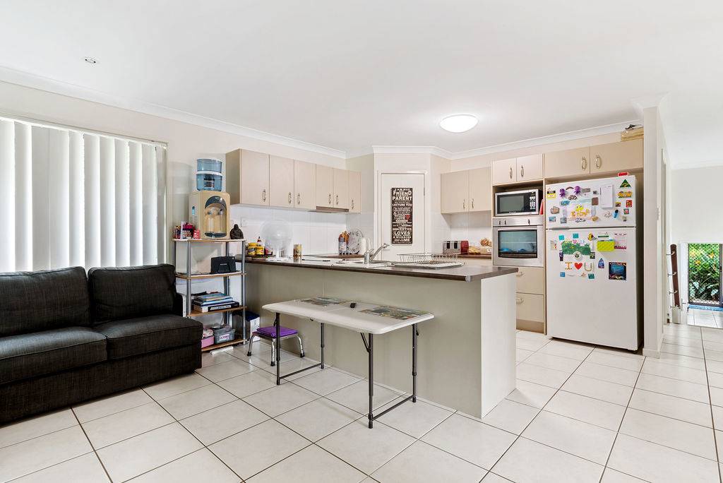 Situated on a generous 1124m2 allotment, this Little Mountain abode is unique in design and is set up for dual living. Upon entrance there is a shared foyer hallway, to the left of this is the ‘studio flat’. This space is substantial in size and includes one formal bedroom, an en suite, kitchenette, and open living space. At the end of the shared foyer a small set of stairs leading up to the main house.
