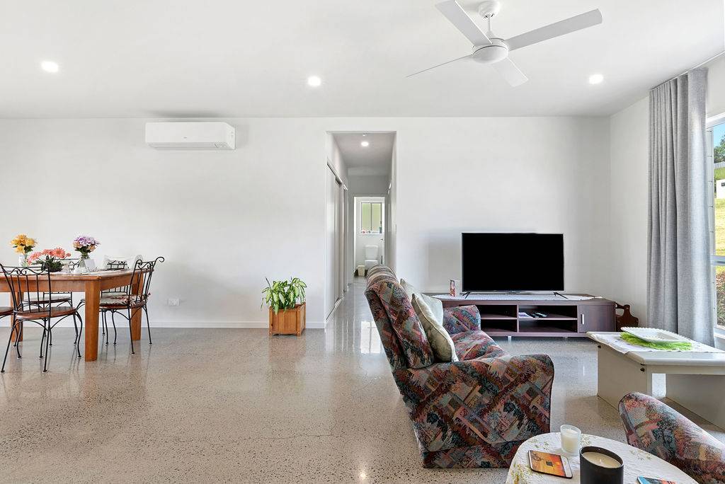 The perfect mix of a near new home (9 months old), and a spacious 1 / 4 acre block (956m2) for the children to run and play in. The home was built by Shine Building and the quality fixtures used are similar to those found in any top end home. The elevated position offers a stunning view of the local ranges and the surrounding land has been thoughtfully landscaped to provide a low maintenance mini acreage setting. Stunning 40 mil stone kitchen and impressive polished concrete flooring feature in the modern residence.