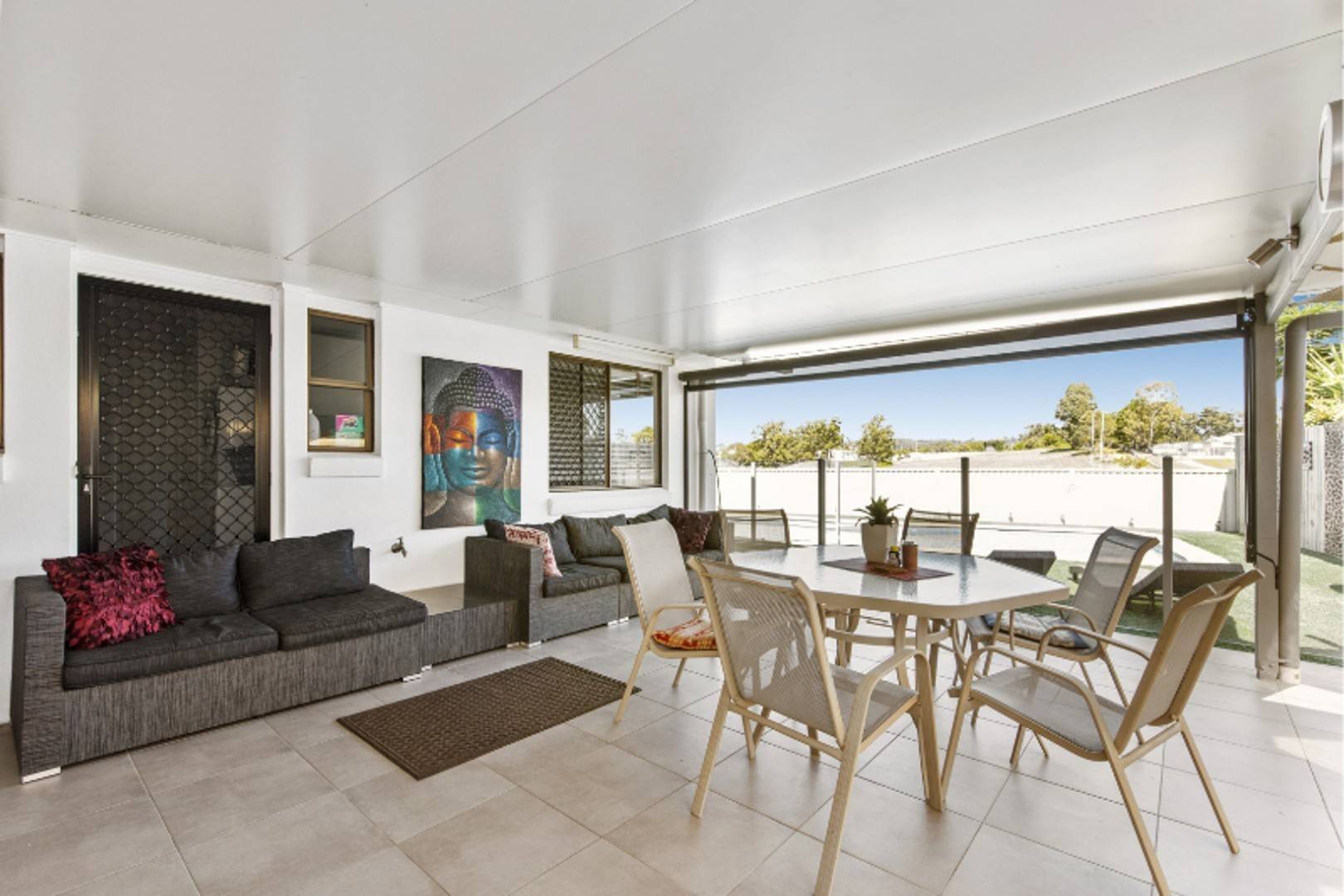 - Master bedroom and dining area both open to a large alfresco courtyard