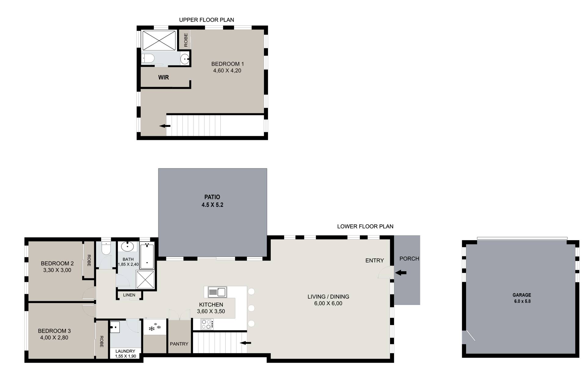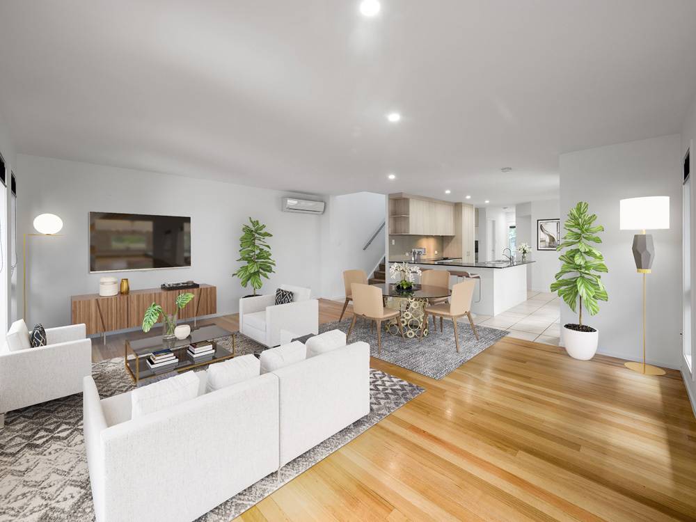 2 generous sized bedrooms with built in robes are downstairs whilst the master suite and study nook occupies the upper level.