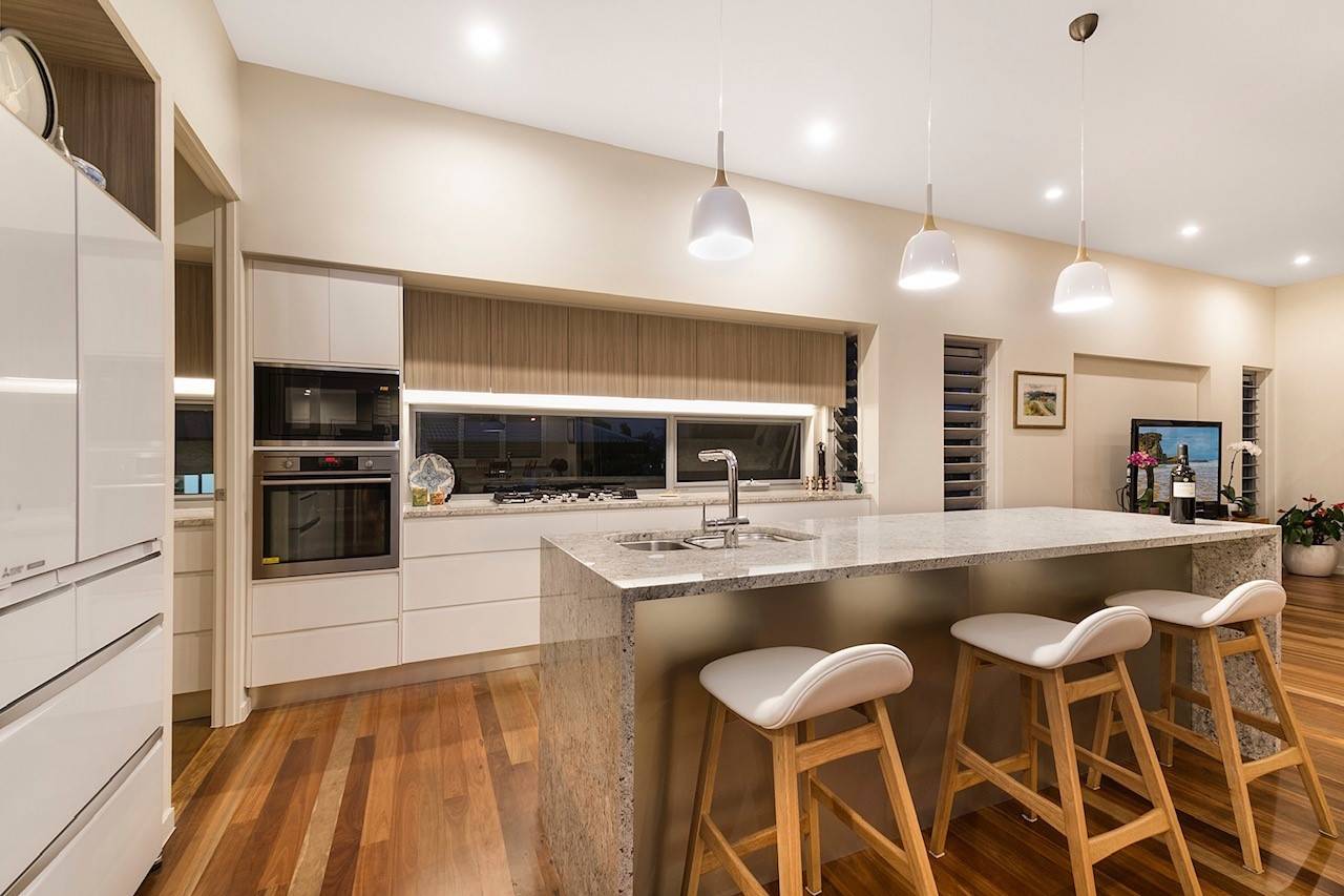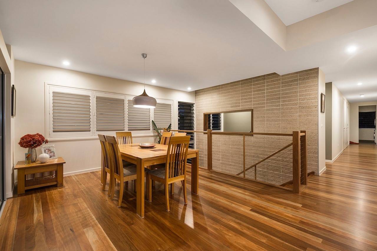 Features include: resort style foyer, mixed spotted gum timber floors, 40mm granite island benchtop to kitchen with waterfall edges, Italian appliances including gas cooking, large butlers pantry with built in wine rack, 11 foot ceilings to main living area with 9 foot ceilings to remainder of house, stacker doors, louvre ventilation system throughout, polished brick feature wall with skylit lighting, butted glass seeming windows to living room, wide hallways, floor to ceiling wall tiles in wet areas and large lockable dry area storage underneath house.