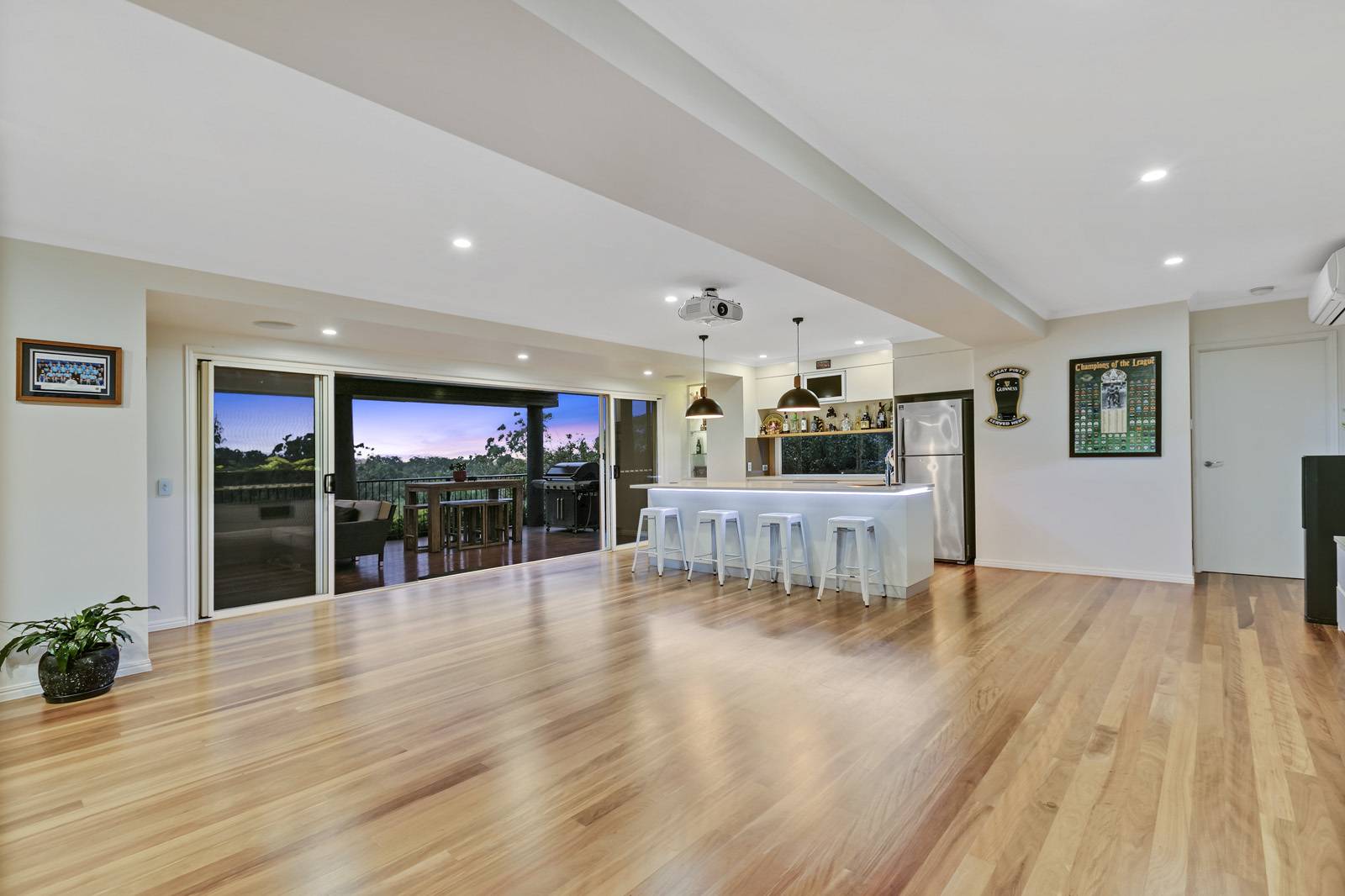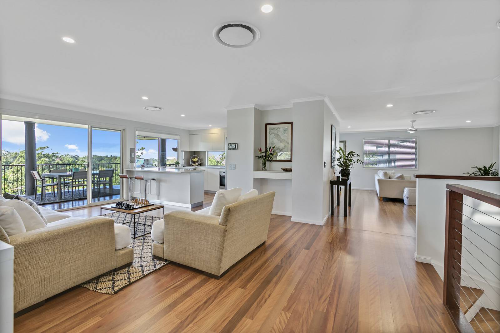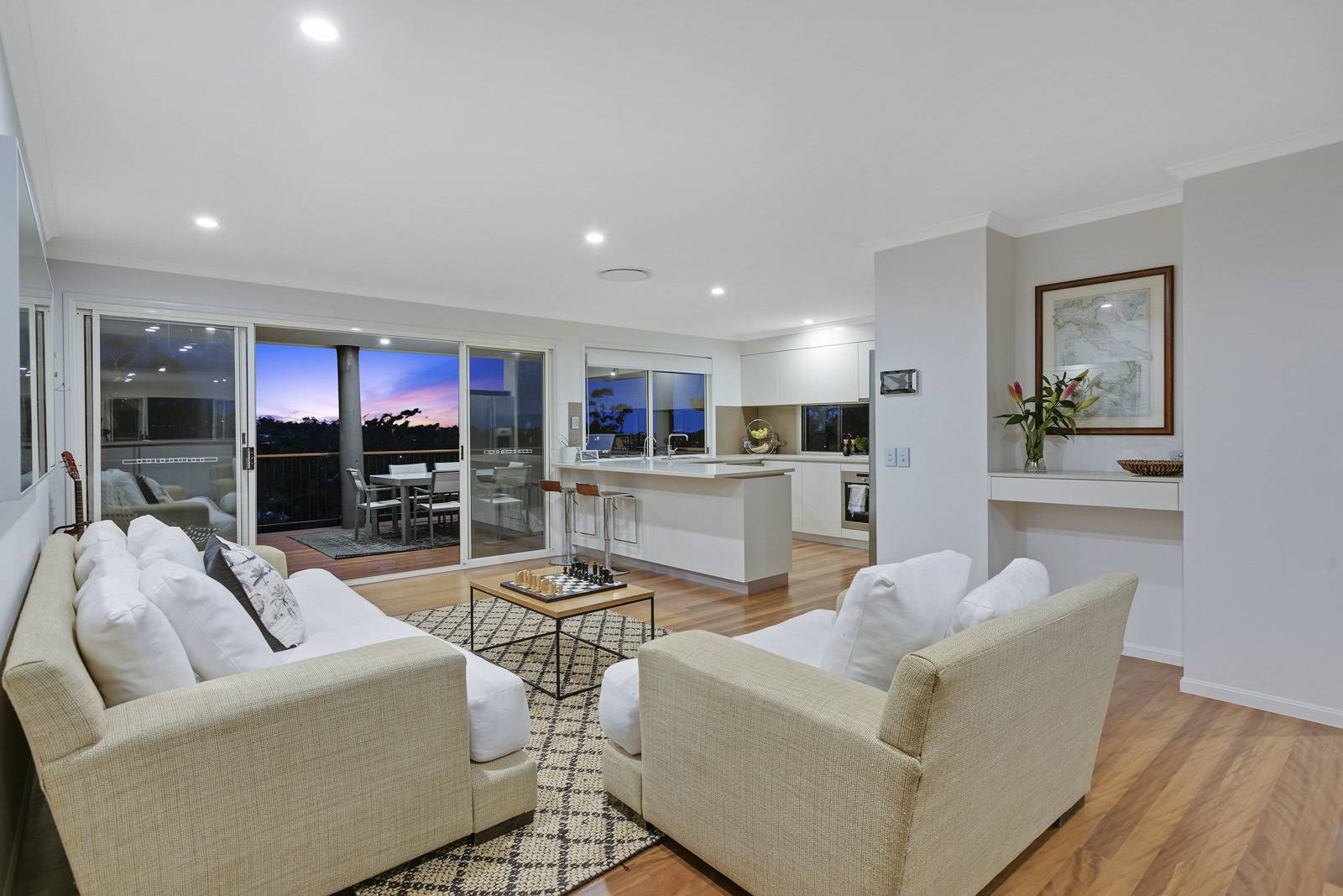 In total the home comprises four bedrooms, three bathrooms, three separate internal living areas, stunning kitchen plus kitchenette, two timber alfresco entertaining decks, oversized car accommodation and additional storage / workshop under house; this home has been built to facilitate and accommodate all the needs of the busy modern family in comfort and style.