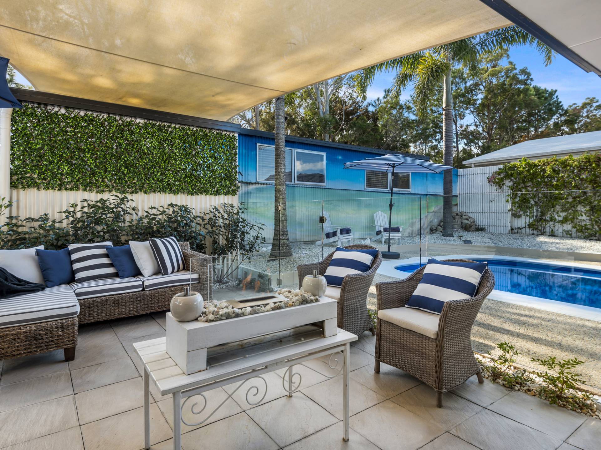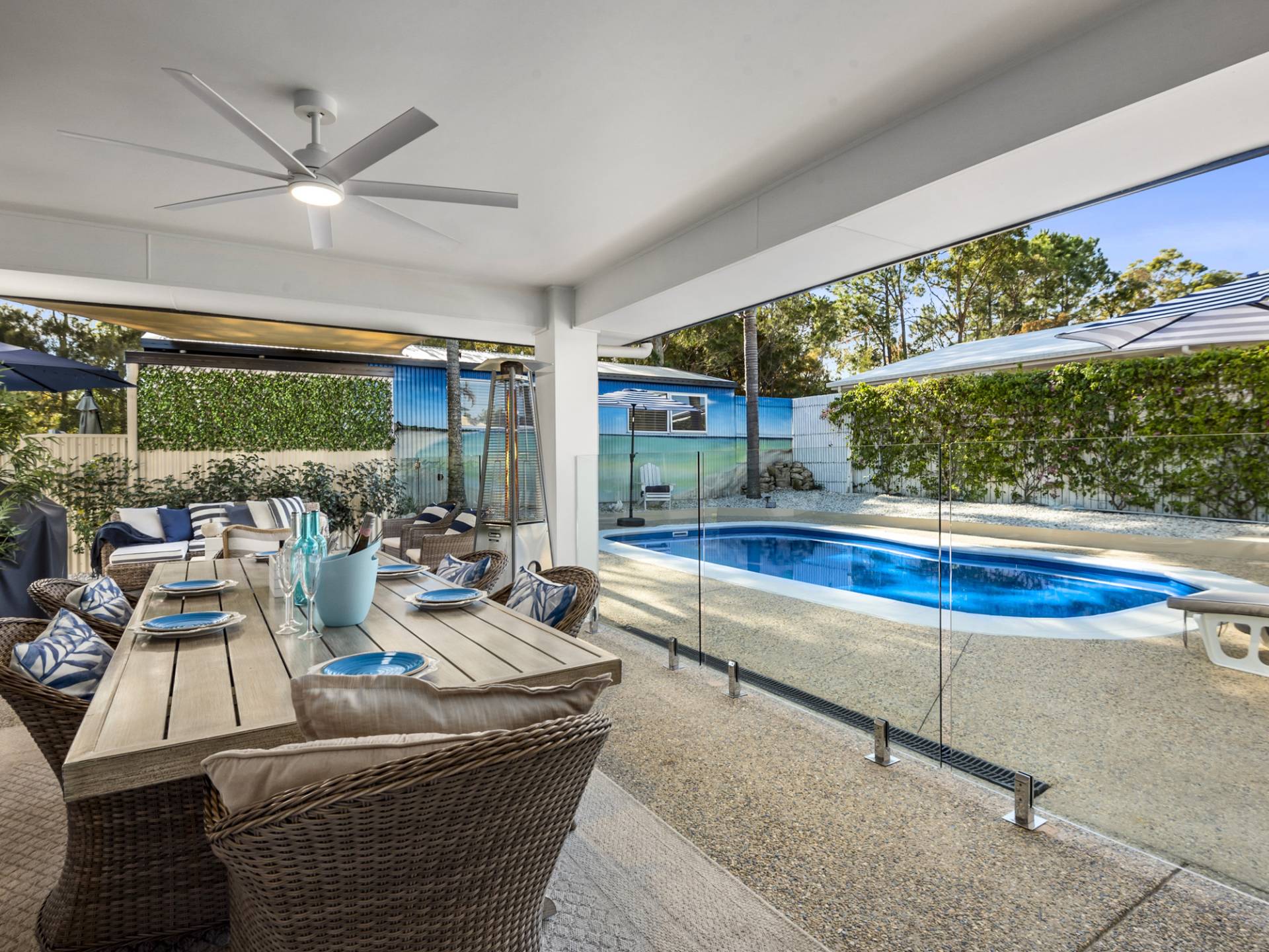 The outdoor entertaining area sure is something special!  Plenty of undercover area for all weather dining and the current owner has set up further relaxed seating area under a shade sail. Glass pool fencing gives uninterrupted views of the pool from the living spaces and there is the convenience of a change room and outside shower.