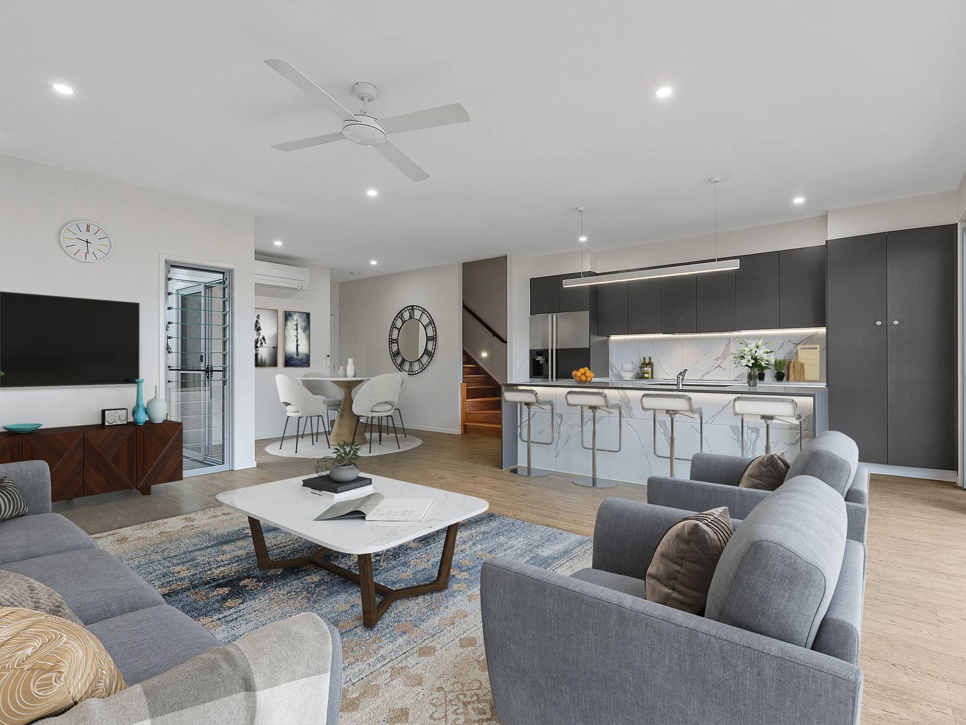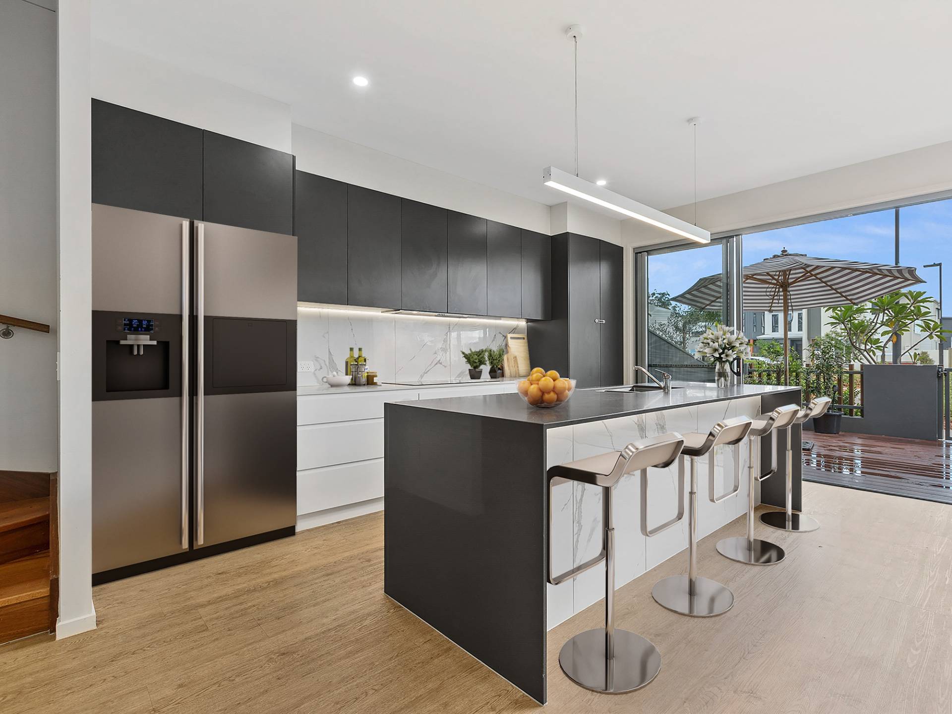 Immaculate people own immaculate homes and we are very excited to be appointed as the agents to auction this park side designer property. It has the obligatory 4, 2 and 2 (4 bedrooms, 2 bathrooms and 2 garages), but it has so much more to offer than the standard “run of the mill home”. For starters it is trendy yet timeless. You won’t be needing to replace tiles or kitchen stone tops when the next new trend emerges as this home has been carefully furnished with a modern theme that will last forever. With a focus on simplicity the open plan living areas are the central point of all entertaining. Large stacker doors provide easy access to large outdoor decks which front onto the Pavilions Park. No need to cross any roads, or travel many miles for family recreation. The well cared for Parklands are your new front yard. Hard to fault this position. In fact it rate a perfect 10/10.