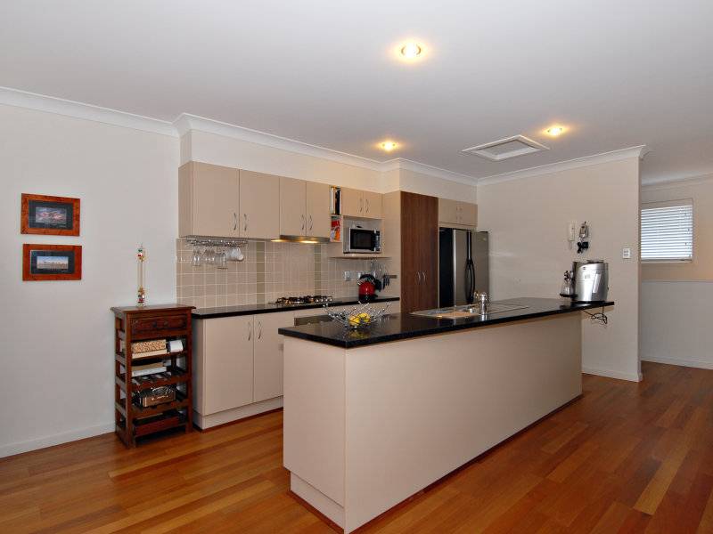 All living is upstairs to maximise the river views which can be seen from every section of the second level especially the under-roofed balcony. The kitchen is finished with stone bench tops.