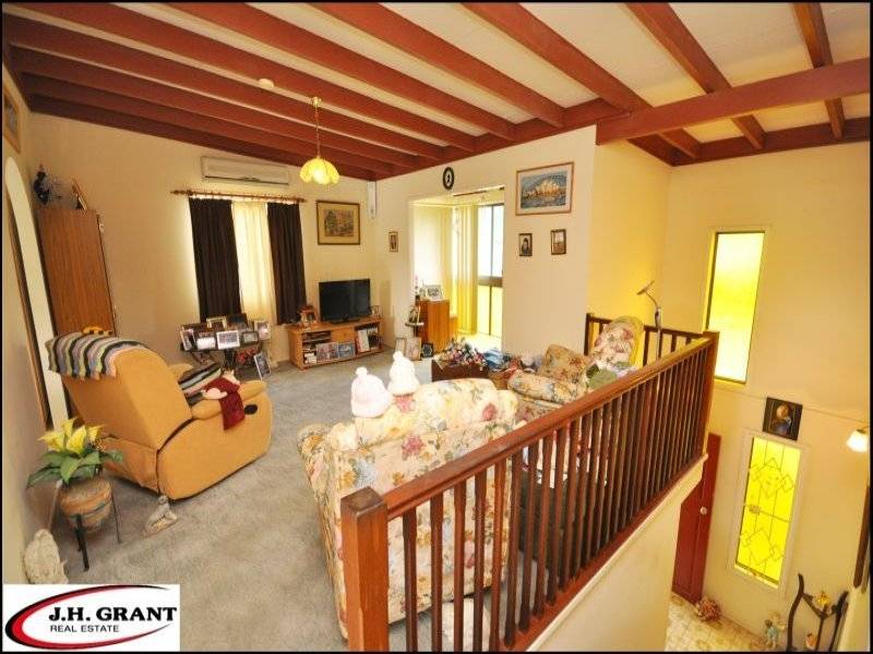This highset home has internal timber stairs, downstairs living area, and a recently updated kitchen. The upstairs living area has raked ceilings and an open study nook. The downstairs living area is spacious and opens to an outdoor entertaining area with built-in BBQ. The house is situated on 615sqm and has side access to the backyard.
