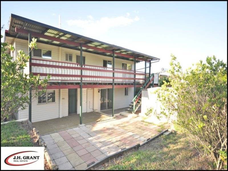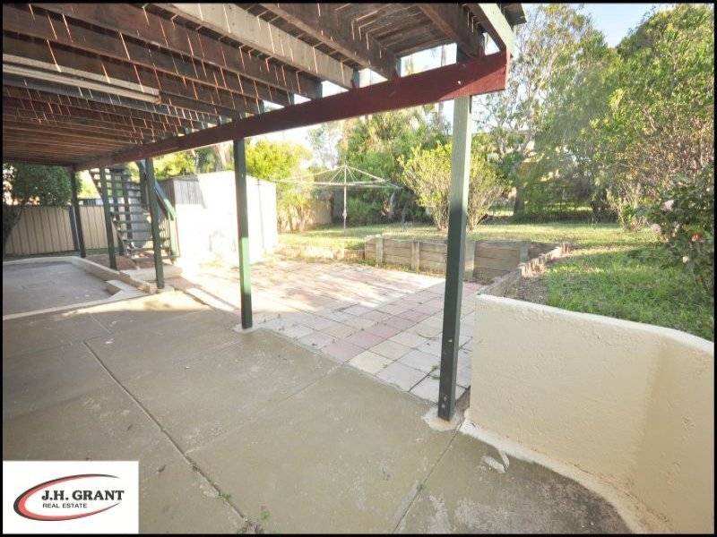 Upstairs there is quite a large living area with raked ceilings, 3 bedrooms 2 with built-in wardrobes, family bathroom and kitchen. There are lovely polished floors and the living area opens out onto the full length back deck overlooking the large backyard.