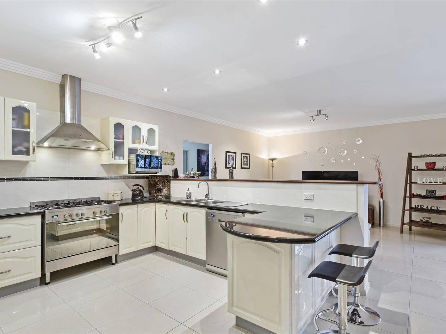 This large 5 bedroom home offers two large separate living areas and an open plan living, dining and kitchen area. The large granite top kitchen has 2 pac cupboards, breakfast bar and a 900mm freestanding oven. The open plan living flows out onto the alfresco under-roof outdoor entertaining area overlooking the pool.
