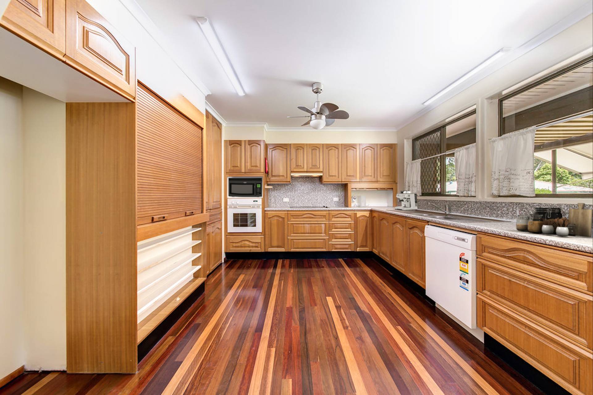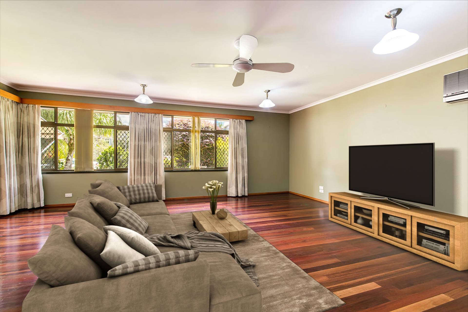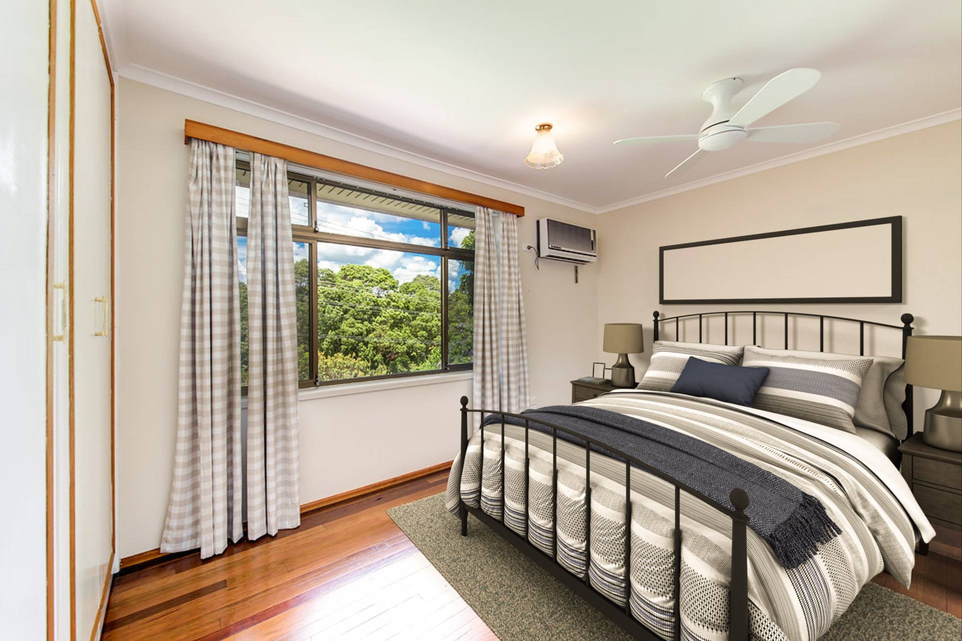 • Hardwood timber flooring, ceiling fans, air-conditioning.