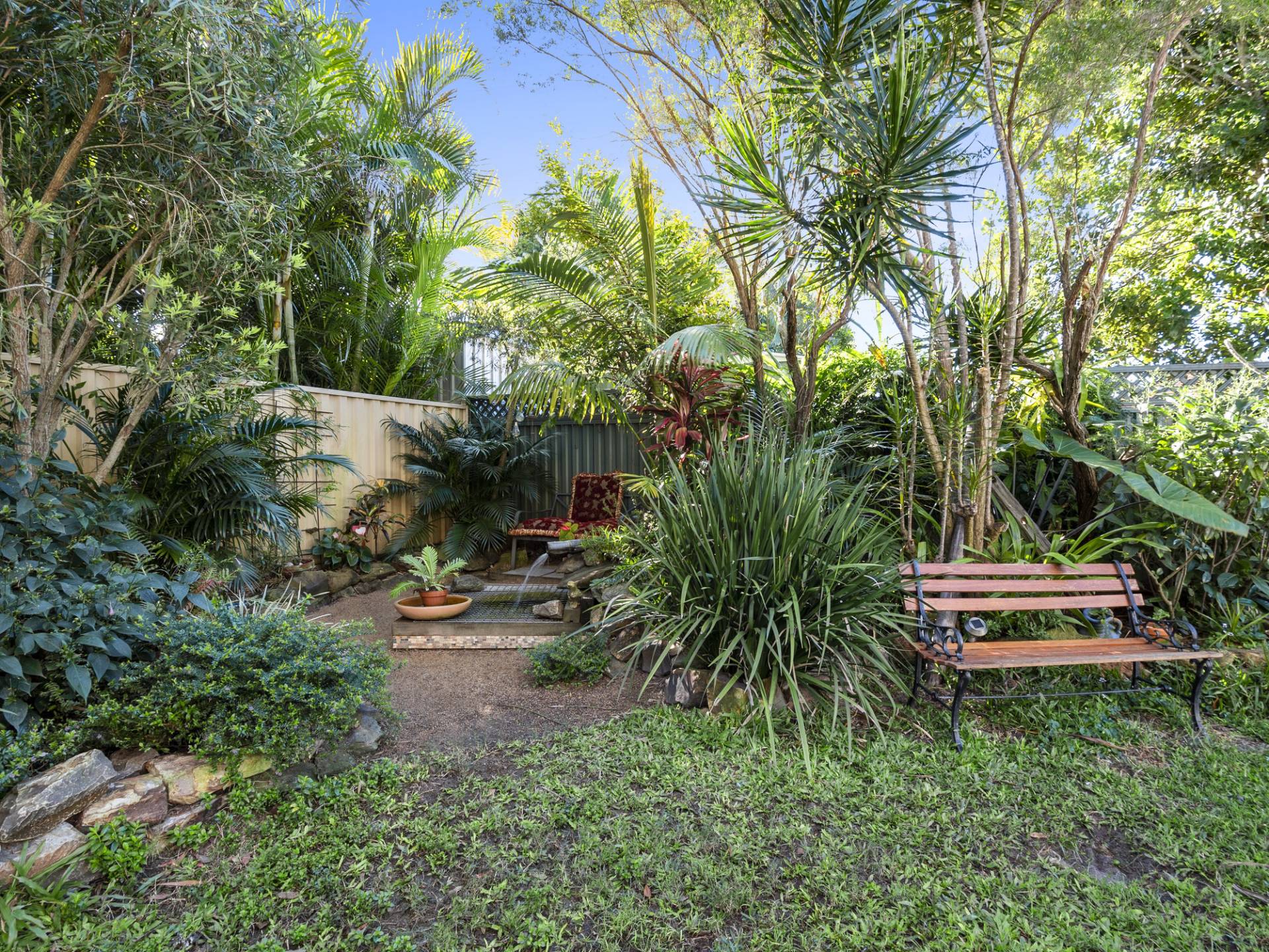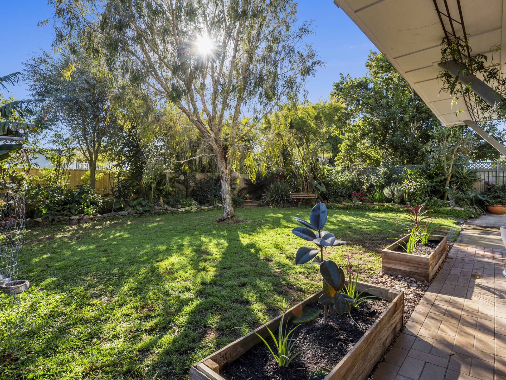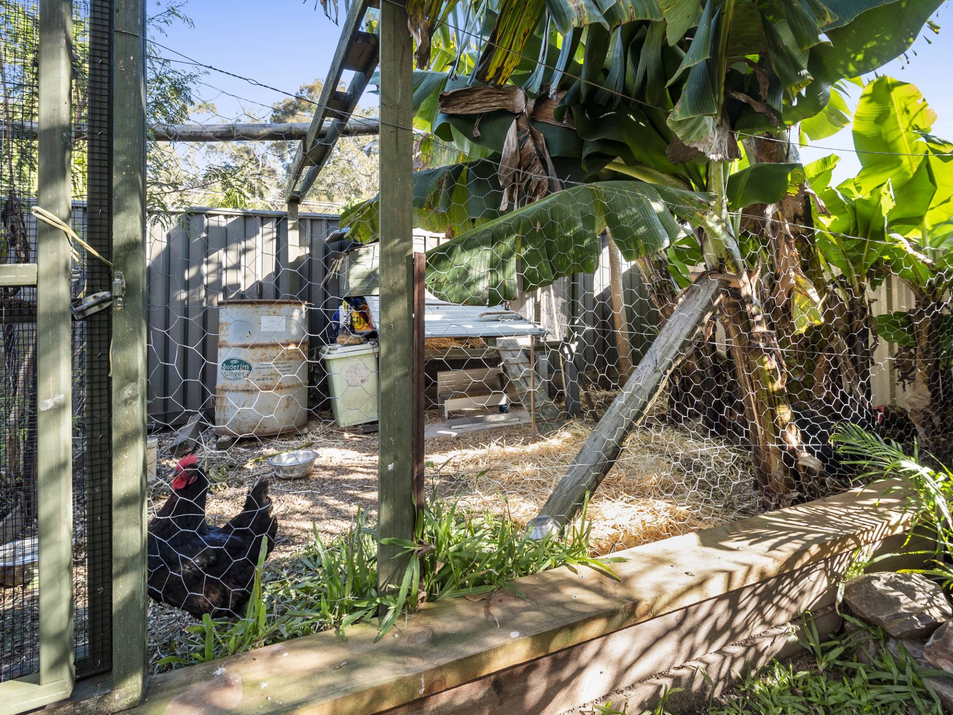 The block size is 587m2, has a fenced backyard that is landscaped, has a vege garden and chook pen while still having plenty of room for an inground swimming pool.
