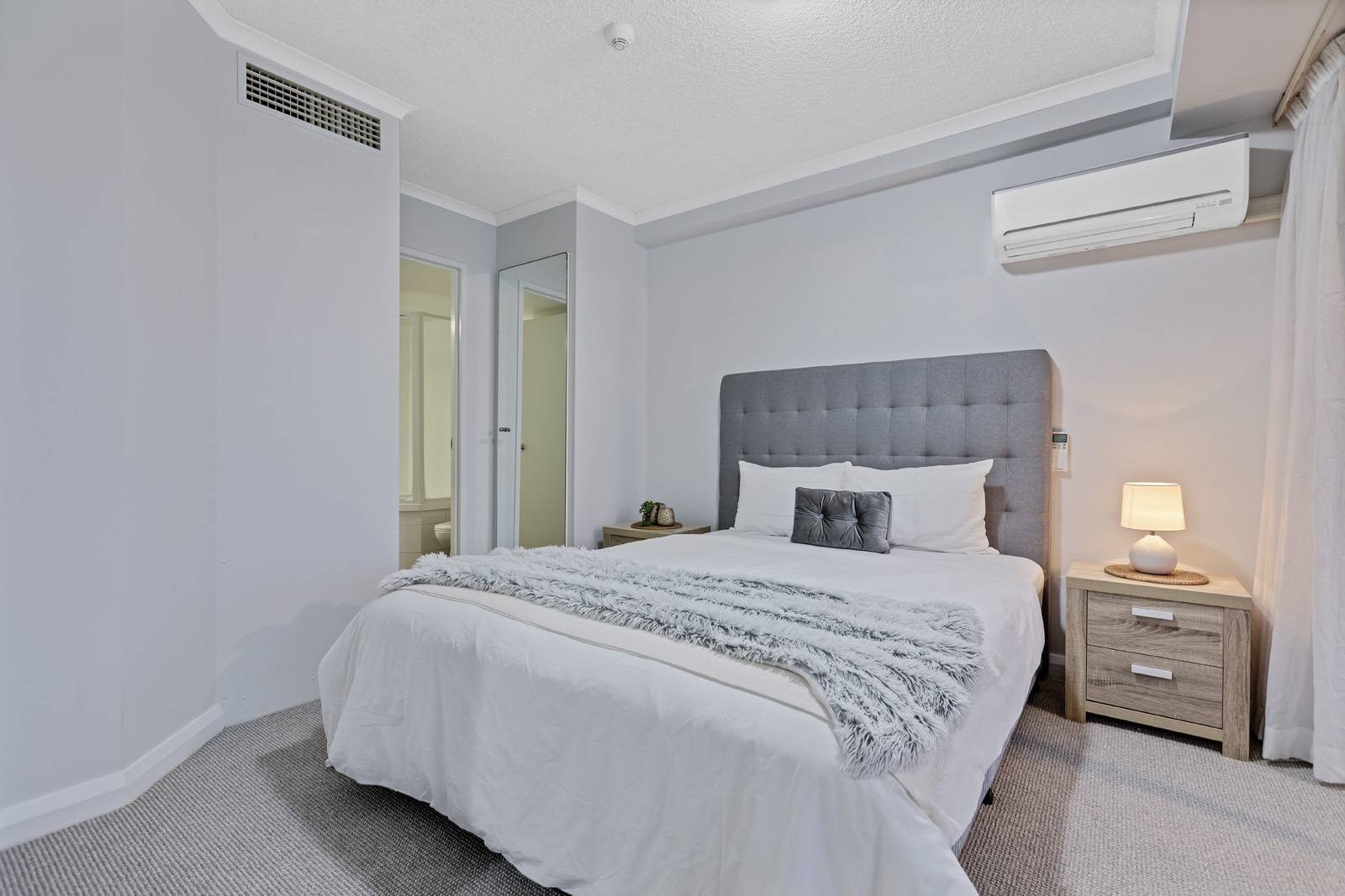 • One well sized bedroom with his and hers built ins, direct balcony access and reverse cycle air.