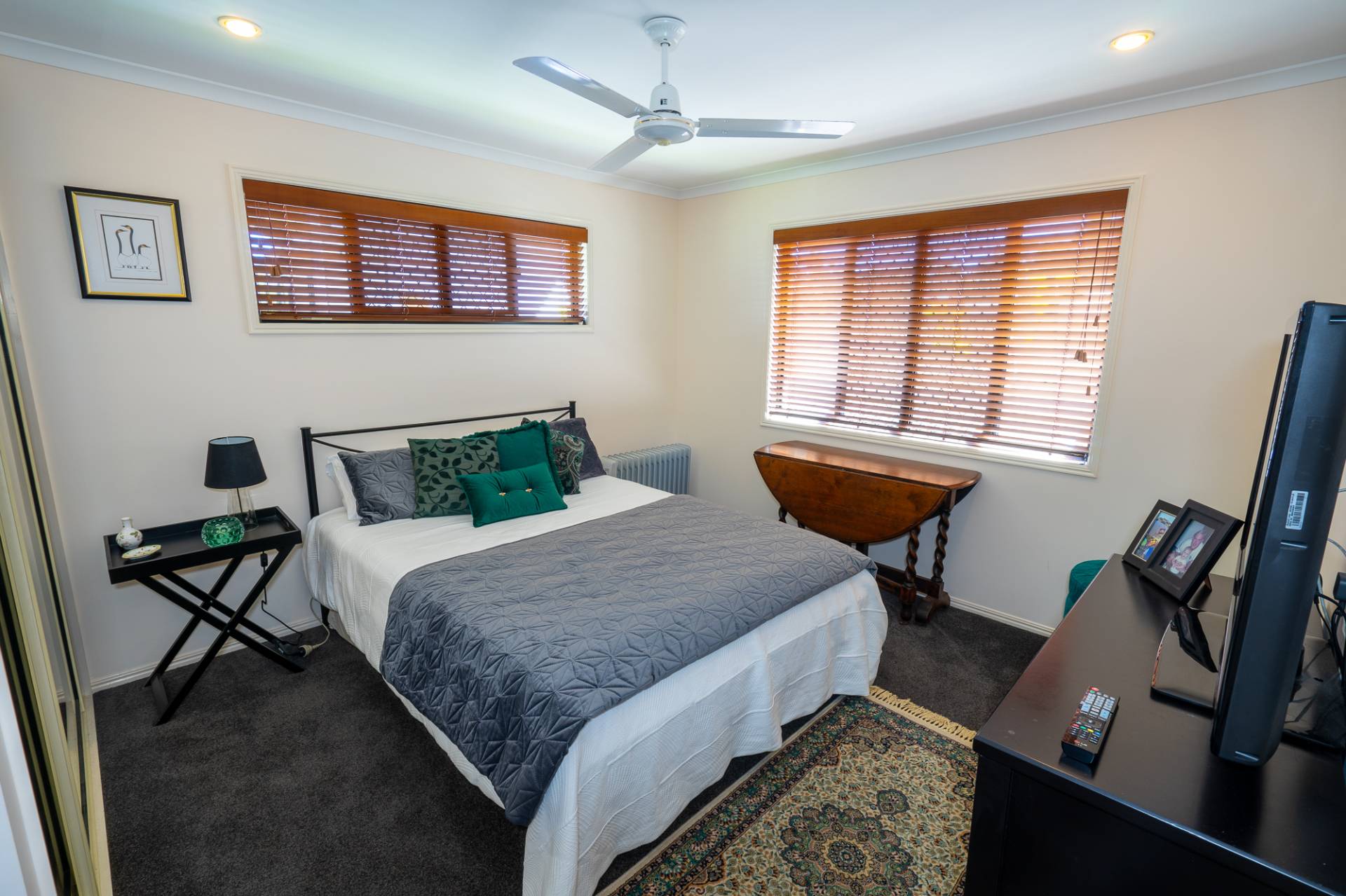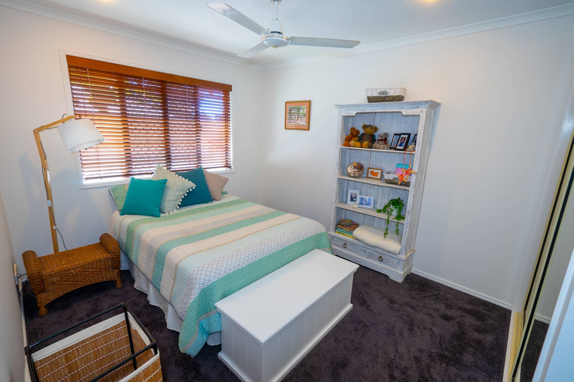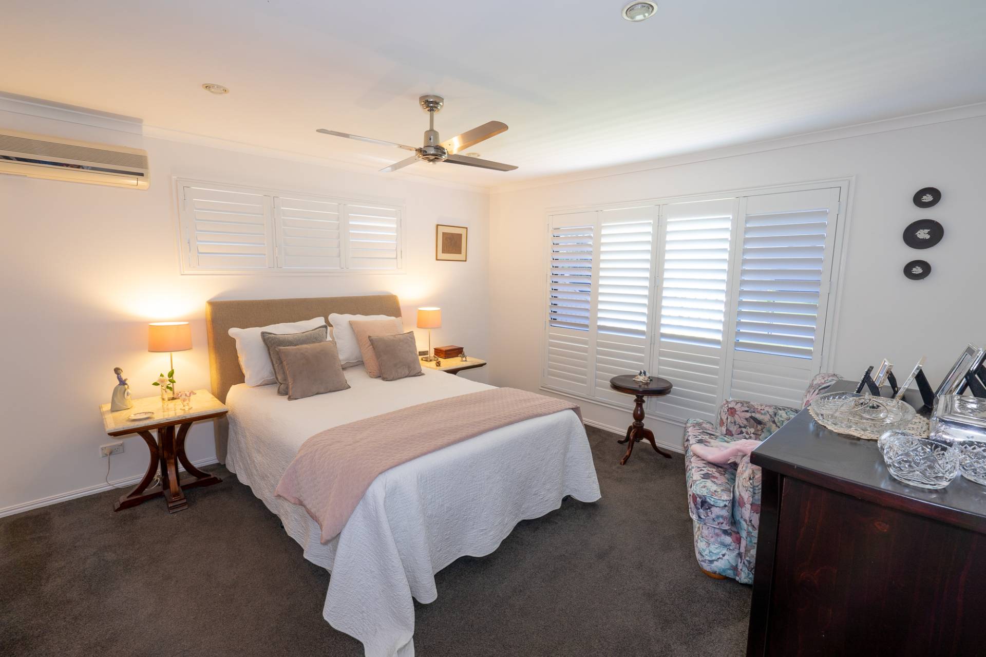 The air conditioned master bedroom is located at one end of the house, providing a private parent’s retreat. Complete with plantation shutters, ensuite with double vanities and walk through robe. The other three generous sized bedrooms come complete with ceiling fans and built-in robes.