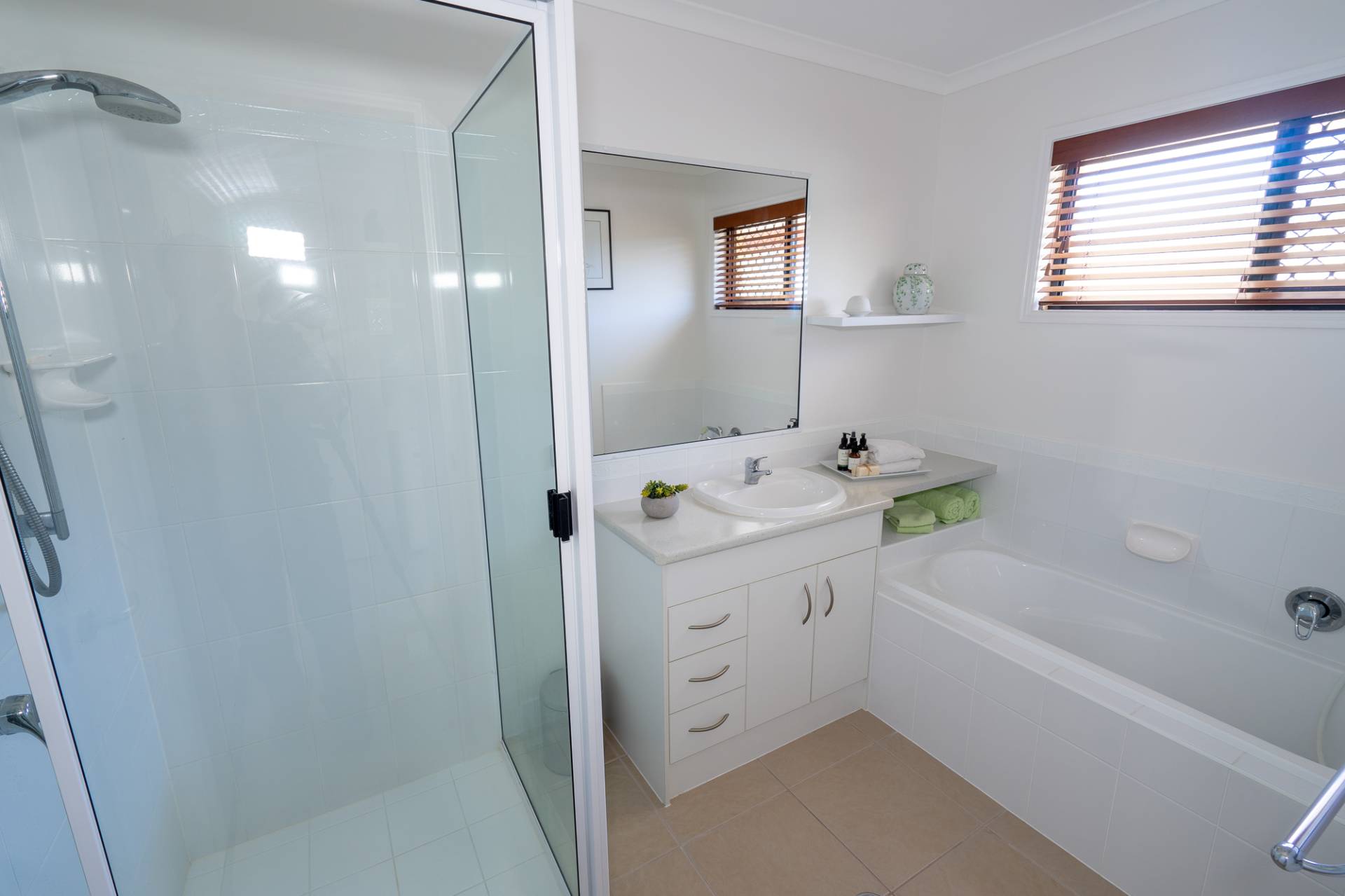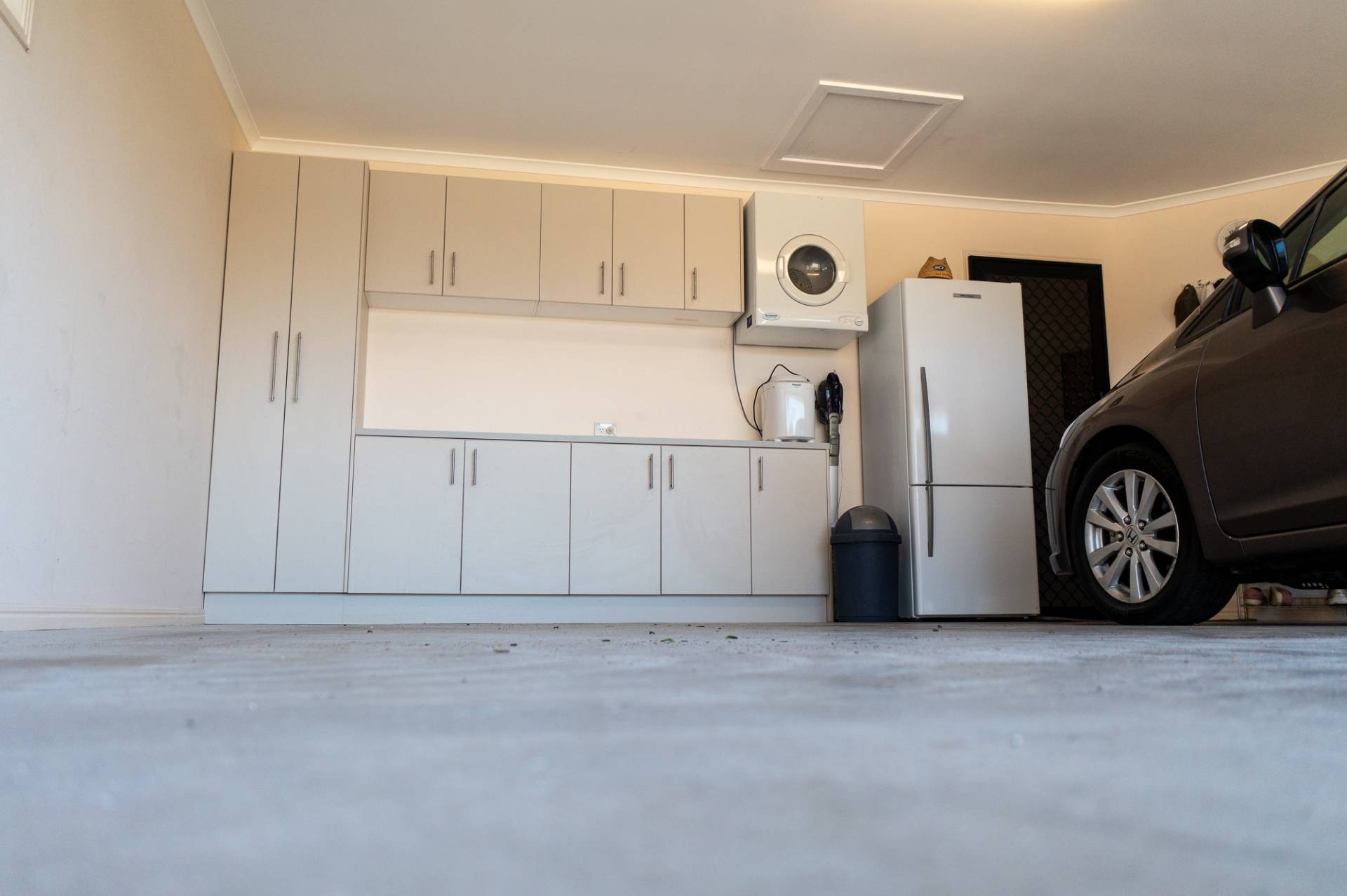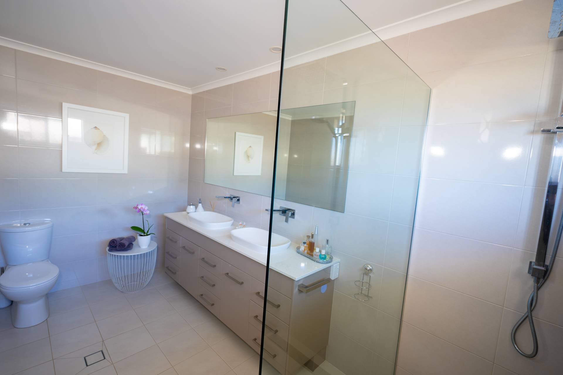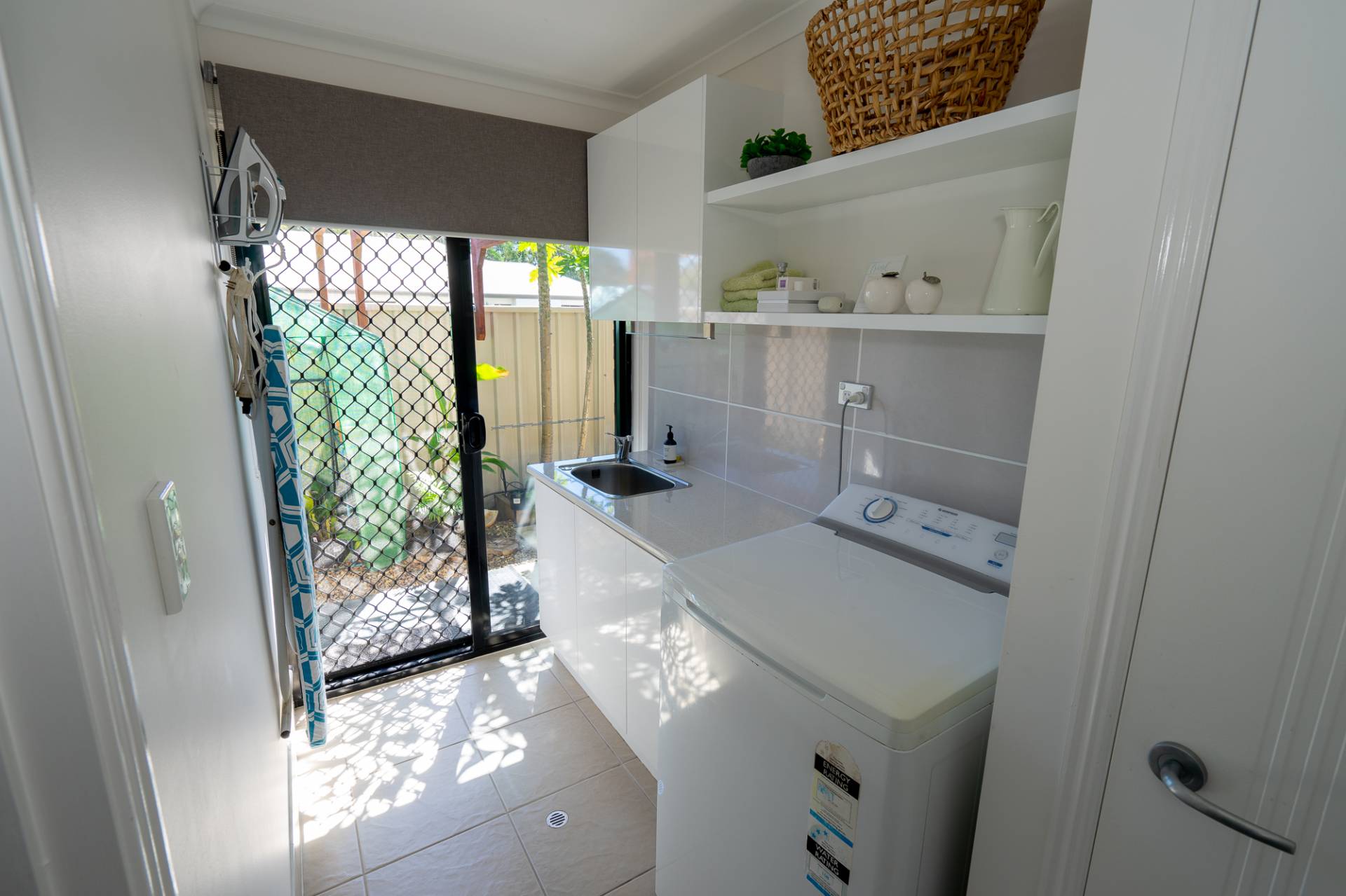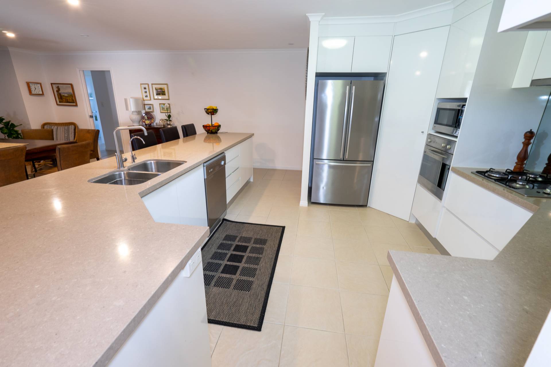 The modern, quality appointed kitchen with its stone benchtops, gas cooktop, unique built-in wine rack, stainless steel appliances, dishwasher and plenty of cupboard and bench space has everything the home chief needs to create their culinary masterpieces. The kitchen also overlooks the air conditioned open plan dining and living area ensuring you are part of the conversation, even when cooking that Sunday roast for the family.