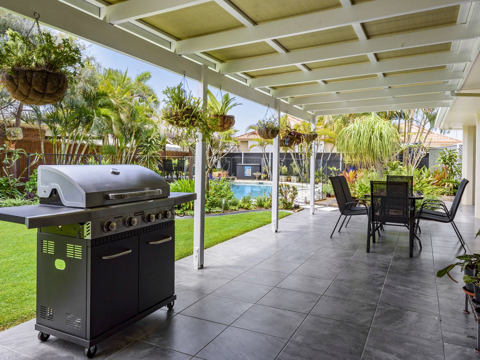 Entertaining ‘alfresco’ will not disappoint with a generous undercover area amongst the beautiful gardens and where you to relax and enjoy special time with family and friends and with clever use of glass pool fencing you can keep an eye on the kids frolicking in the swimming pool.