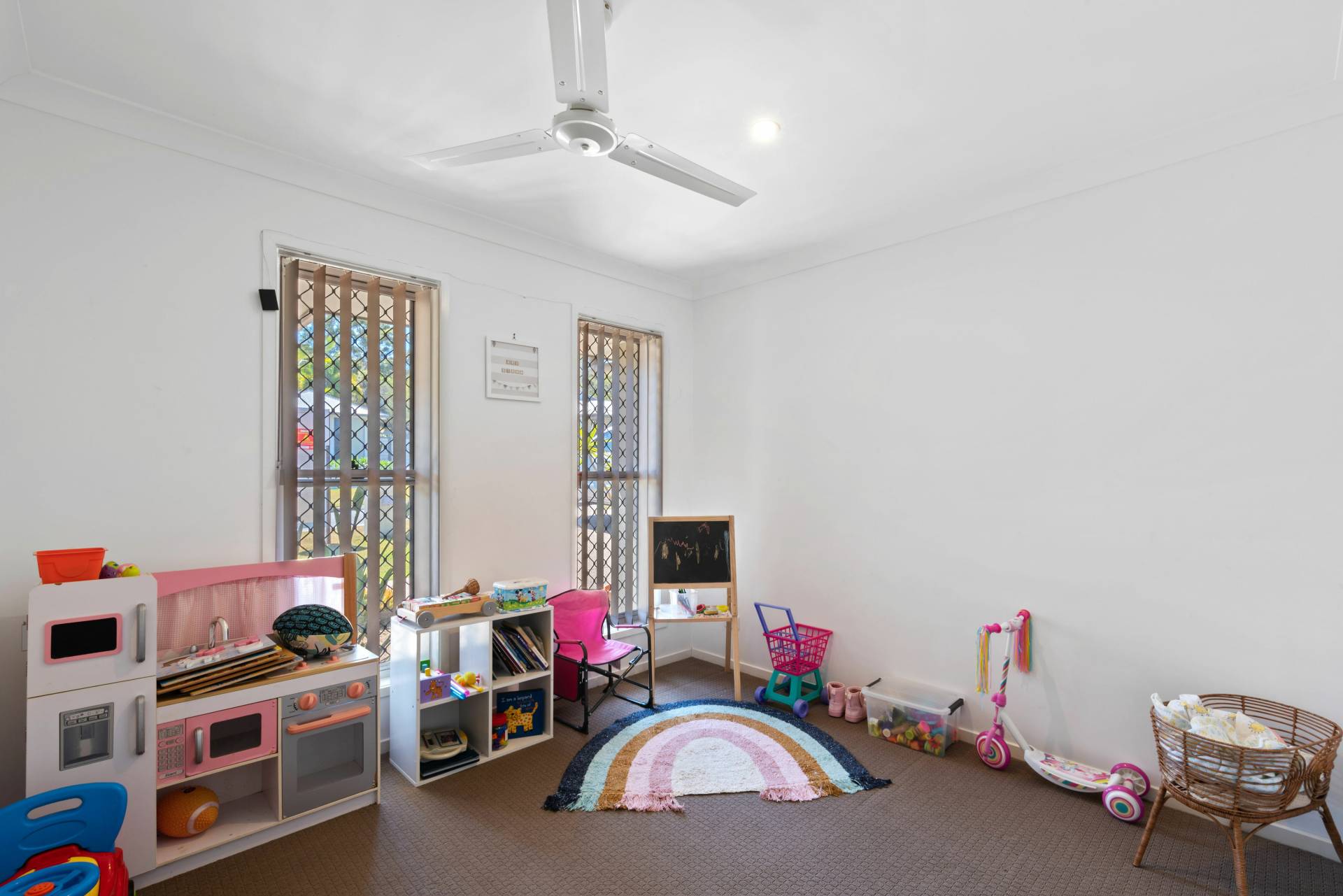 Extra features include: Less than 5km to Bullcock Beach* (data from google maps) Plenty of room for a pool Master bedroom with walk in robe and en suite Large side access Ceilings fans in all bedrooms Study nook adjoins main living space Separate laundry, not one squashed in to the garage Large media room, this could also be used as a 5th bedroom Across the road from the Jill Chamberlin reserve, natural flora and fauna bushland