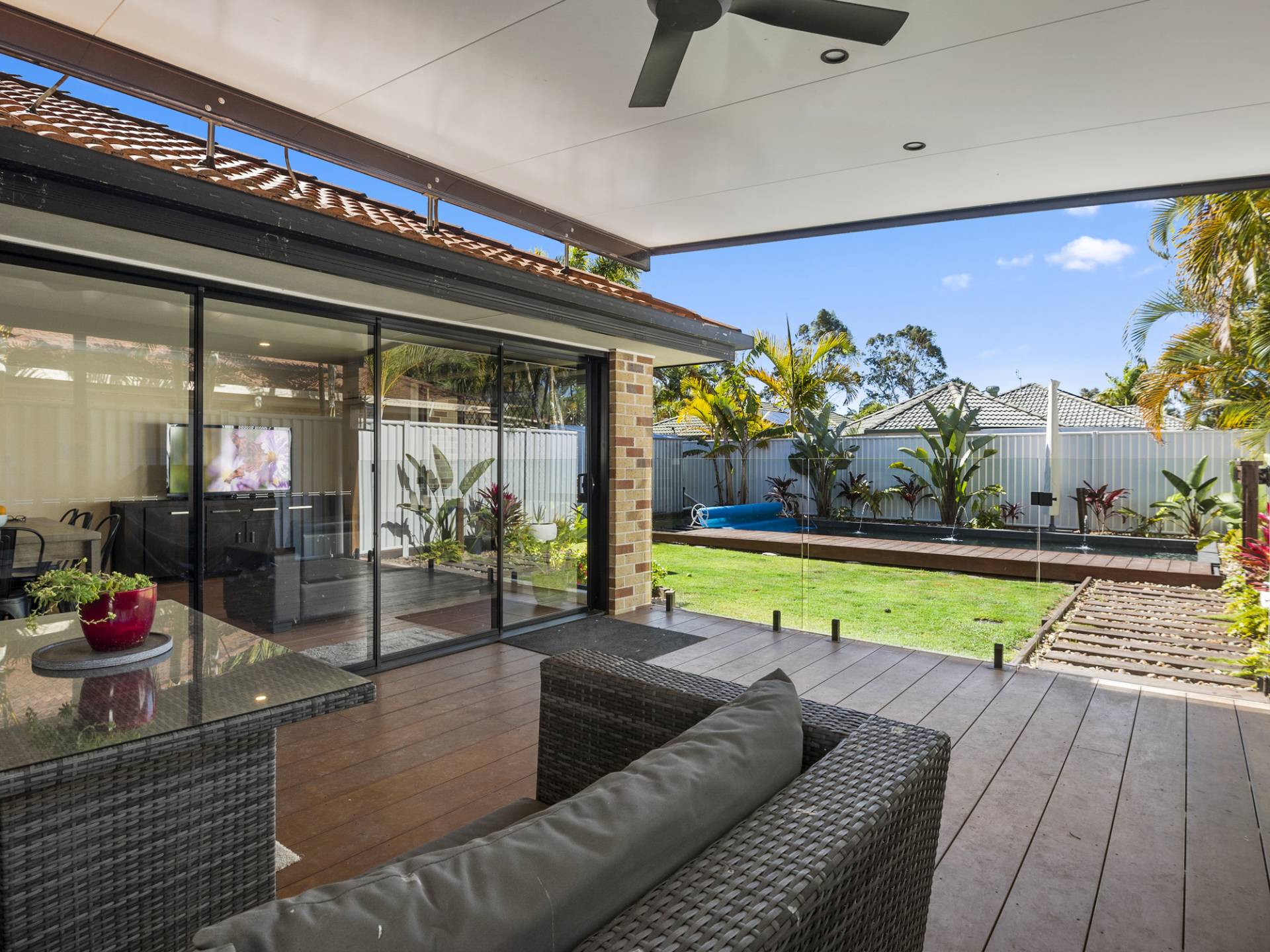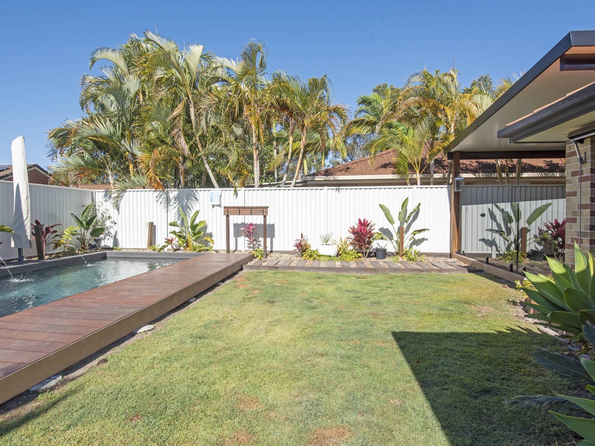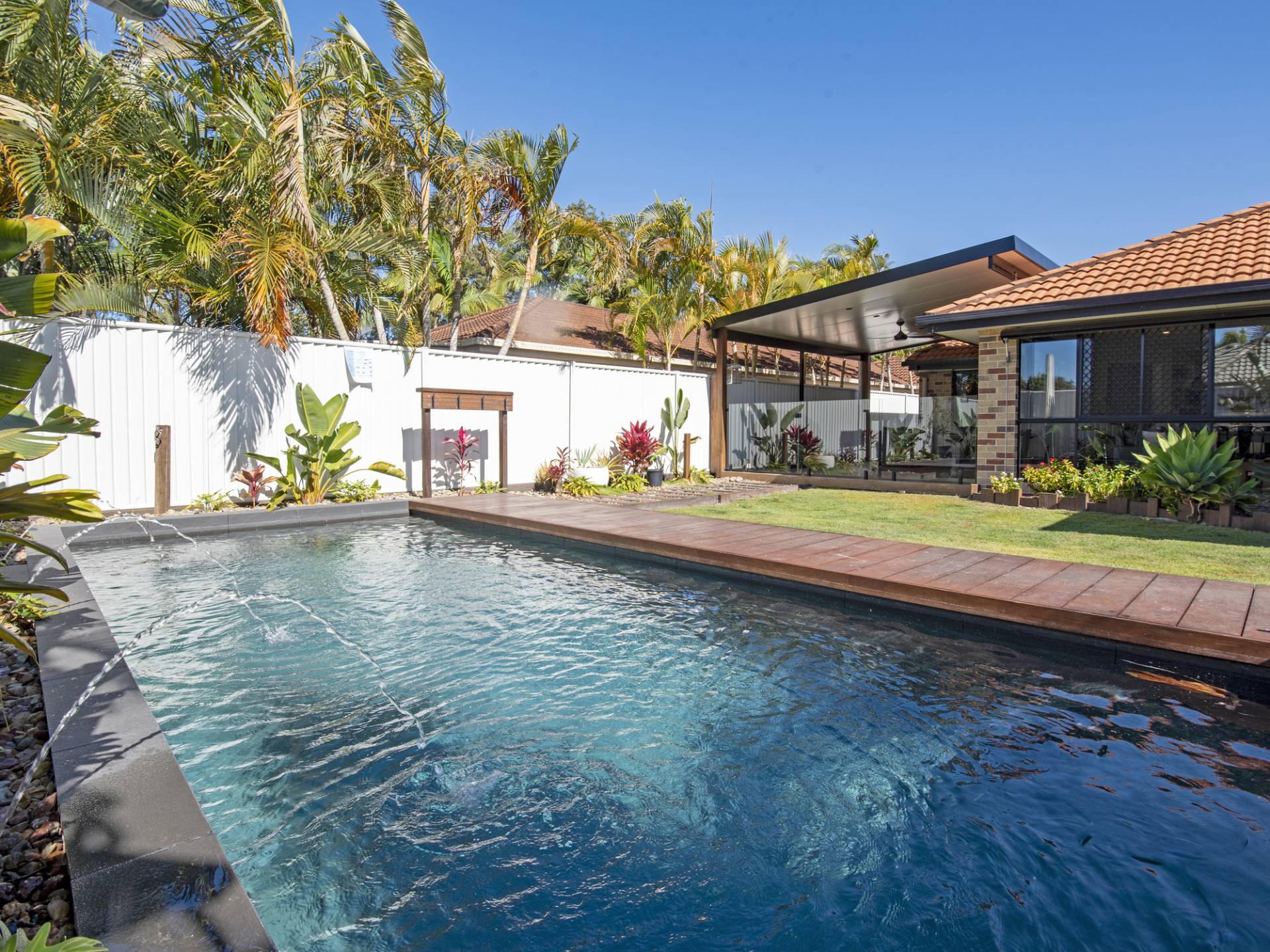 Sliding doors open out to the timber deck, perfect for the weekend BBQ’s where you can relax and wile away the hours overlooking the stunning in-ground pool with water feature. The fully fenced back yard has easy to maintain gardens with garden shed to store your toys in.