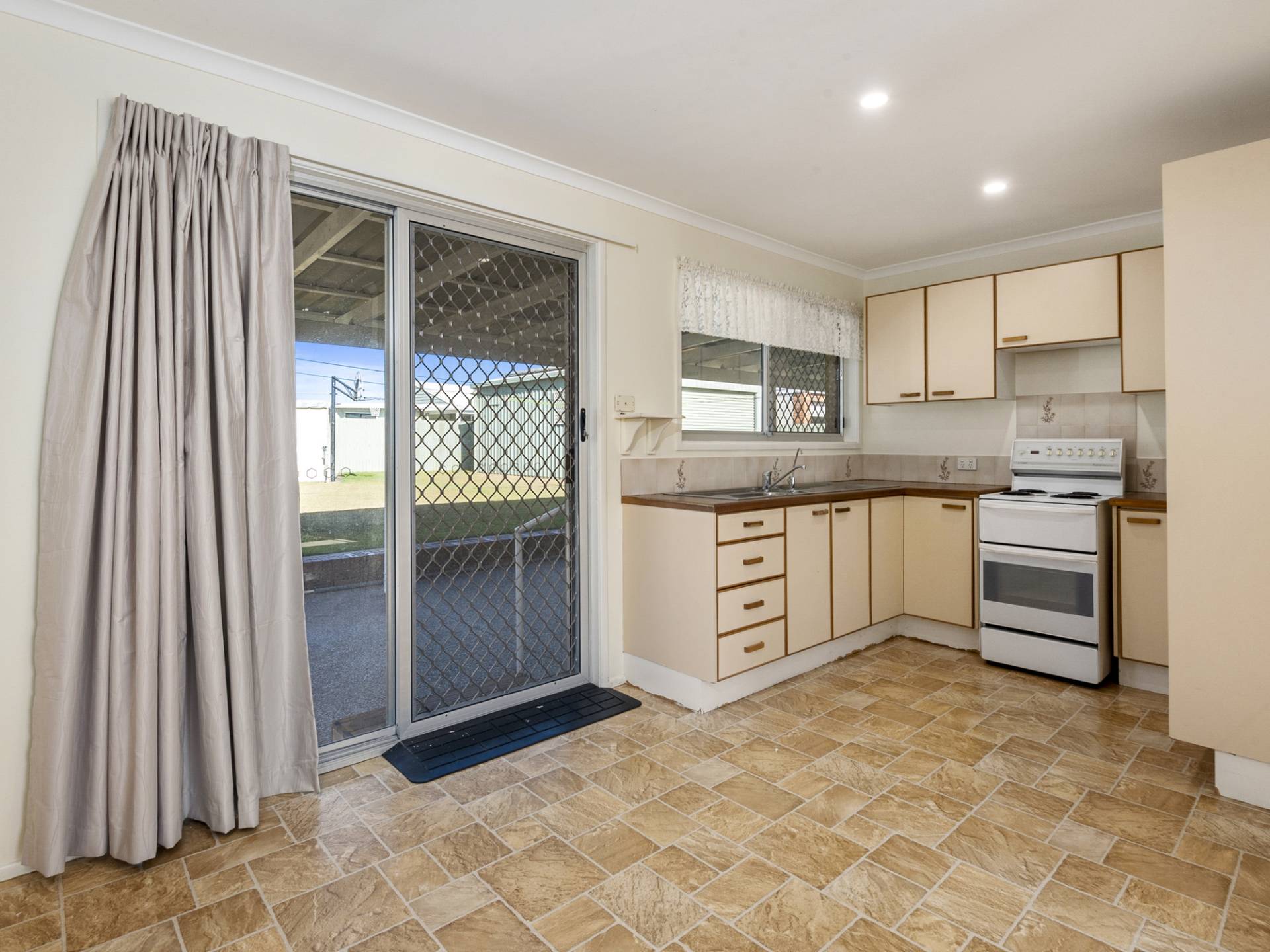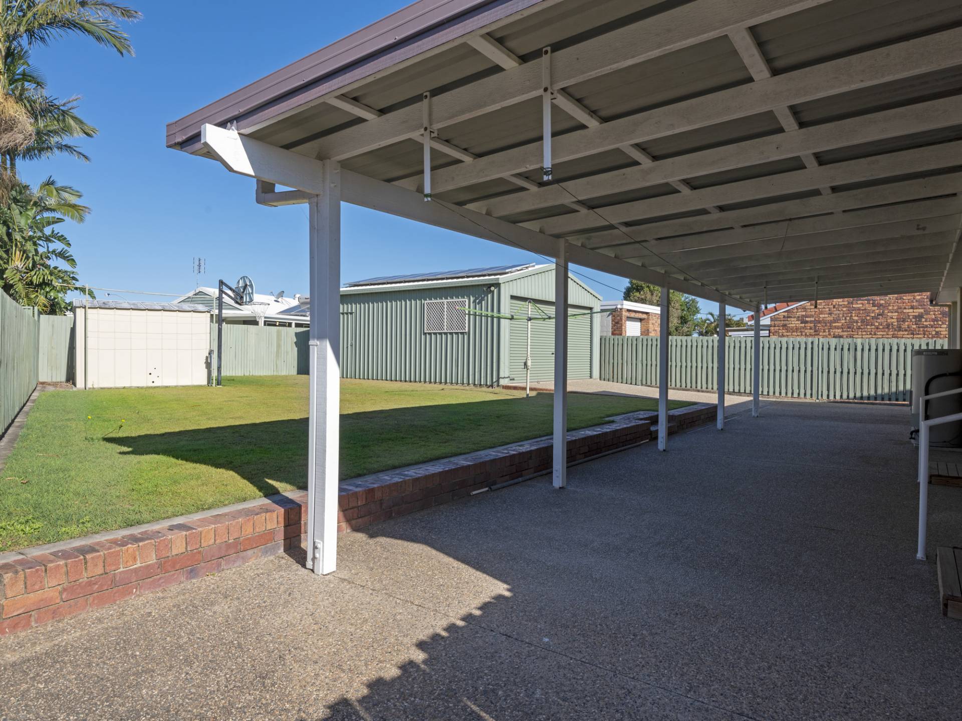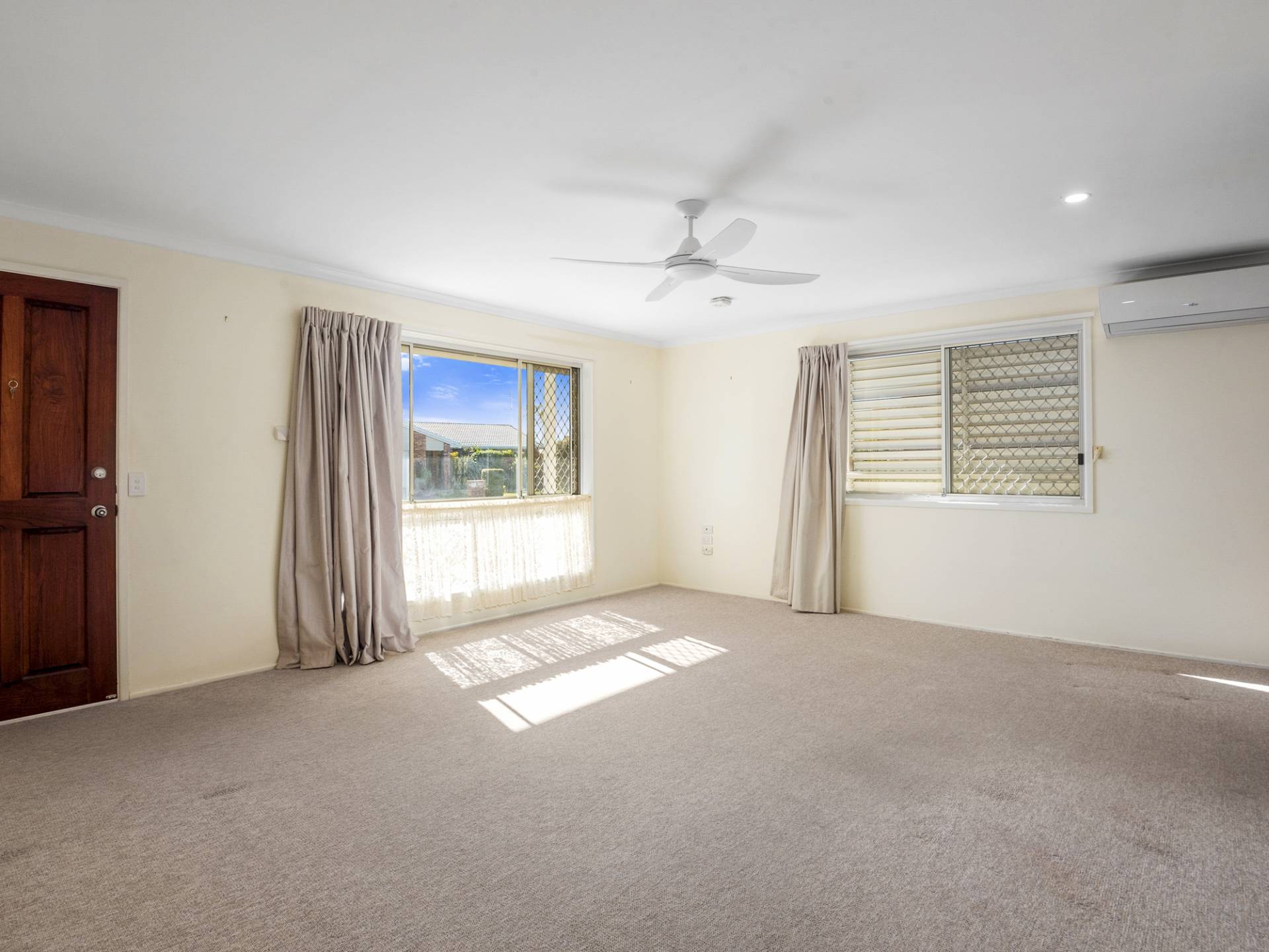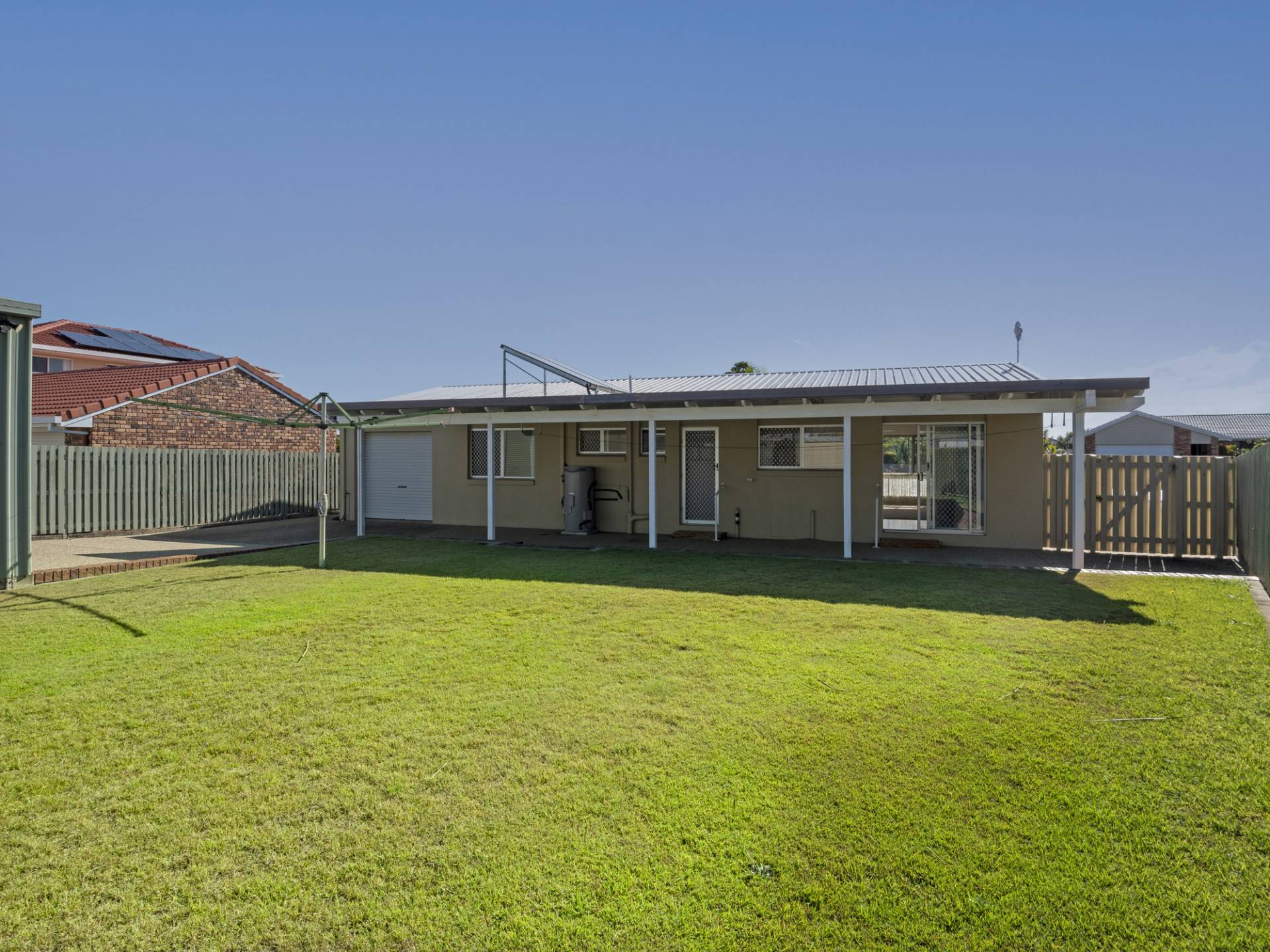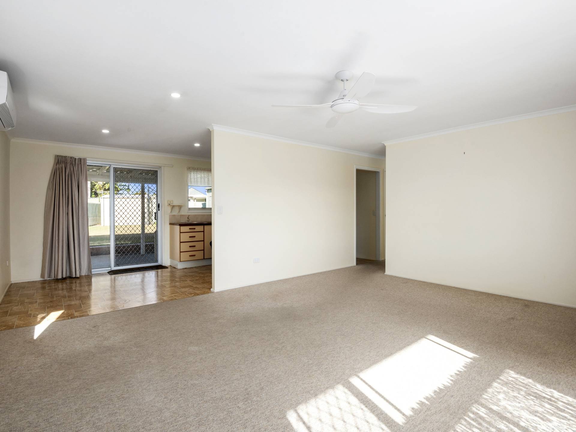 Enter the front door into the large open plan living space with air-conditioning. The dining and kitchen are adjacent and open out via sliding doors to the undercover patio that spans the length of the home.