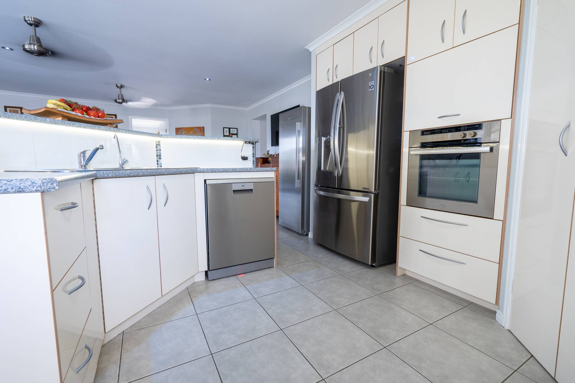 A well appointed, open plan kitchen with large pantry, dishwasher and plenty of bench and cupboard space