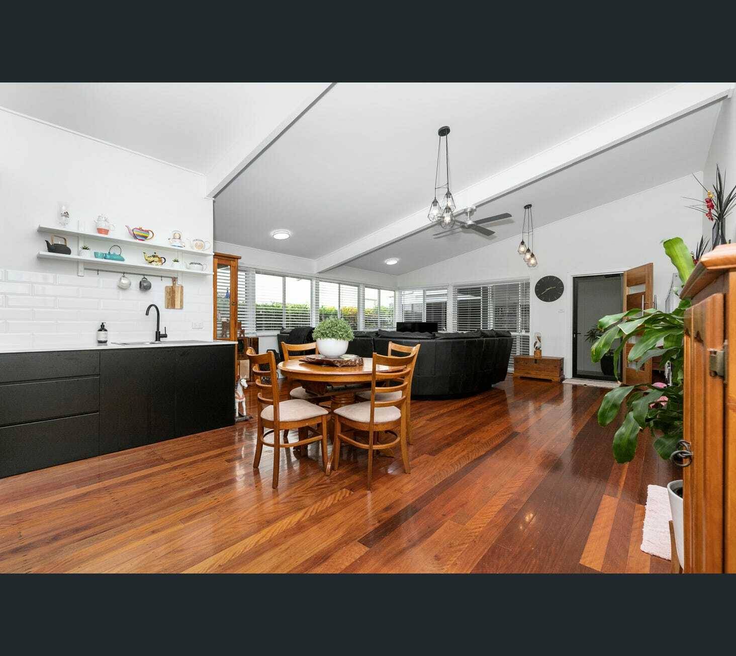 Versatile floor plan including a lower level kitchenette (fridge space, appliance, sink and fine cabinetry) making it possible for dual living. On this same level has an open plan generously sized living room with high raked ceilings with the warmth of beautiful polished timber flooring. 2 good sized bedrooms on this level, along with 2 bathrooms and study nook that leads out to the back covered patio area overlooking a tidy low maintenance fully fenced yard.