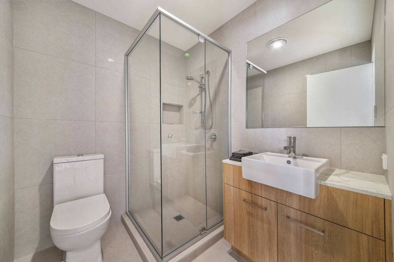 - Modern natural tones feature in handpicked 600 x 600 floor tiles and floor to ceiling wall tiles in wet areas