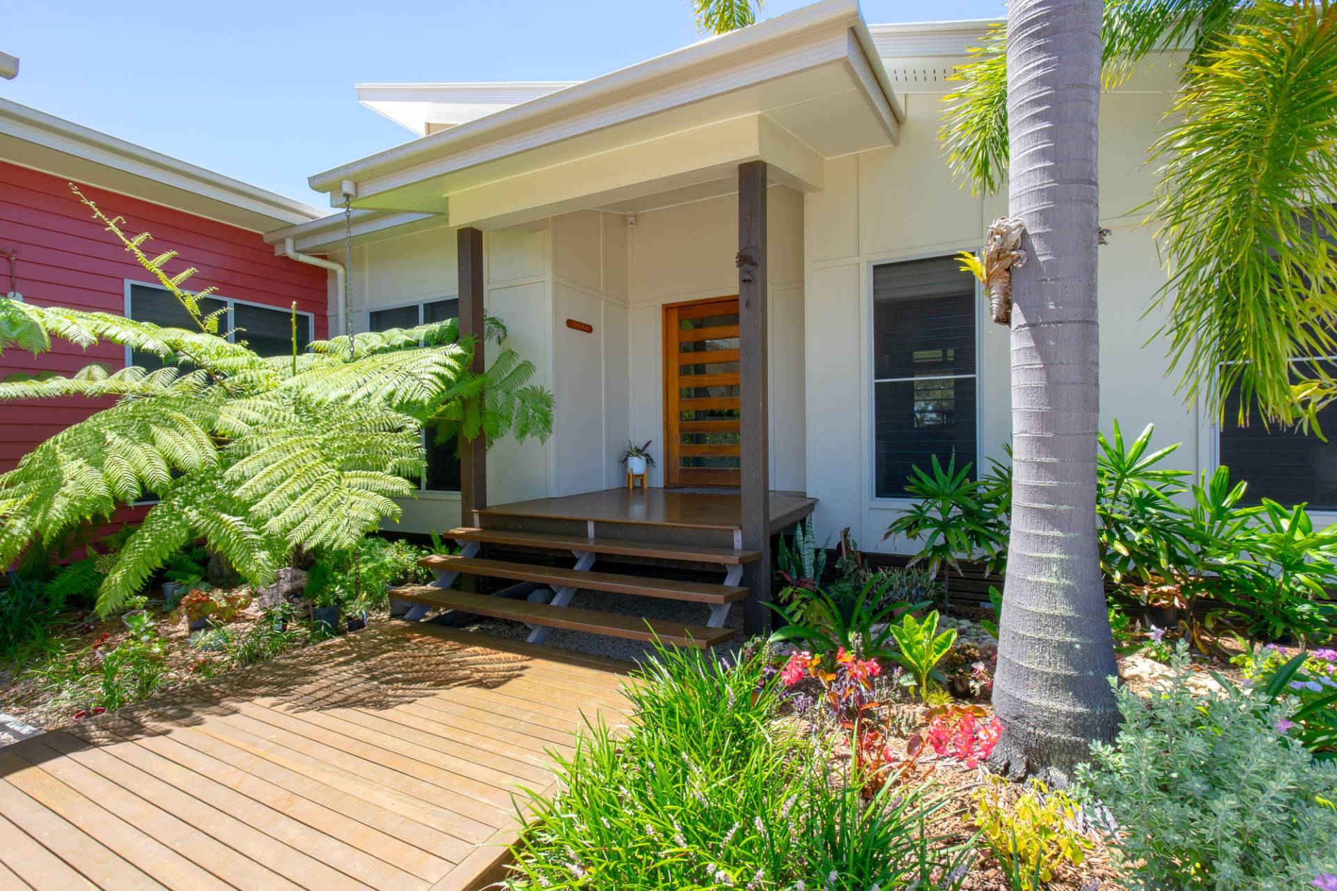 This beach house inspired home sits approx. ½  metre off the ground on galvanised steel posts. The contemporary colours on the exterior offer a timeless, classic look, with the wide timber front door offering a perfect point of distinction to this well-designed home.