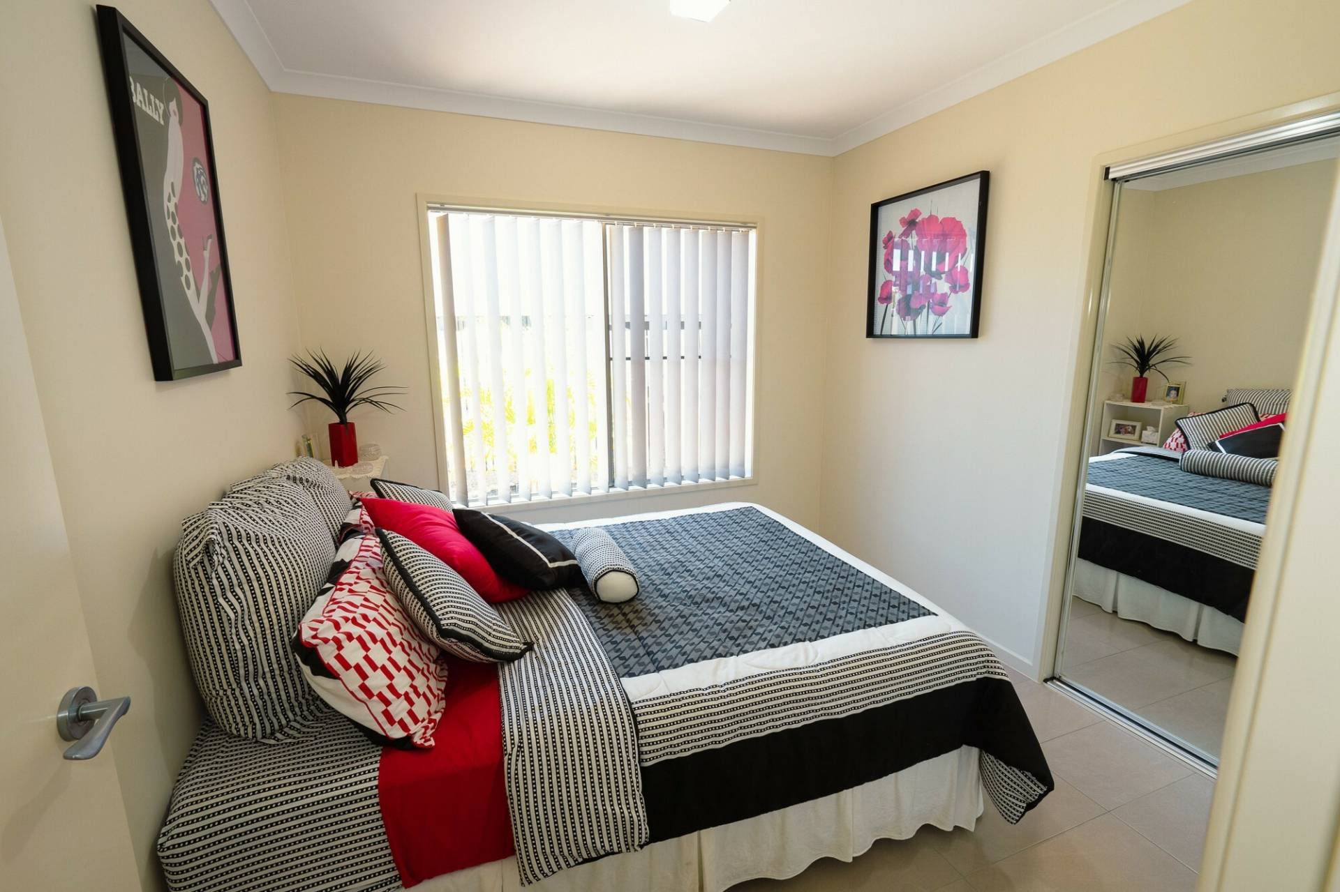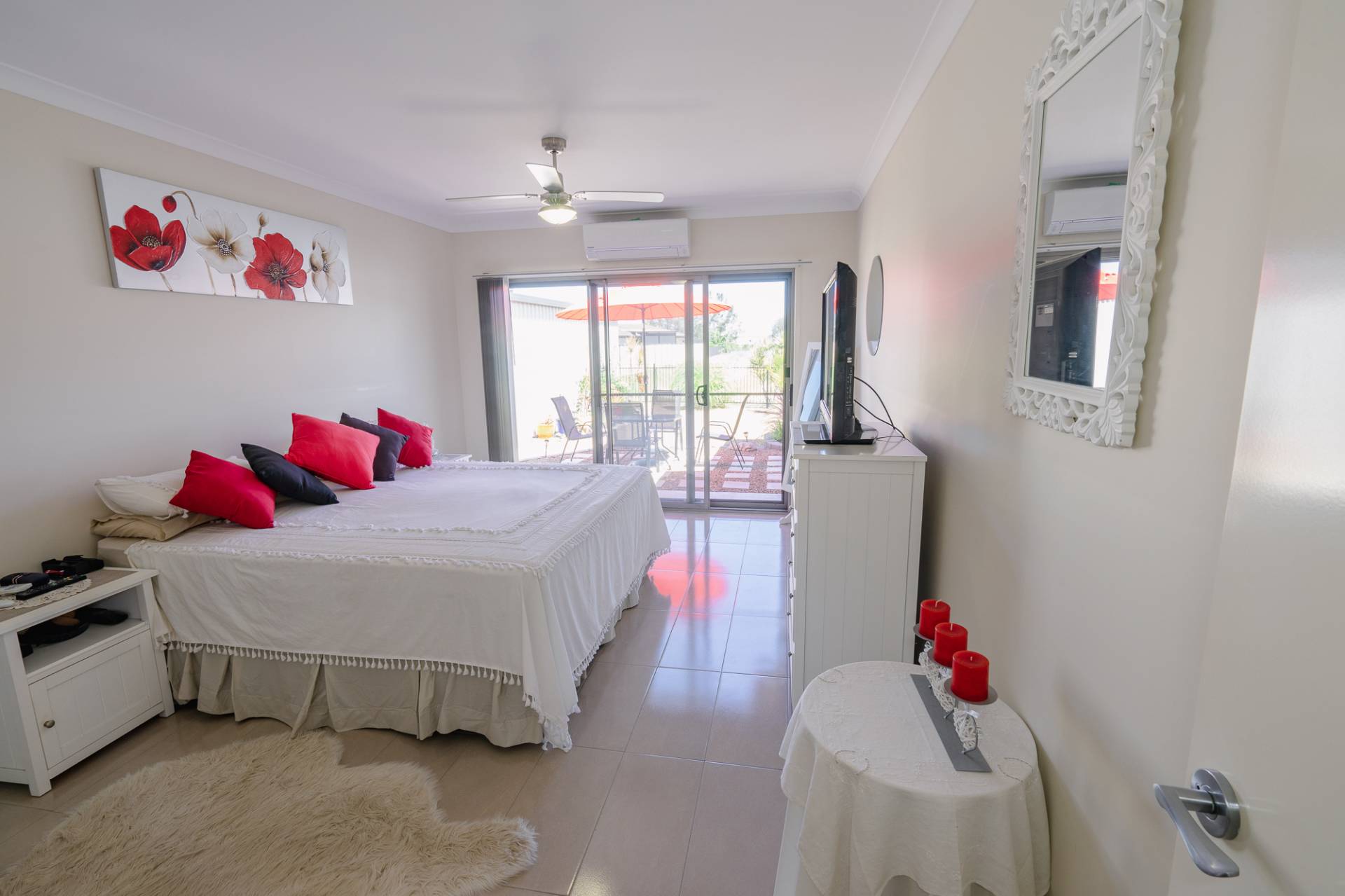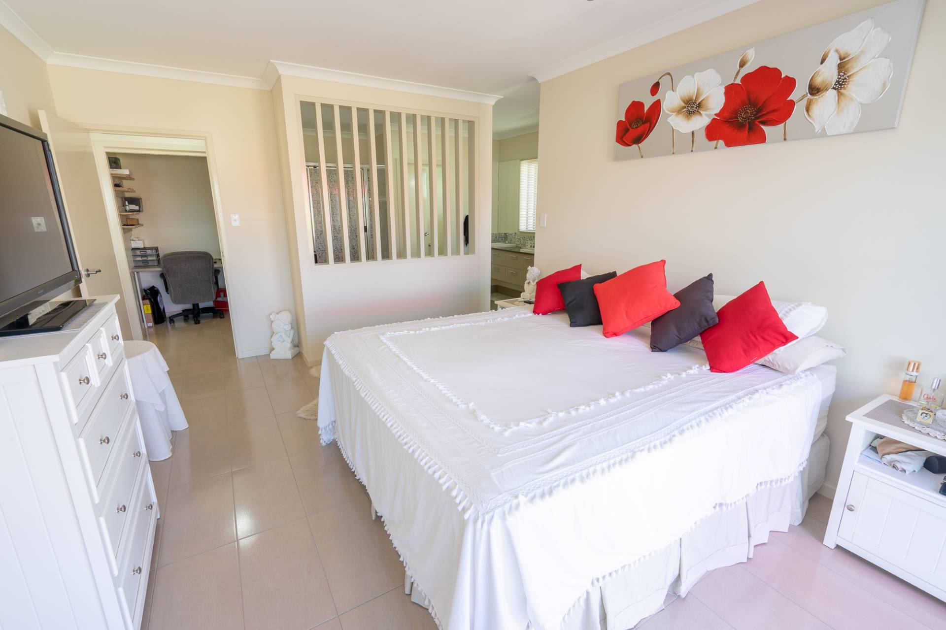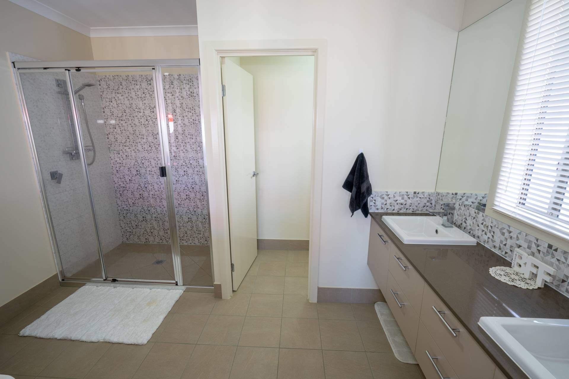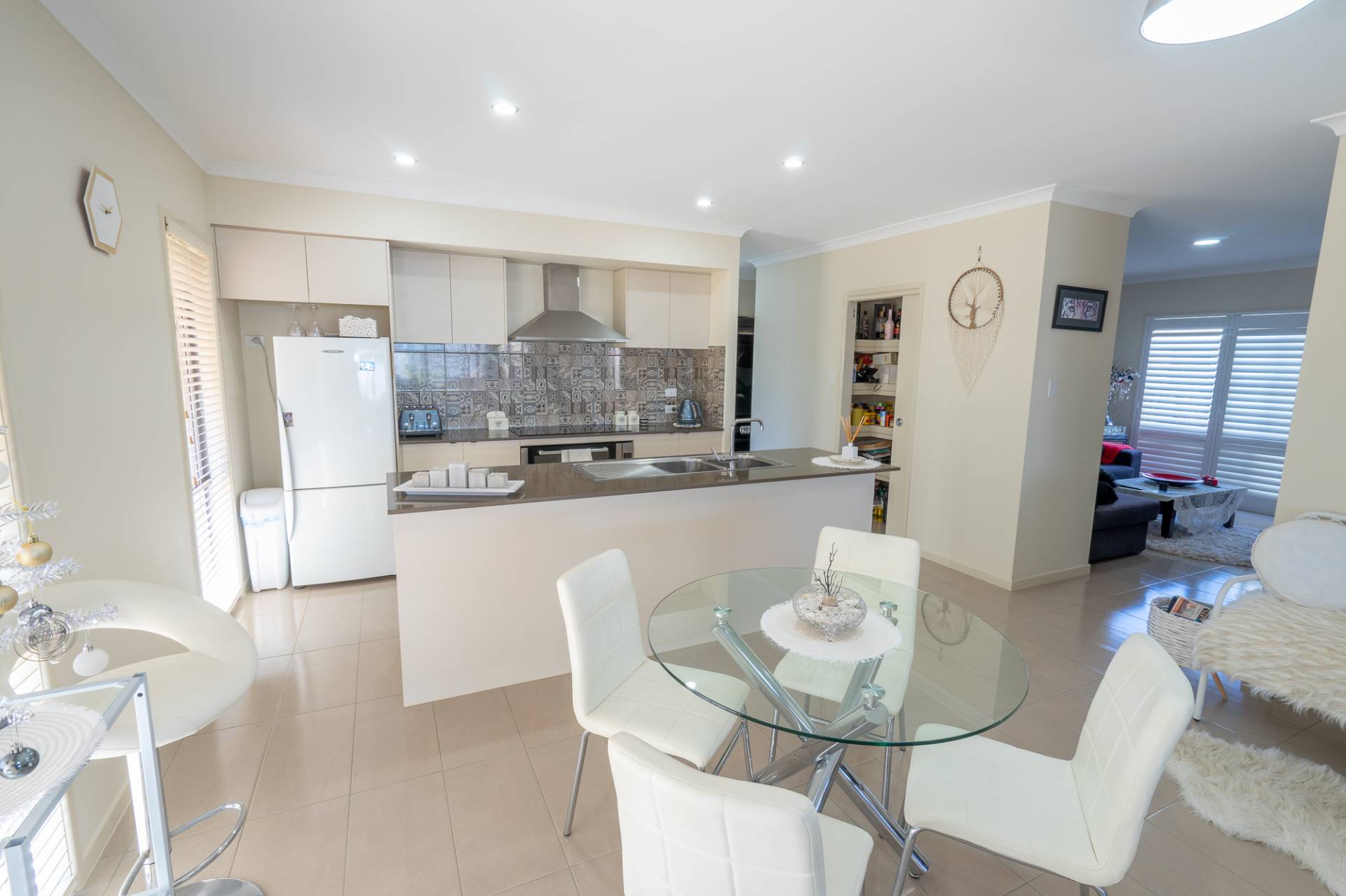 The modern kitchen features stone benchtops, walk in pantry and a unique, eye catching splashback that offers a perfect point of distinction to this well-designed home. The kitchen also overlooks the air-conditioned open plan living/dining area ensuring the home chief remains part of the conversation while also offering air-conditioned comfort while preparing their culinary masterpieces.
