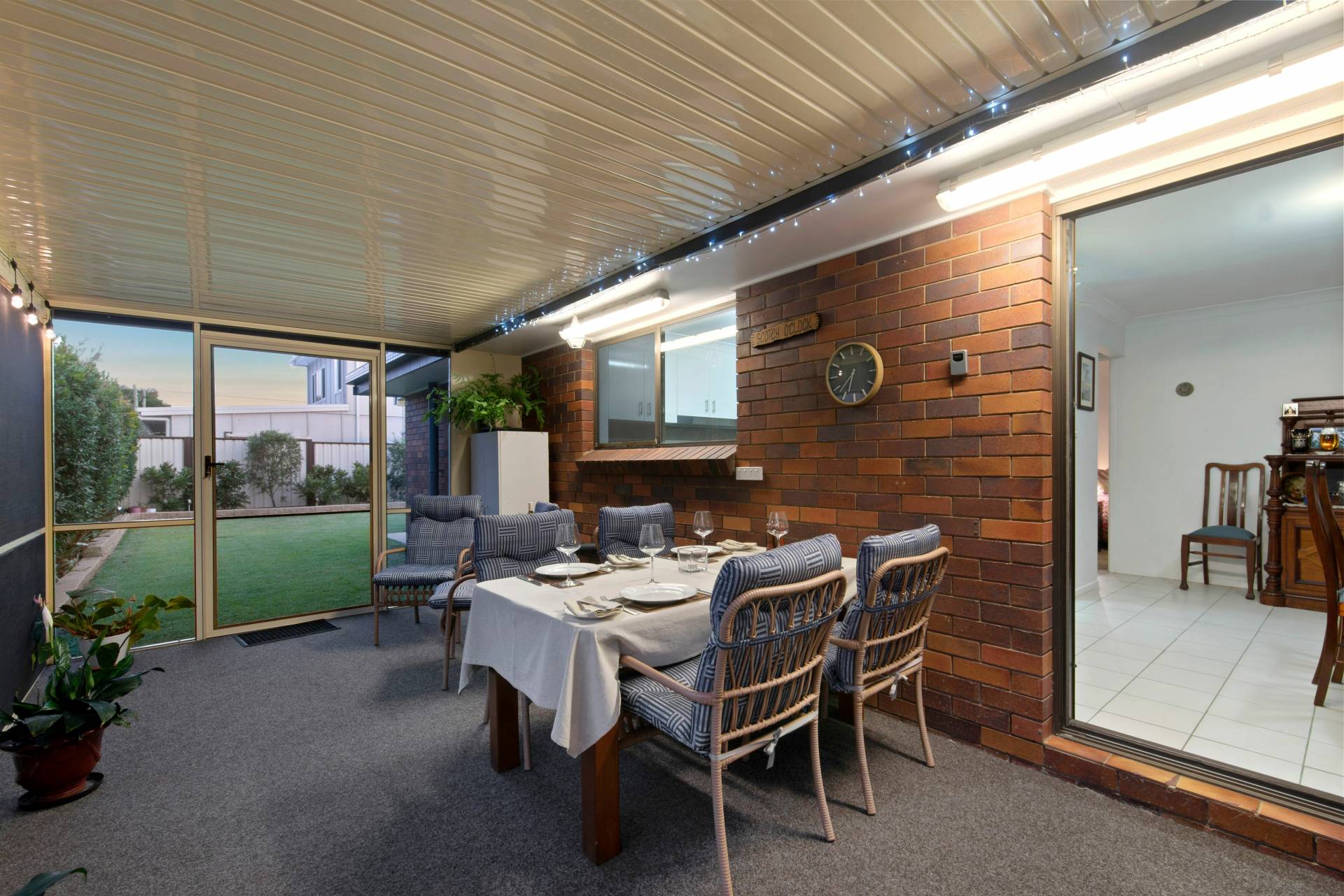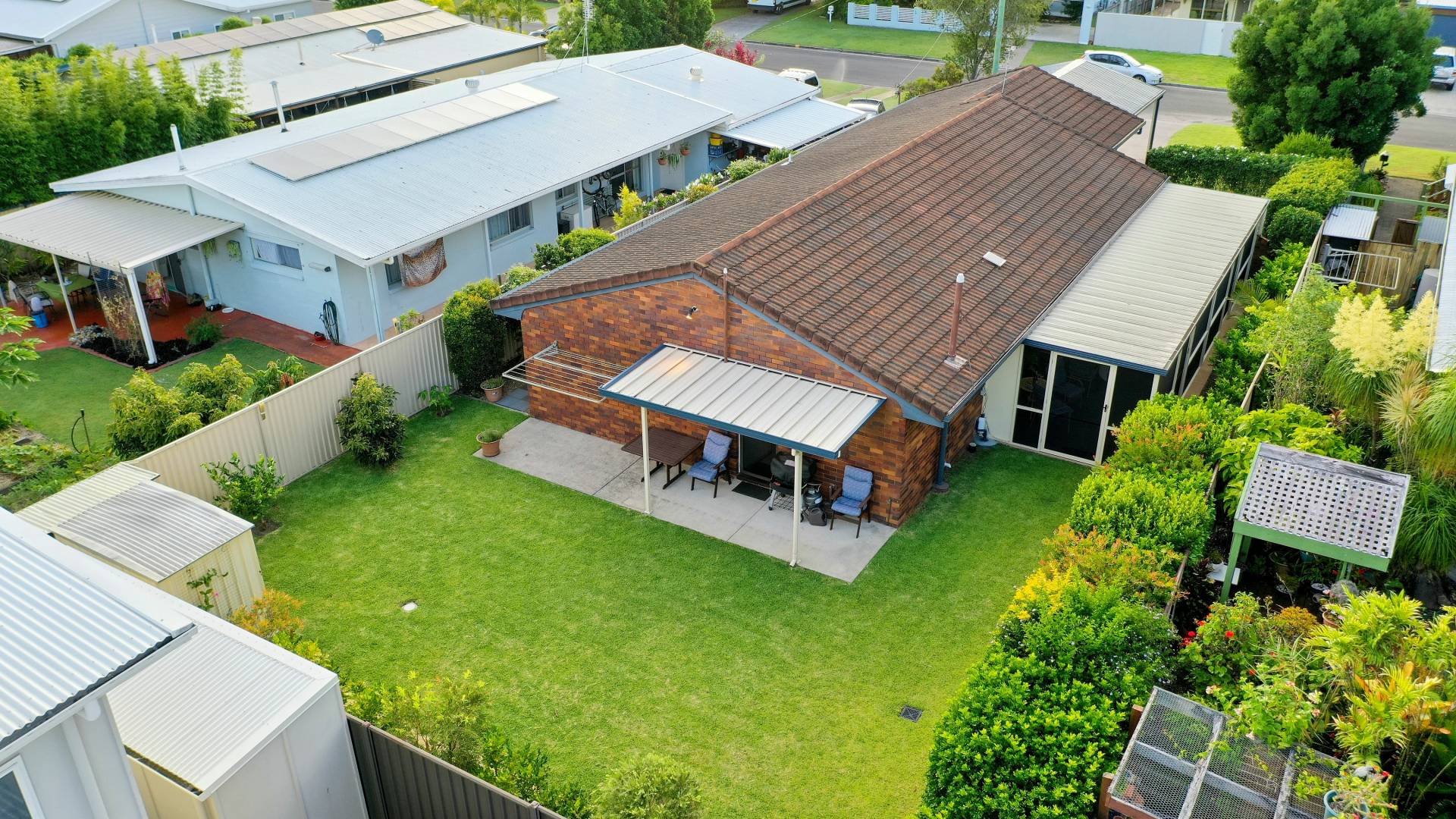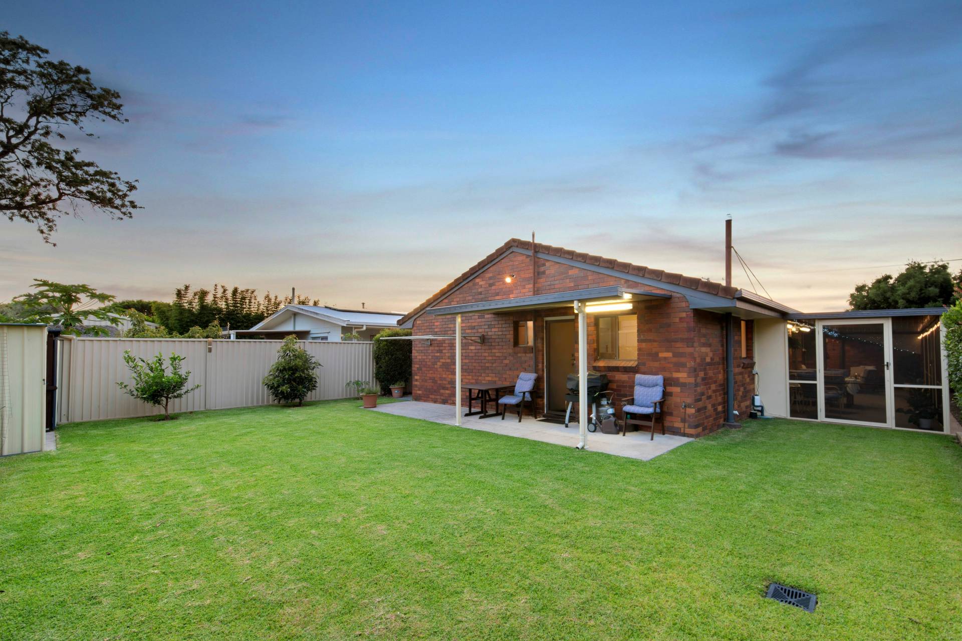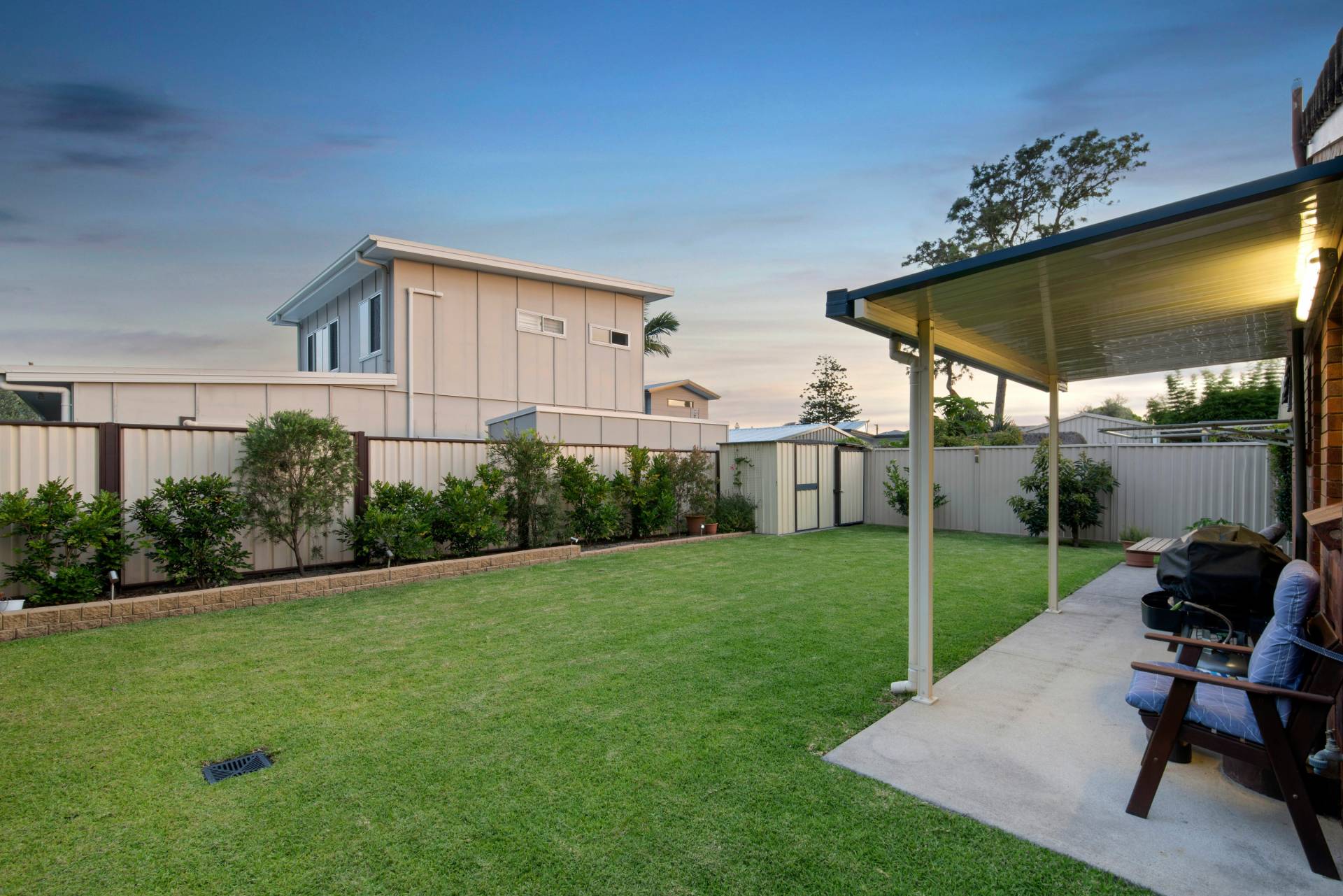 Rear undercover patio provides shelter and protection when raining with low maintenance concrete pad