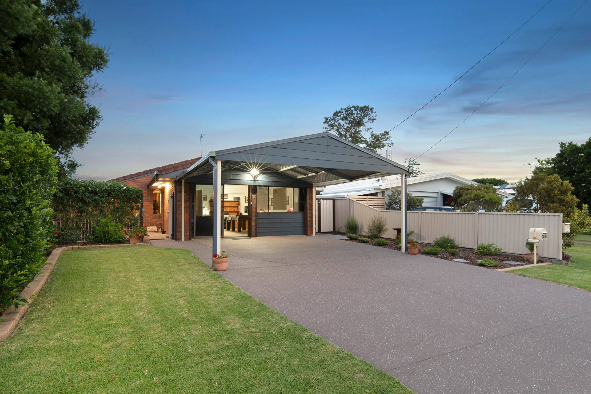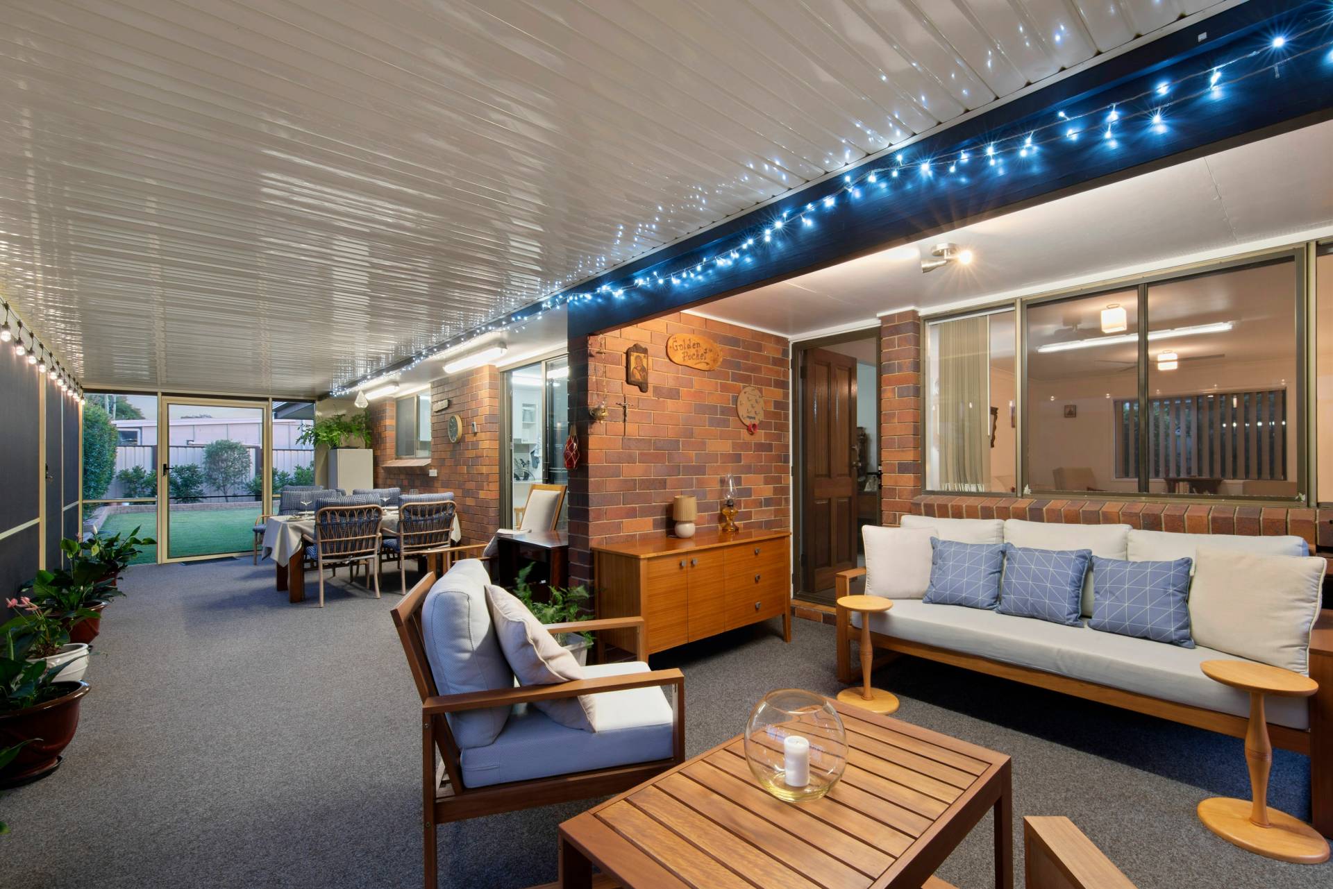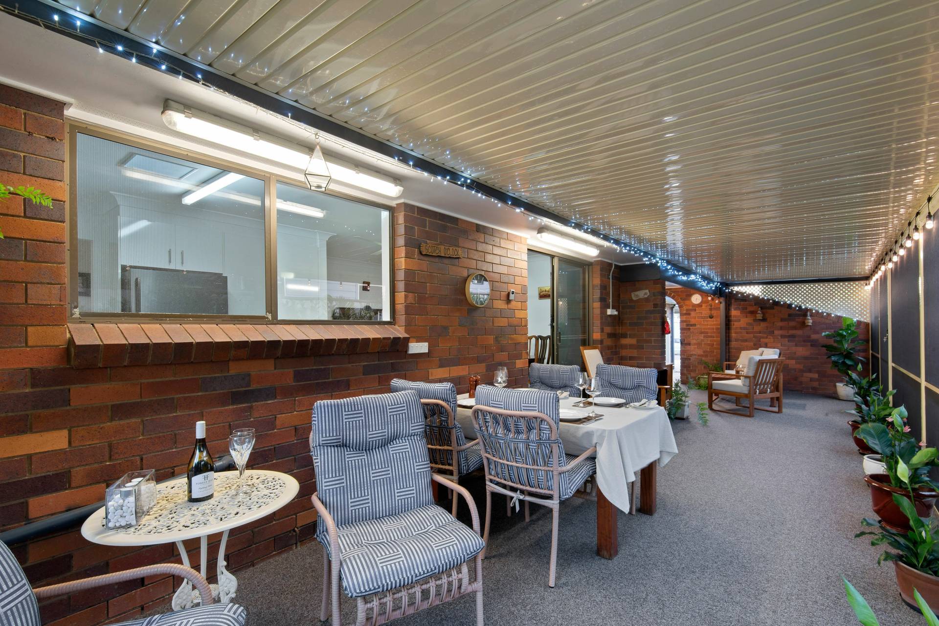 Rear undercover patio provides shelter and protection when raining with low maintenance concrete pad