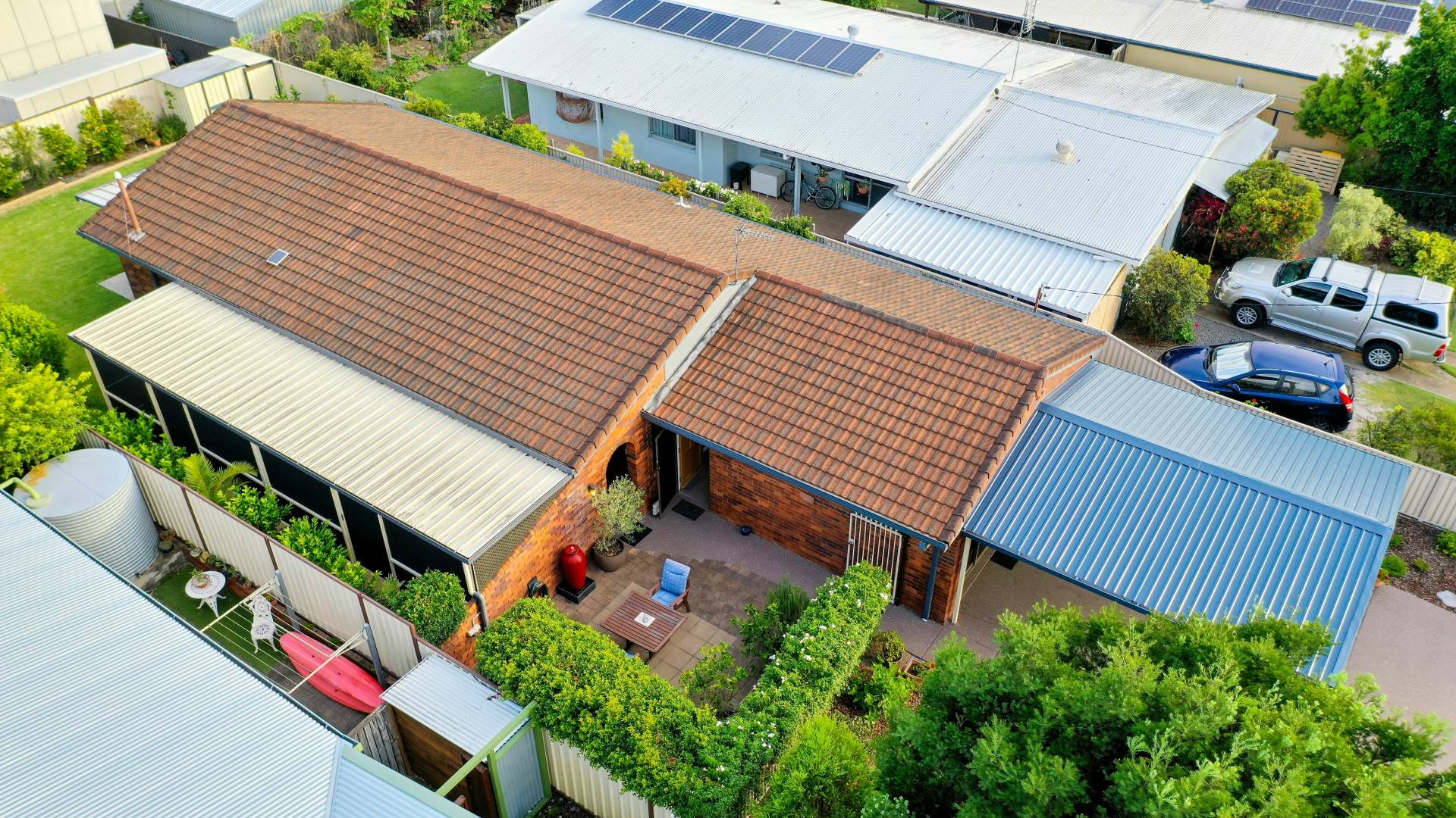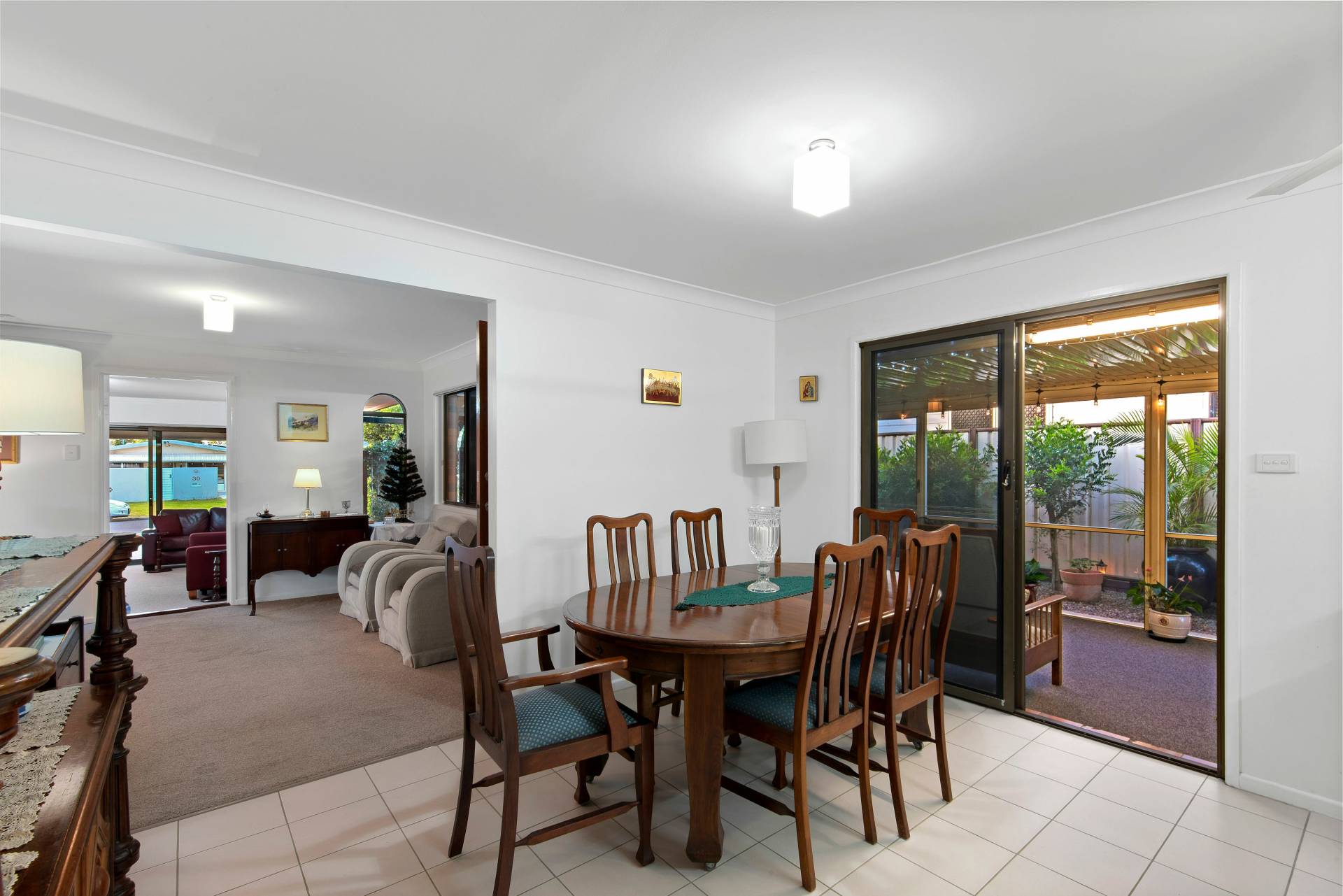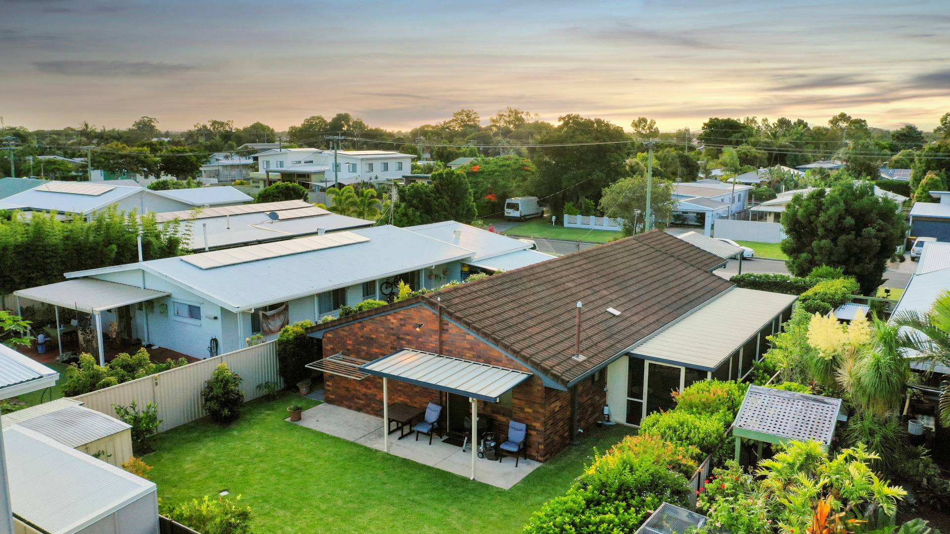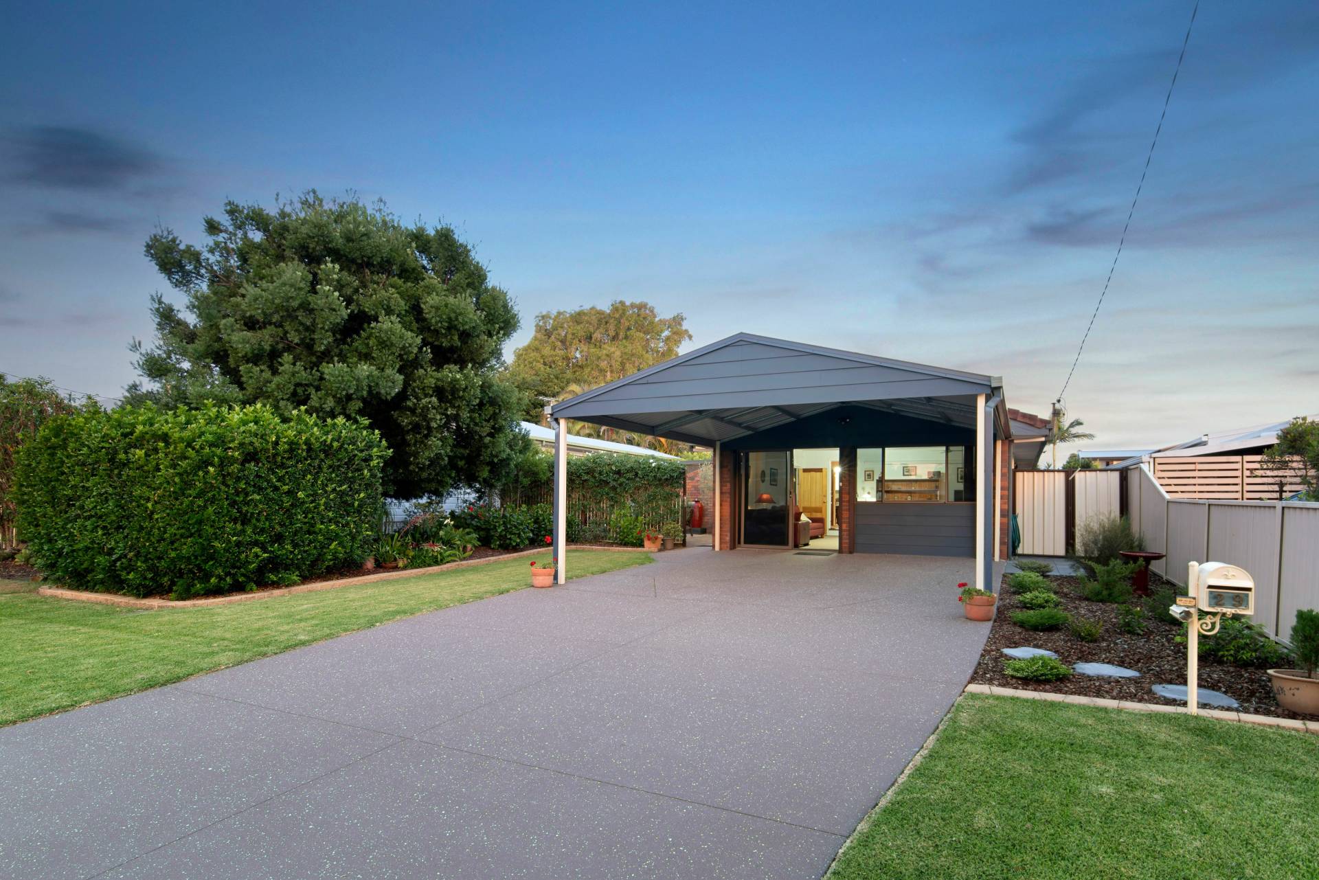 Rear undercover patio provides shelter and protection when raining with low maintenance concrete pad