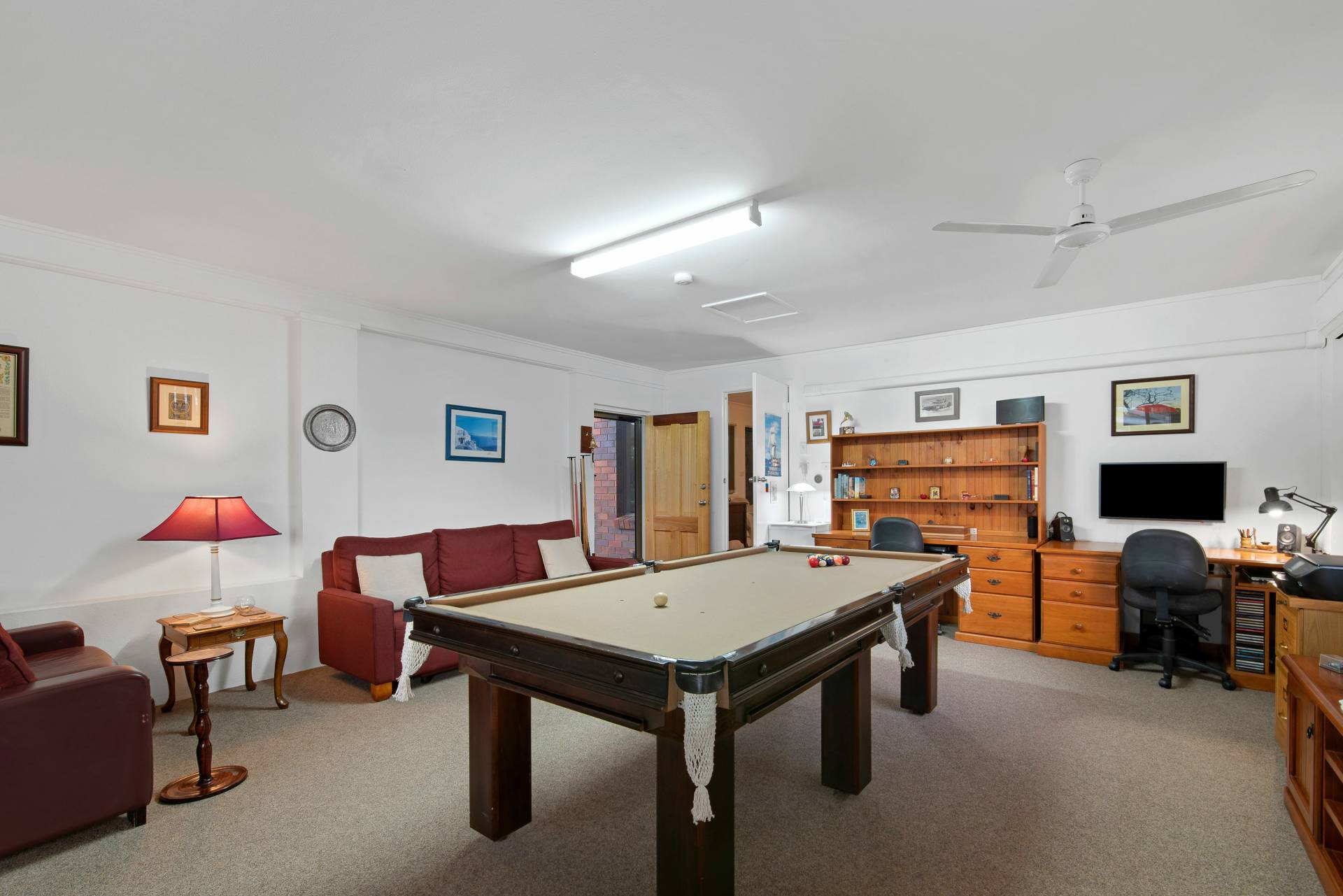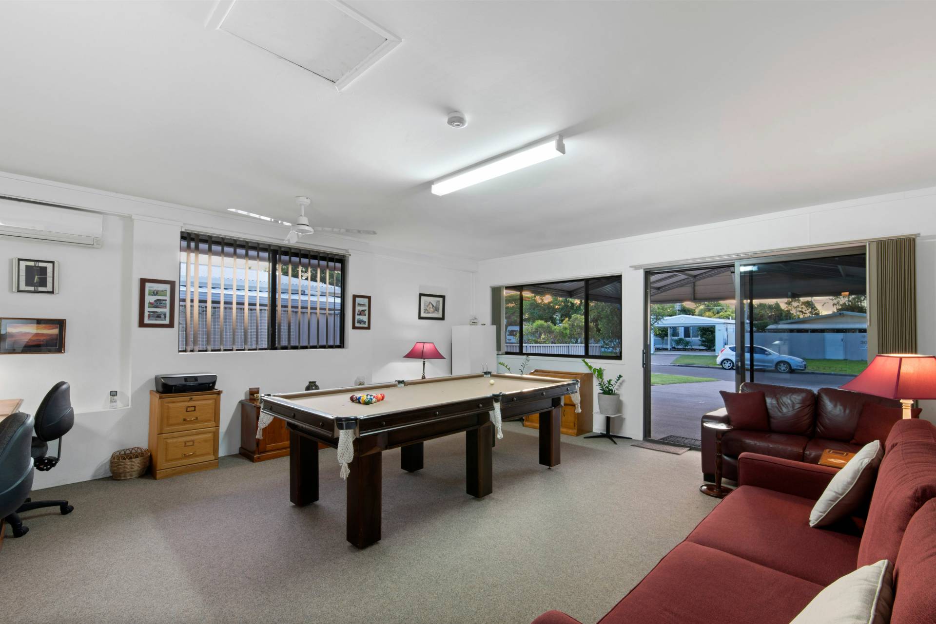 Pool room has Fujitsu air-conditioning  and ceiling fan
