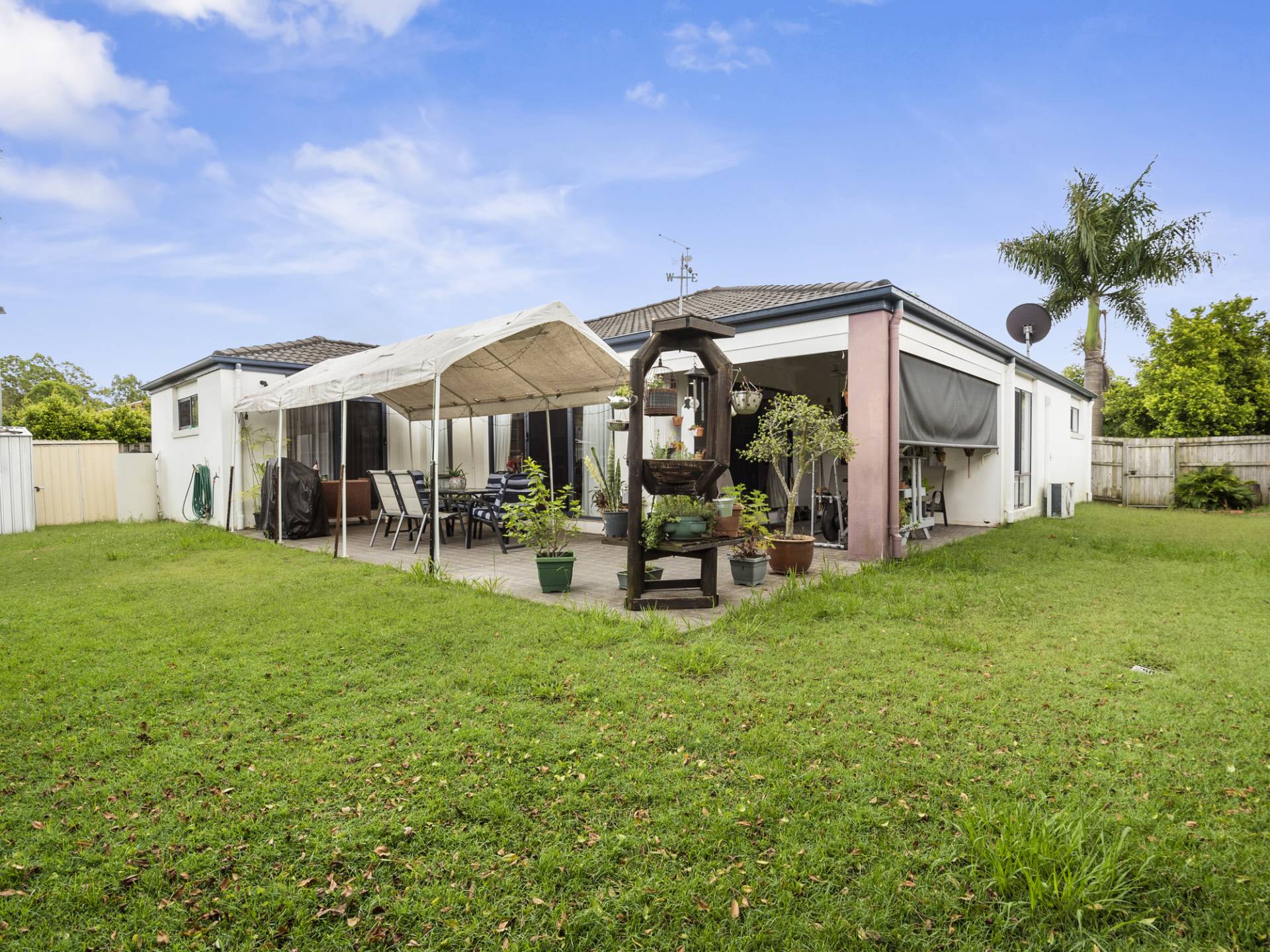 Plenty of back yard and a small garden shed on the 600m2 block with room for a pool