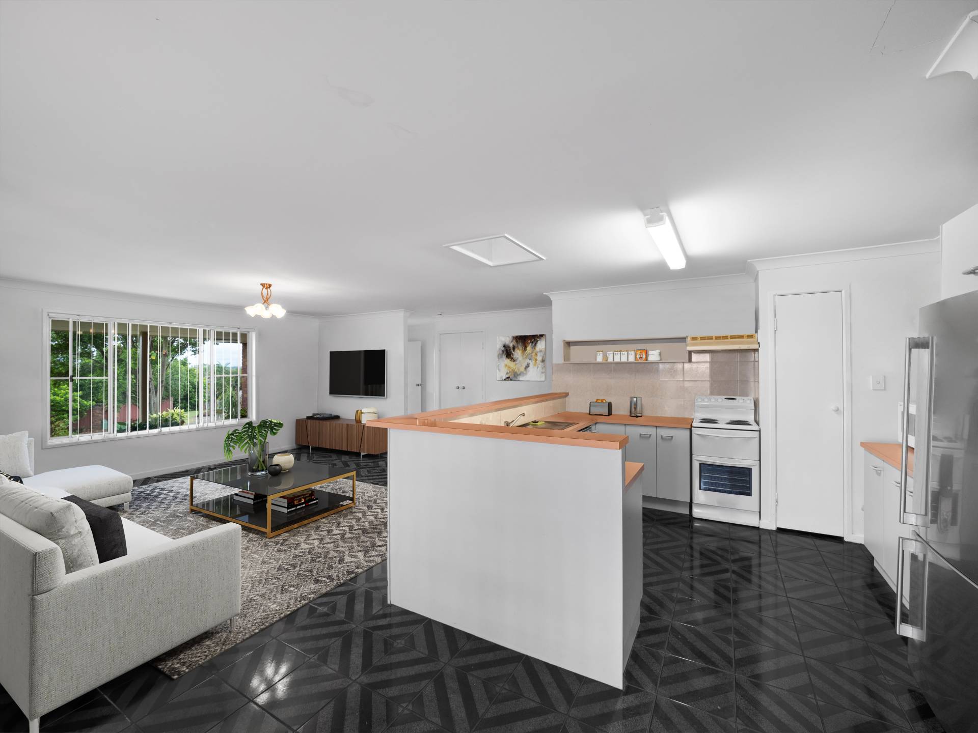 The versatile floorplan offers a spacious open plan living/dining area and a very serviceable kitchen, with a second living area that could be used as a media room or a large home office.