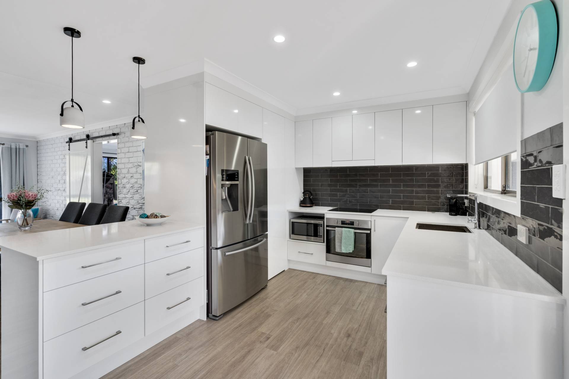 The kitchen is well placed adjacent to your outdoor area – great when entertaining! Ultra-modern fittings and fixtures with Caesarstone bench tops, plenty of storage and a breakfast bar.
