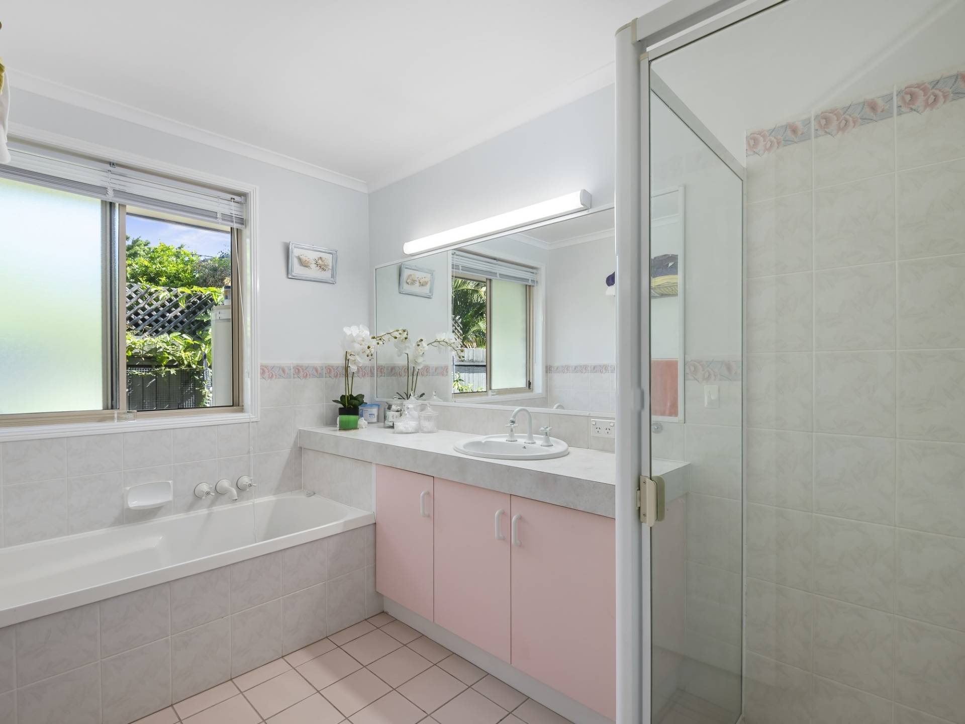 The large family bathroom has a tub and separate shower and the second toilet and large laundry is adjacent.