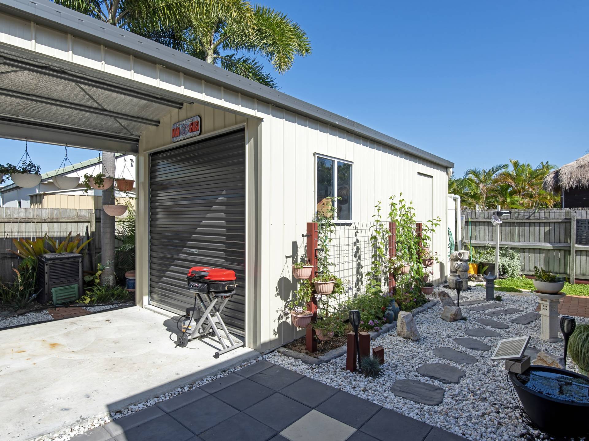 A separate shed with power is tucked away in the back corner of the block and would make an ideal workshop or perhaps a pool house, games room or the ultimate man cave with some minor adjustments.