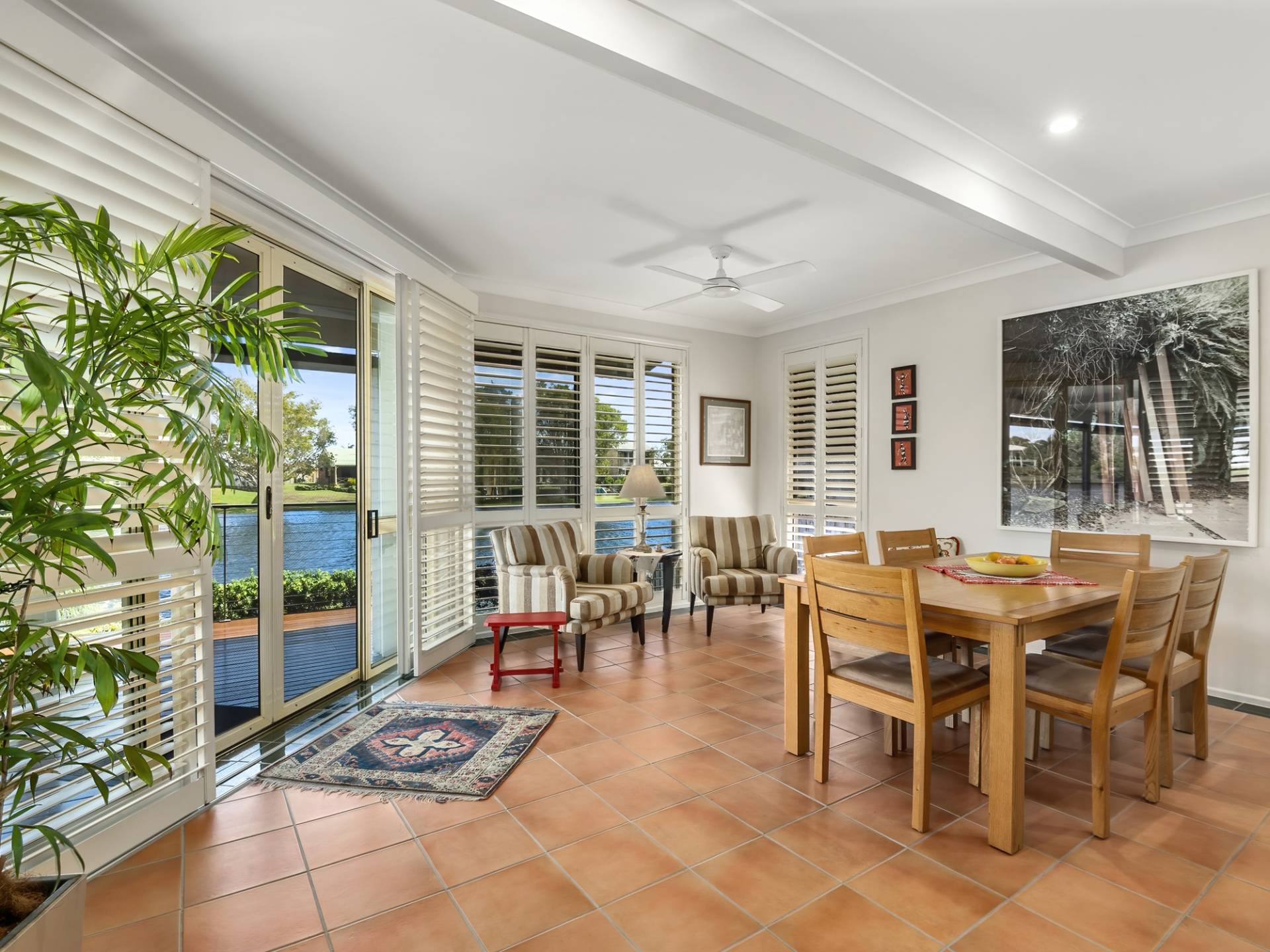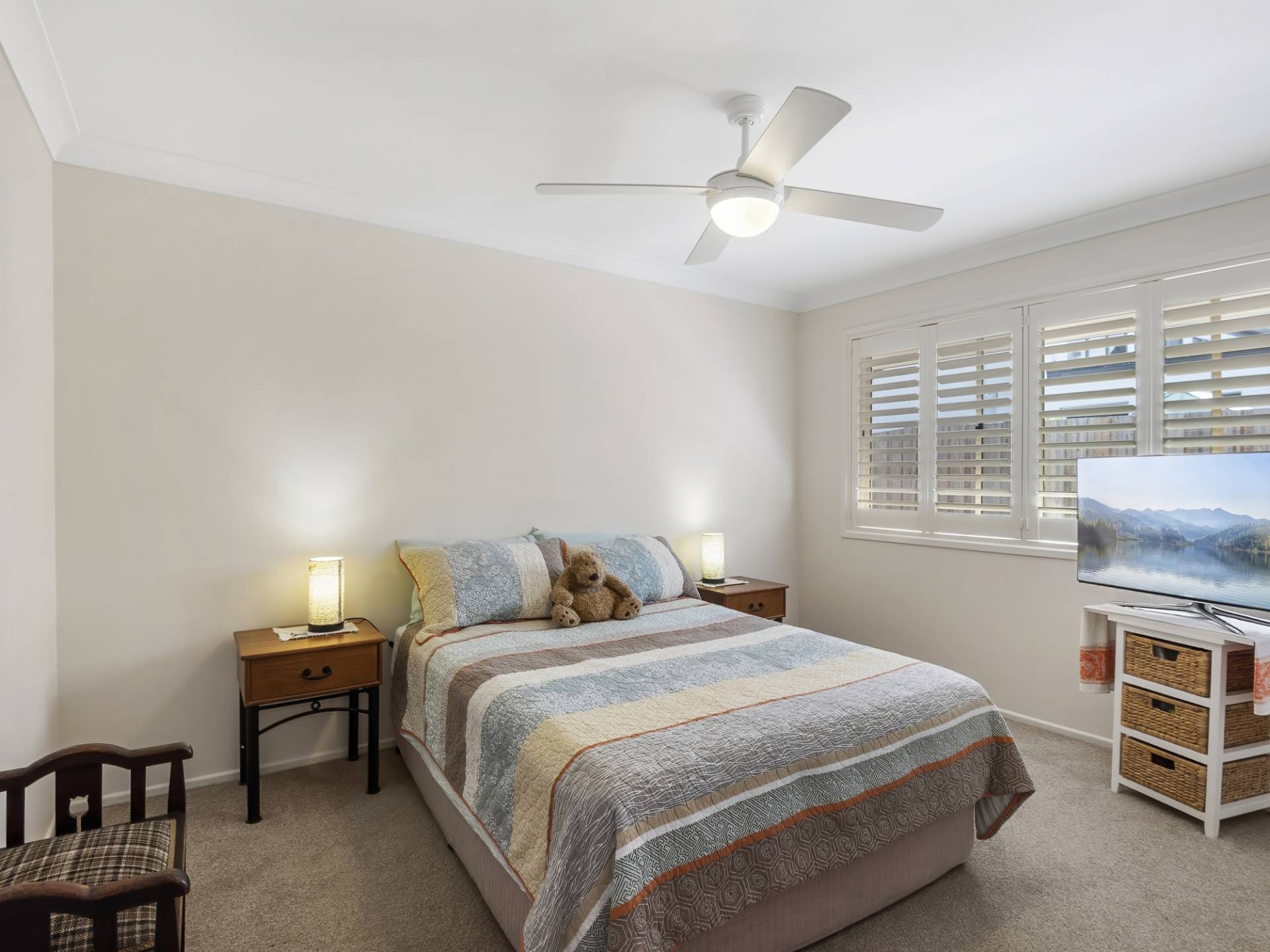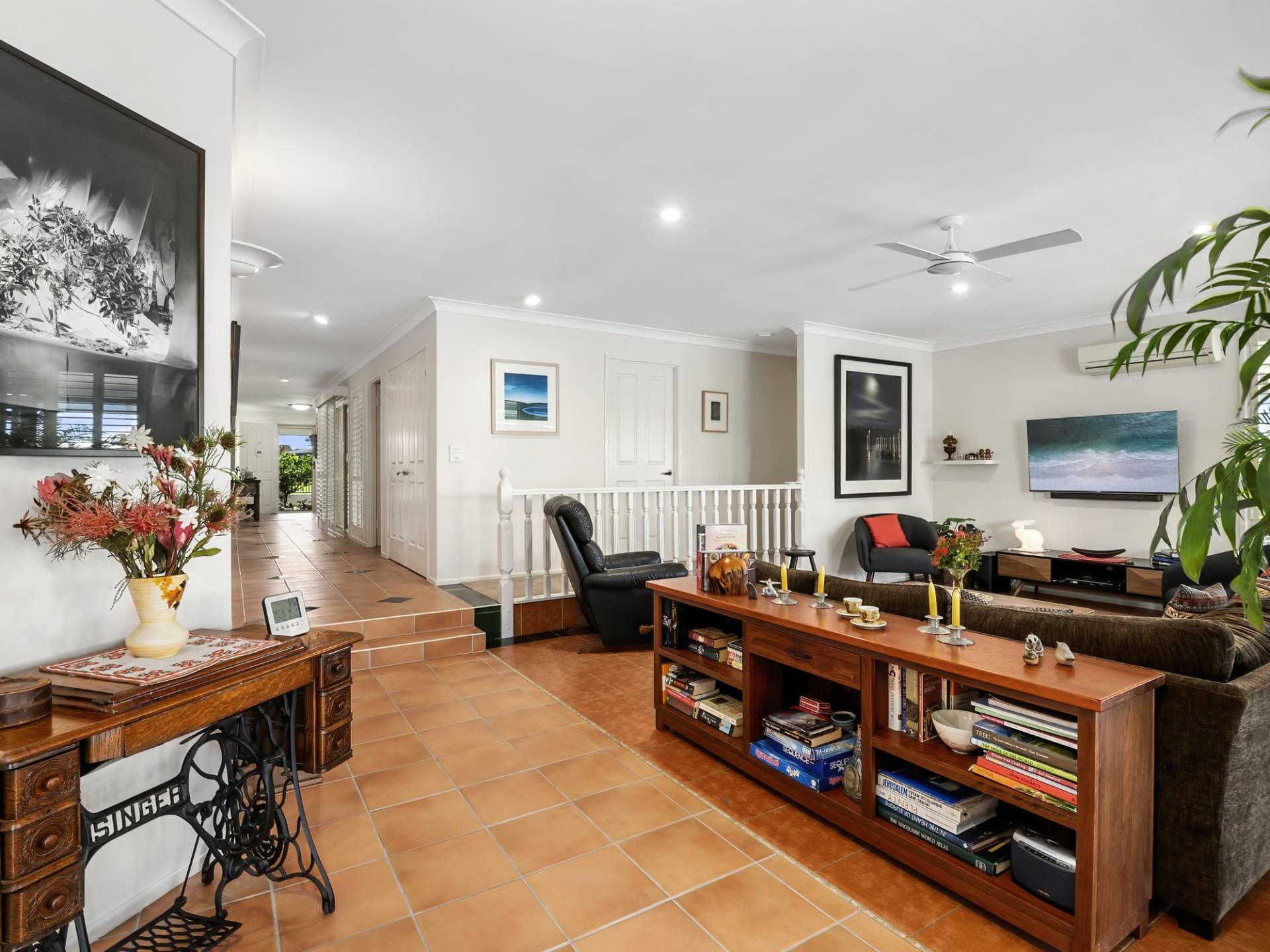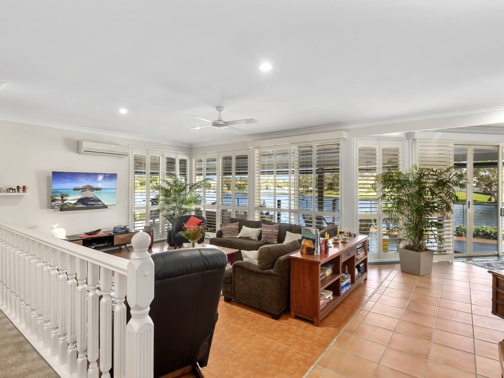 The home is set over a split level and has been cleverly designed to take full advantage of the Lake views from the main living areas. The home is light and bright, has ceiling fans, some air-conditioning and plantation shutters throughout.