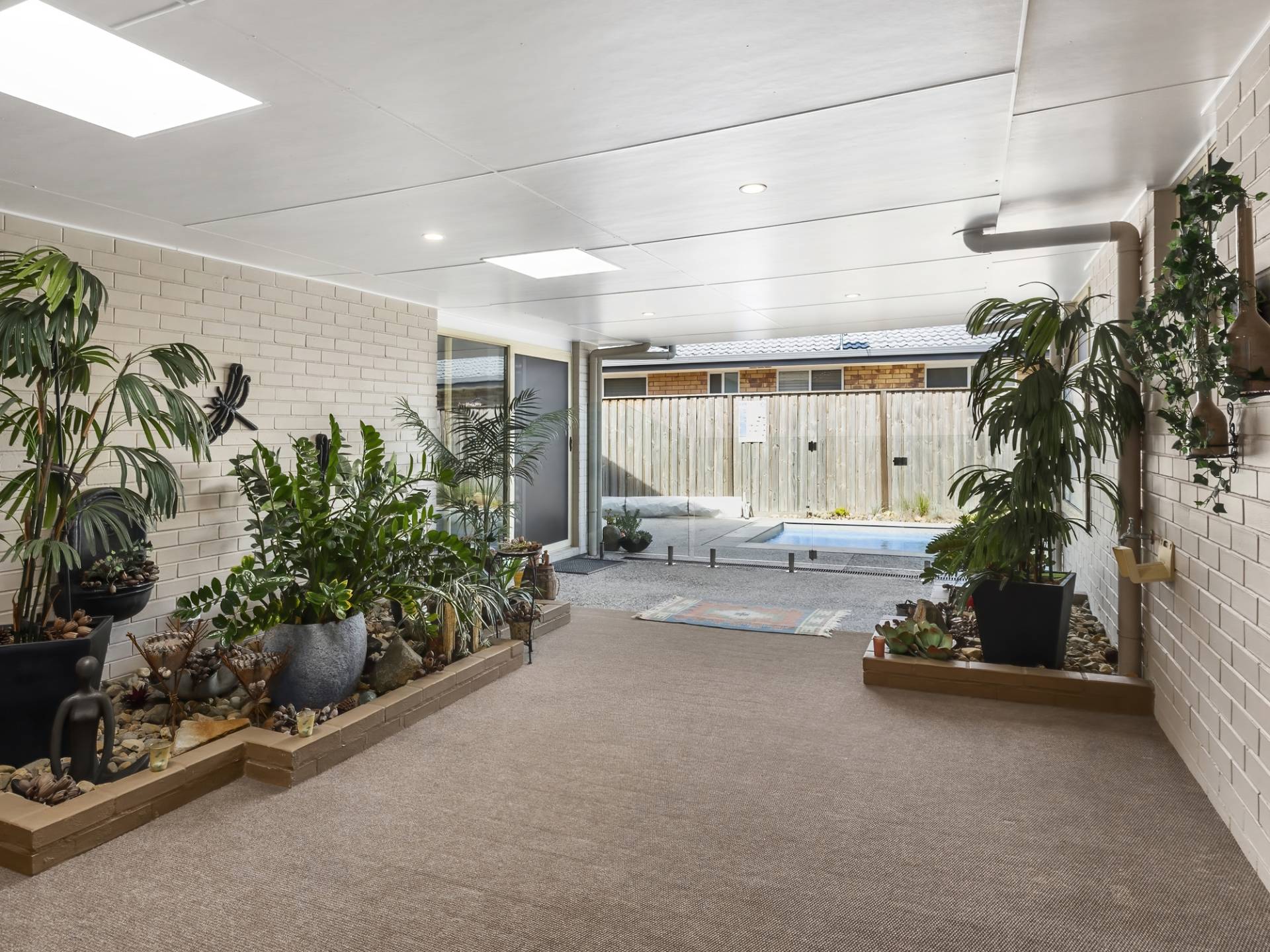 The cars will be well accommodated with a double lock up garage plus there is a large workshop area in this space that would easily fit a trailer or ample room for the tradie’s tools.
