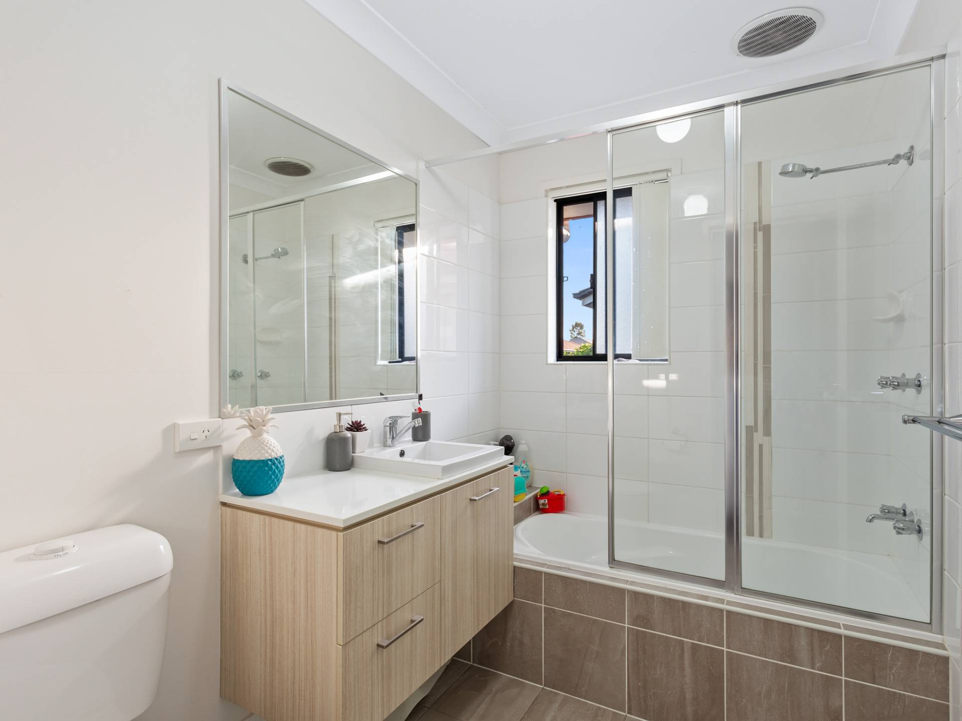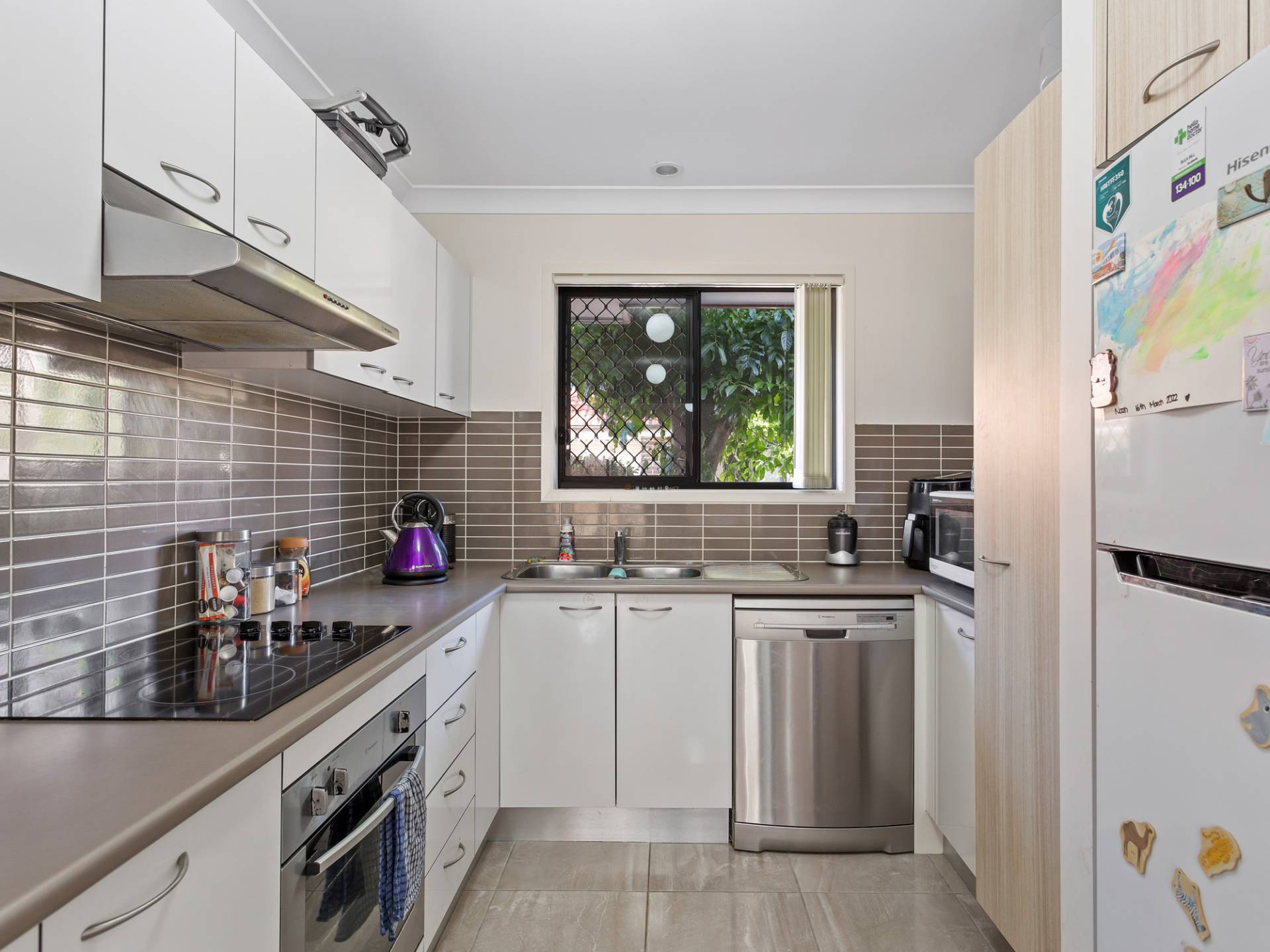A large modern kitchen with a breakfast bar, electric wall oven, stainless steel range hood, dishwasher and lots of practical bench space. A spacious court yard has plenty of room for the kids to play and there is a generous family and dining area. Airconditioning in the downstairs living area and the Master bedroom.