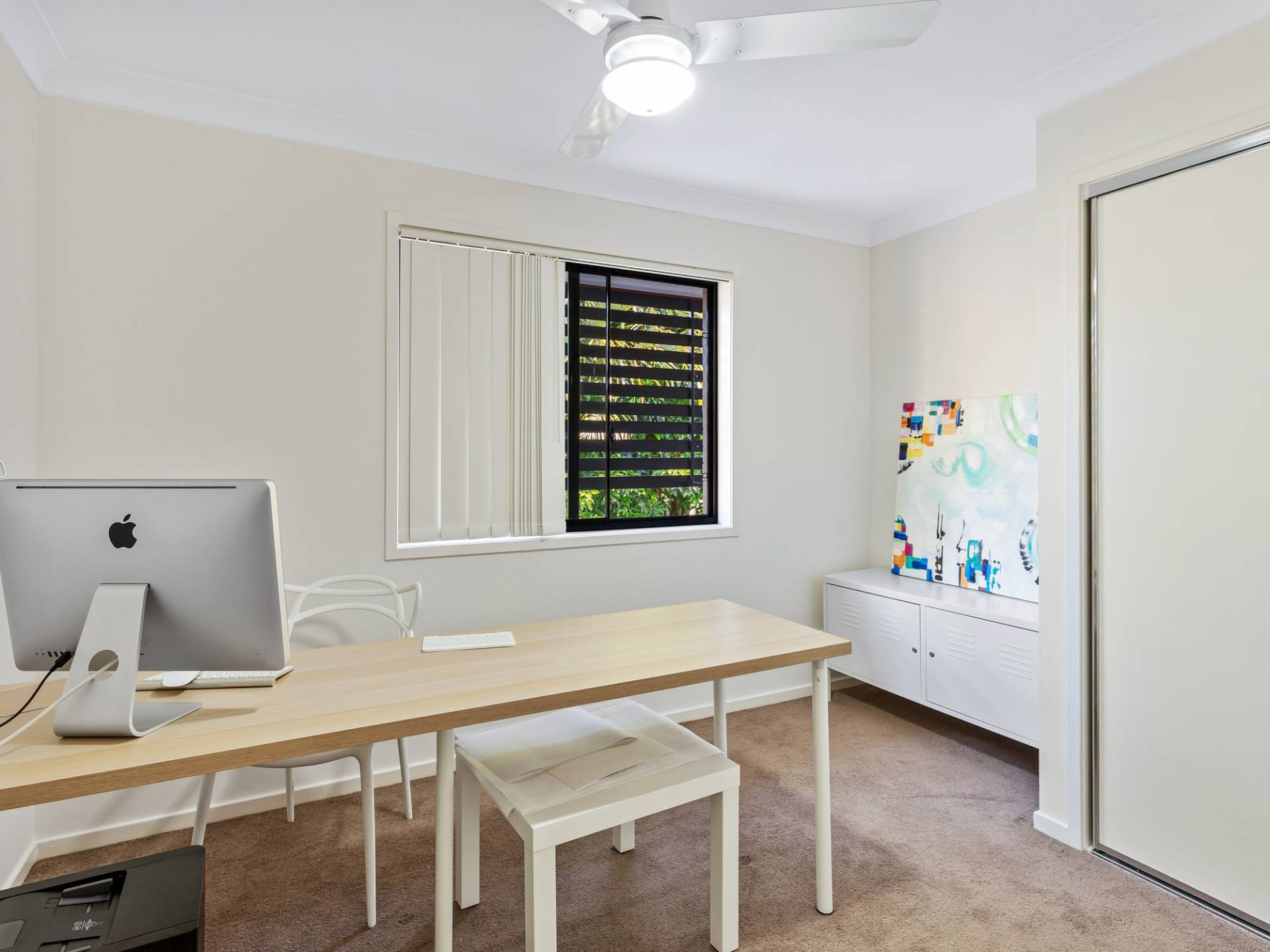 A large modern kitchen with a breakfast bar, electric wall oven, stainless steel range hood, dishwasher, stone bench tops and lots of practical bench space. A spacious court yard has plenty of room for the kids to play and there is a generous family and dining area.