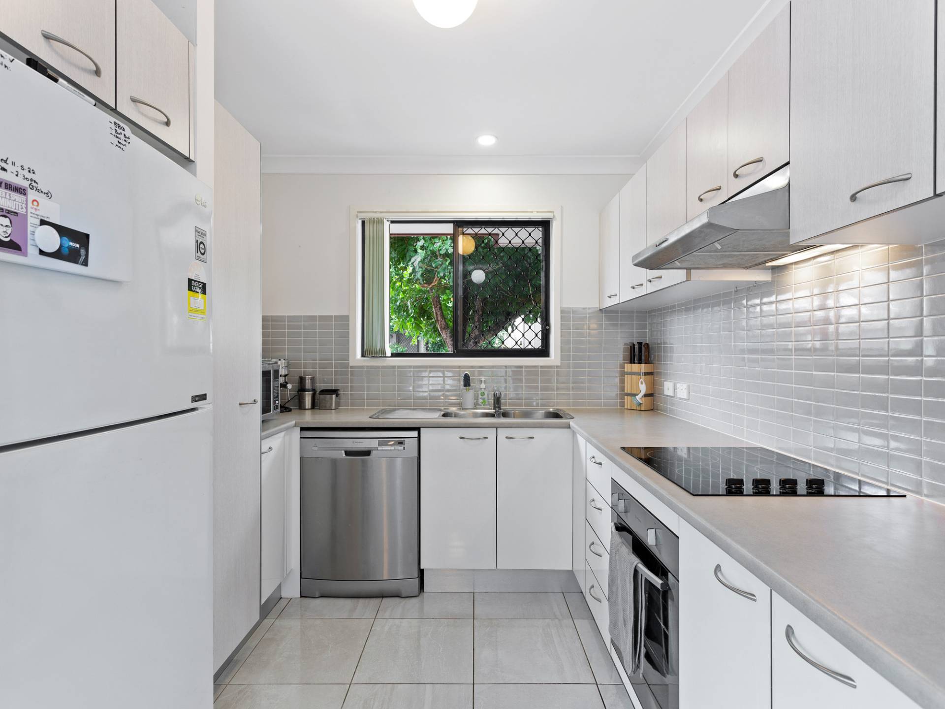 A large modern kitchen with a breakfast bar, electric wall oven, stainless steel range hood, dishwasher, stone bench tops and lots of practical bench space. A spacious court yard has plenty of room for the kids to play and there is a generous family and dining area. Airconditioning in the downstairs living area.