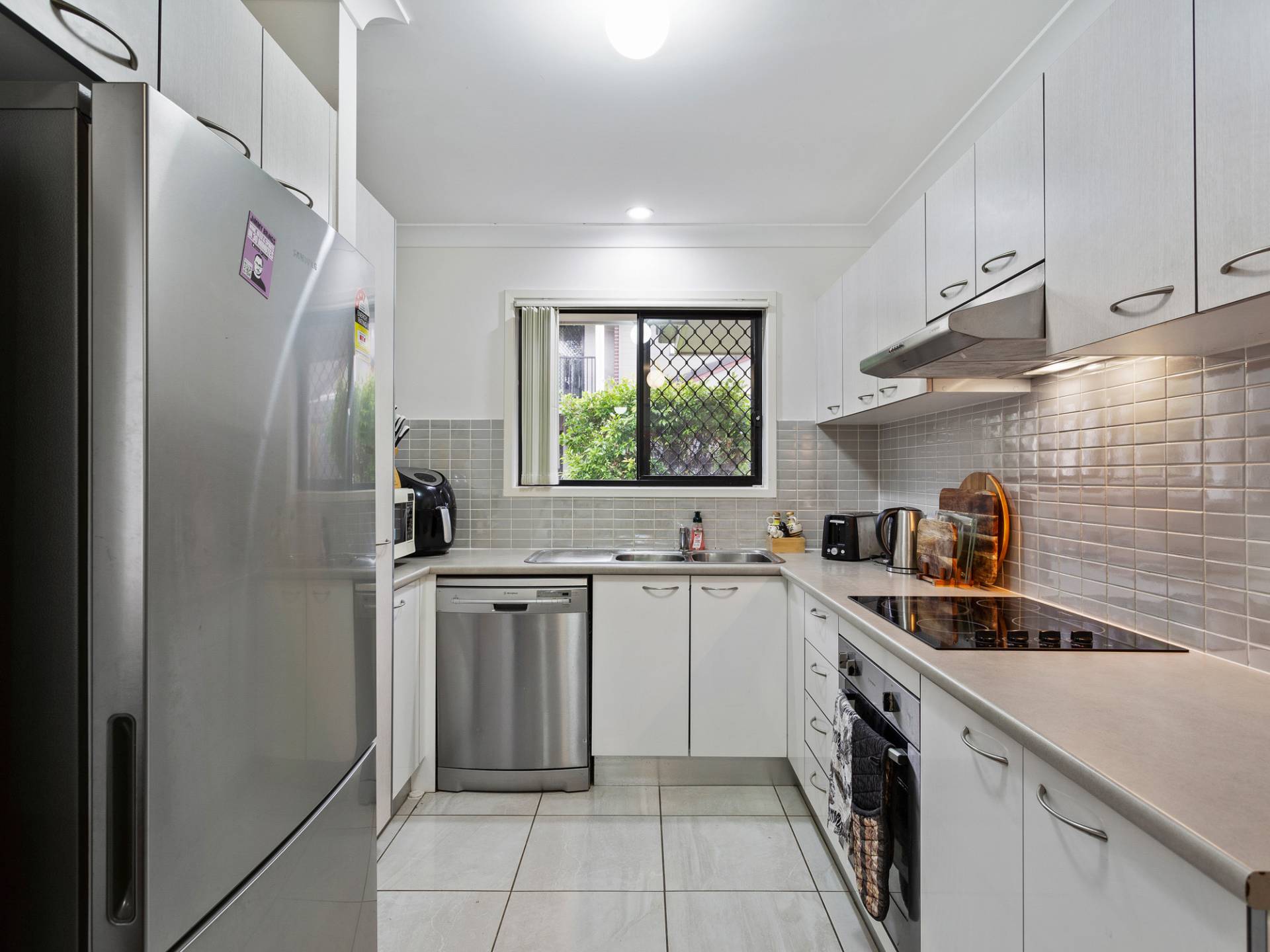 A large modern kitchen with a breakfast bar, electric wall oven, stainless steel range hood, dishwasher, stone bench tops and lots of practical bench space. A spacious court yard has plenty of room for the kids to play and there is a generous family and dining area. Airconditioning in the downstairs living area.