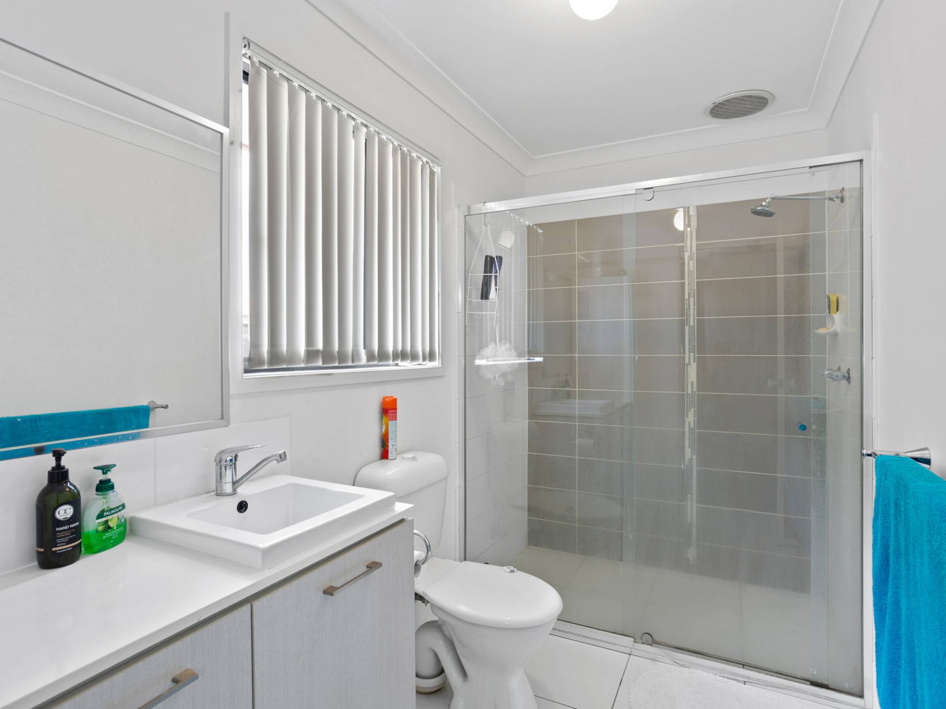 A large modern kitchen with a breakfast bar, electric wall oven, stainless steel range hood, dishwasher and lots of practical bench space. A spacious court yard has plenty of room for the kids to play and there is a generous family and dining area. Airconditioning in the downstairs living area and the Master bedroom.